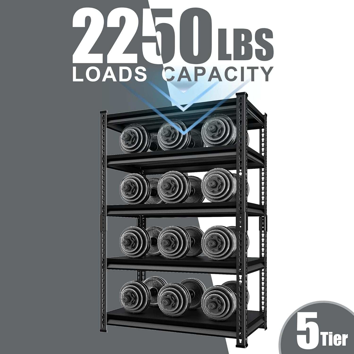 5-Tier Garage Shelving Heavy Duty, 72" Metal Shelving Unit - 2250 lbs Load Capacity, 40"W x 18"D x 72"H (Black)