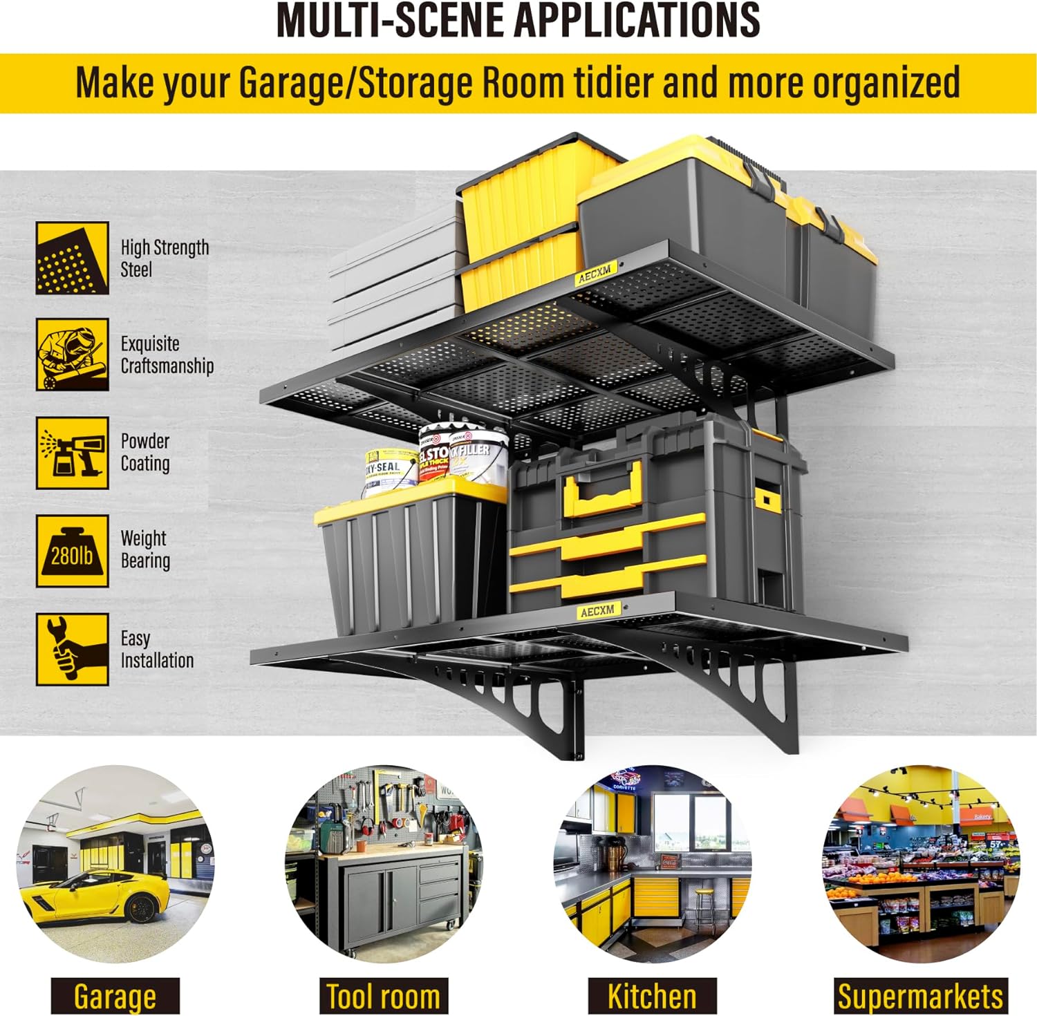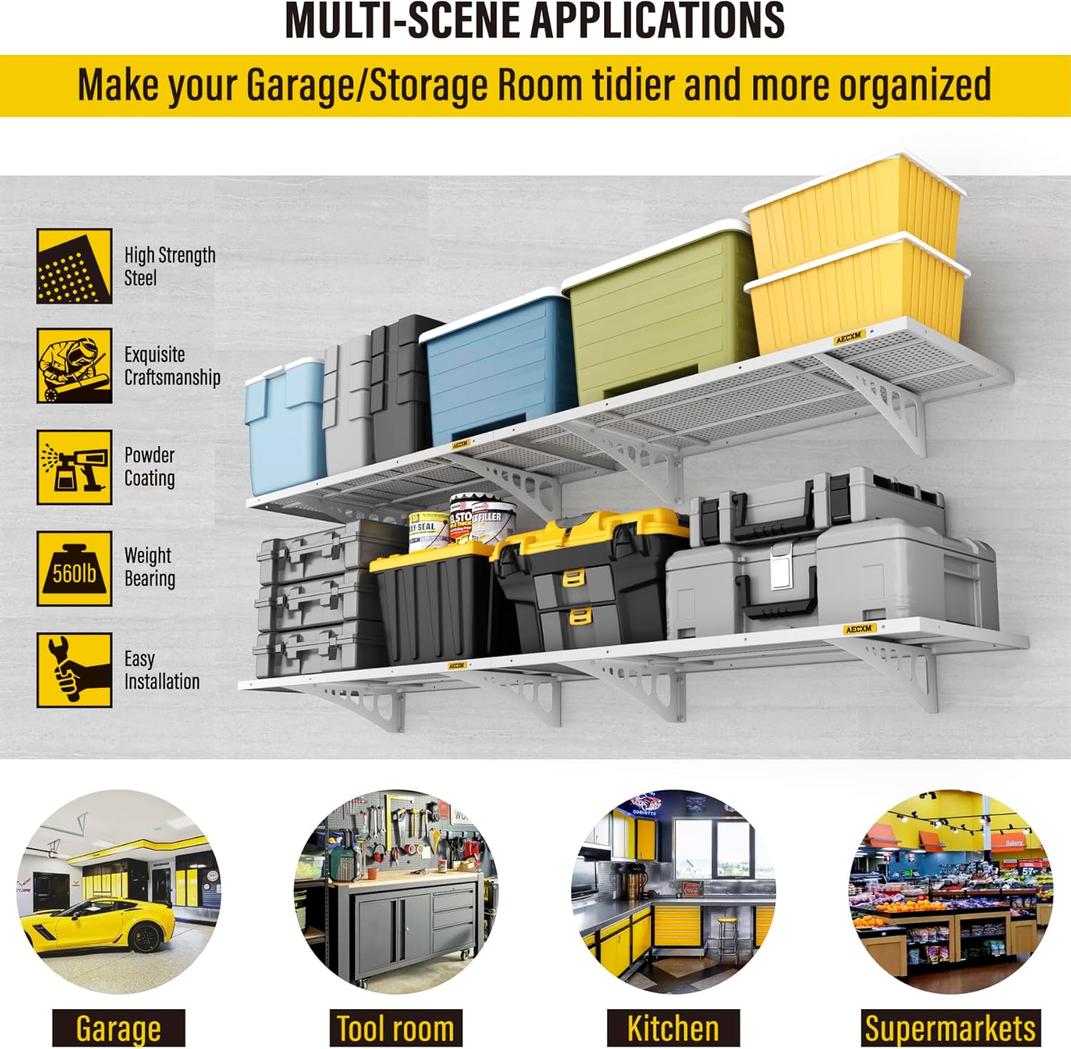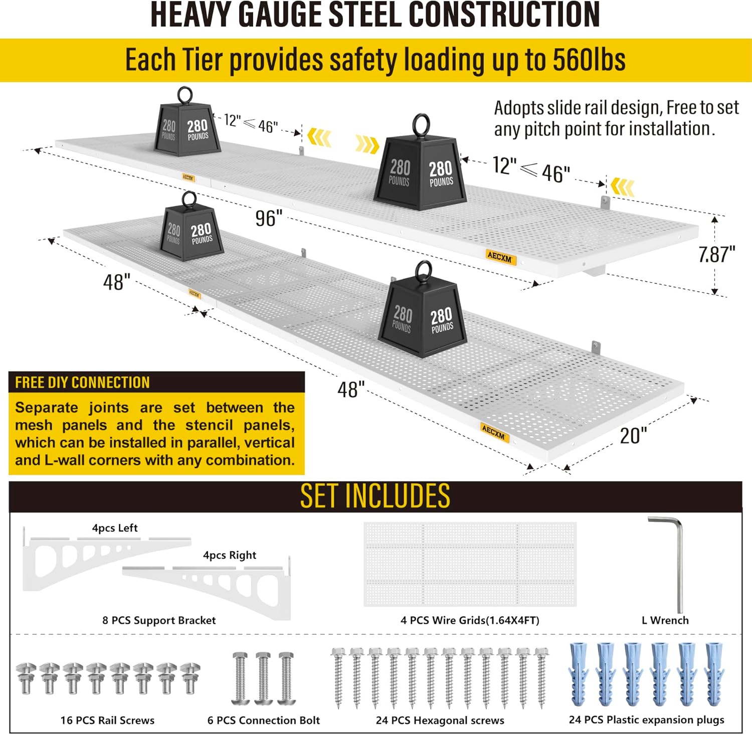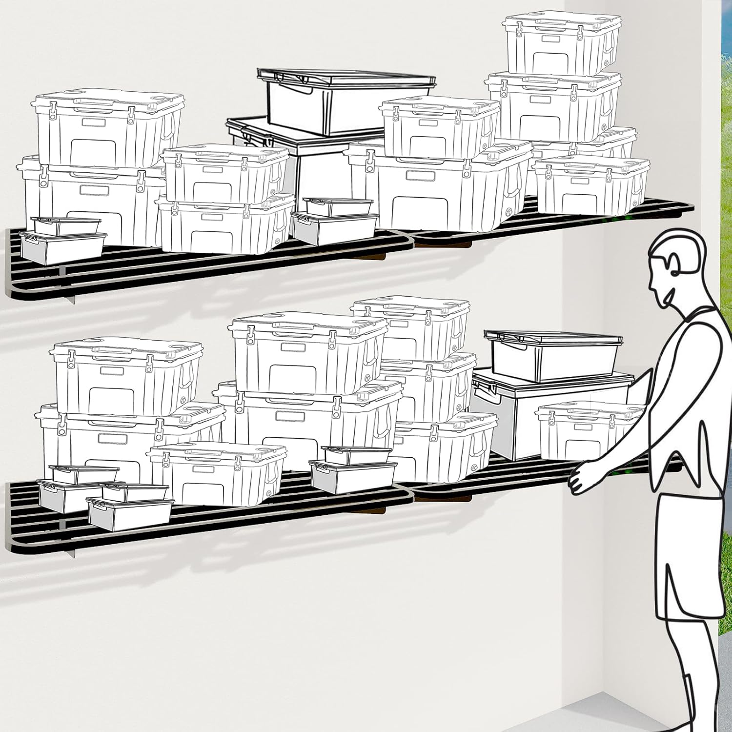4-Pack 2x4ft Garage Wall Shelving, 4 Shelf Total 16 ft(L) Garage Shelving Wall Mounted, Heavy-Duty Storage Shelves, Perfect for Holding Storage Bins, Sporting Goods, Tools, and More Space-Saving