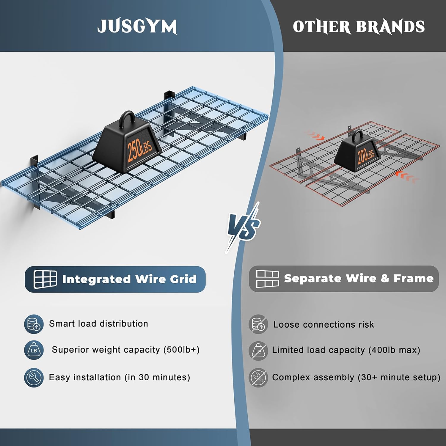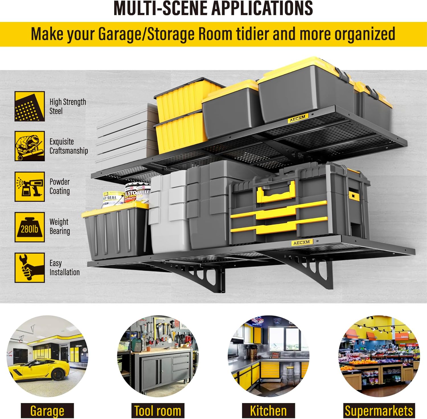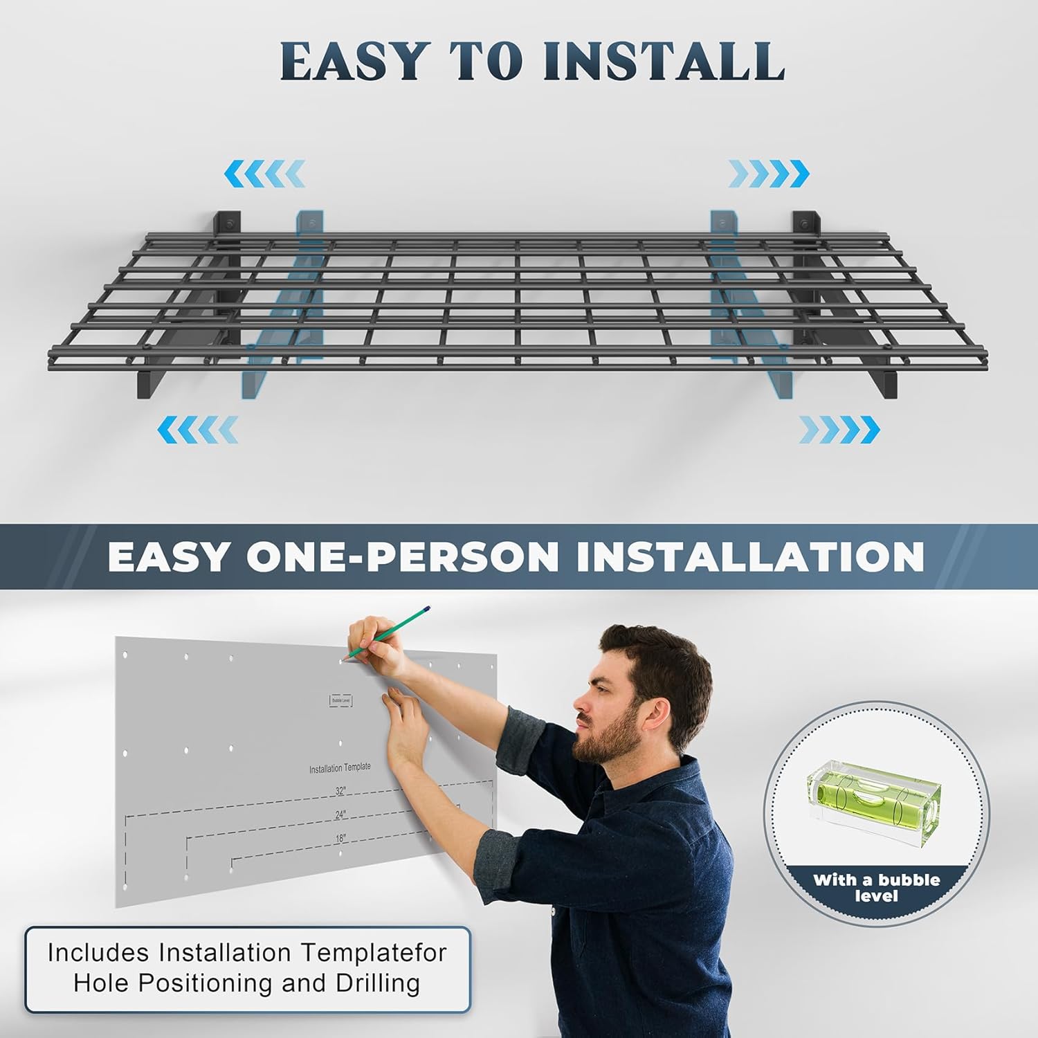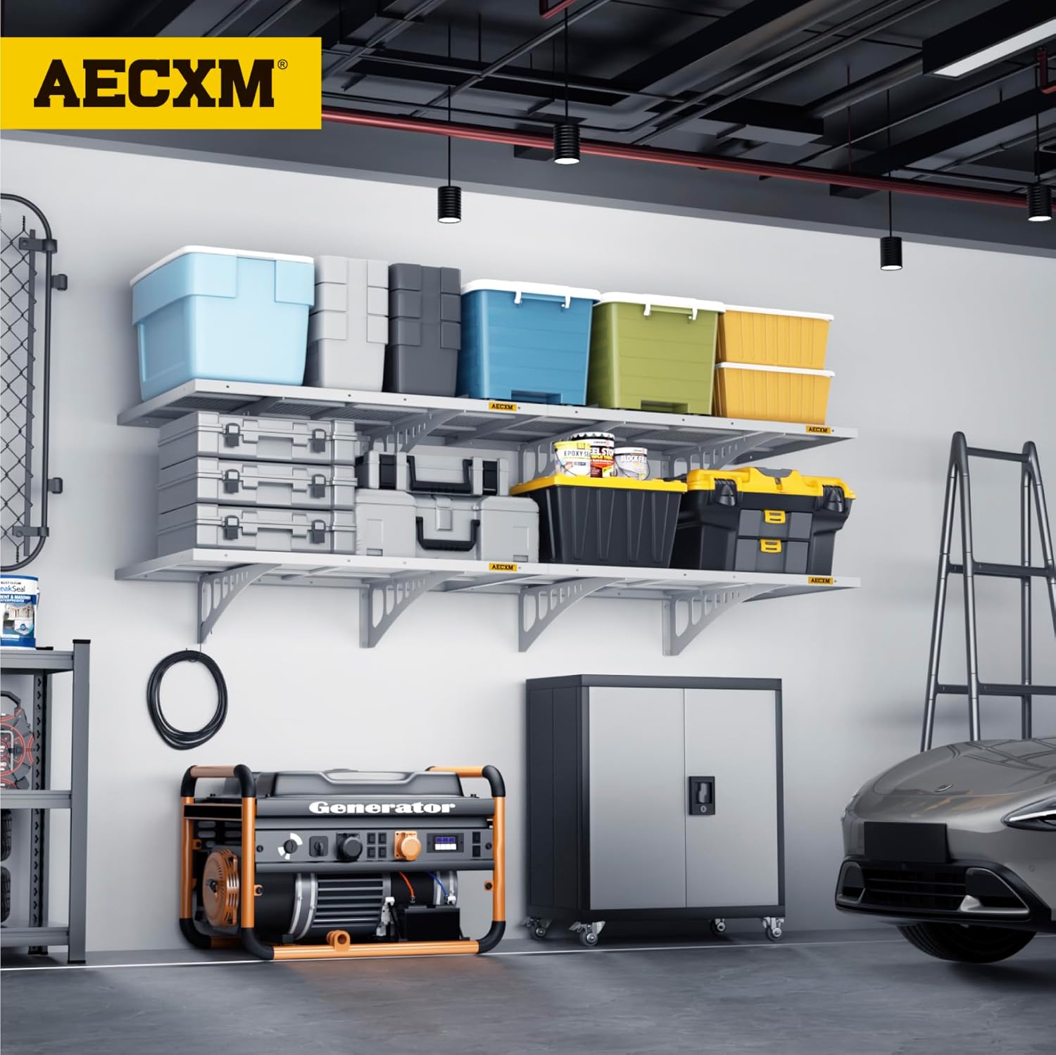 4-Pack 2x4ft Garage Wall Shelving, 4 Shelf Total 16 ft(L) Garage Shelving Wall Mounted, Heavy-Duty Storage Shelves, Perfect for Holding Storage Bins, Sporting Goods, Tools, and More Space-Saving