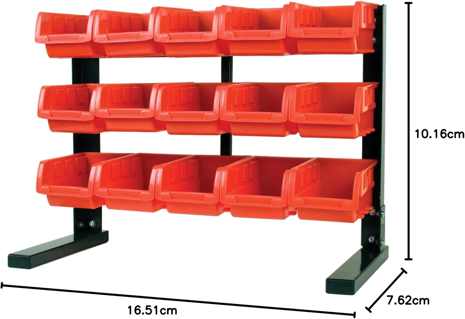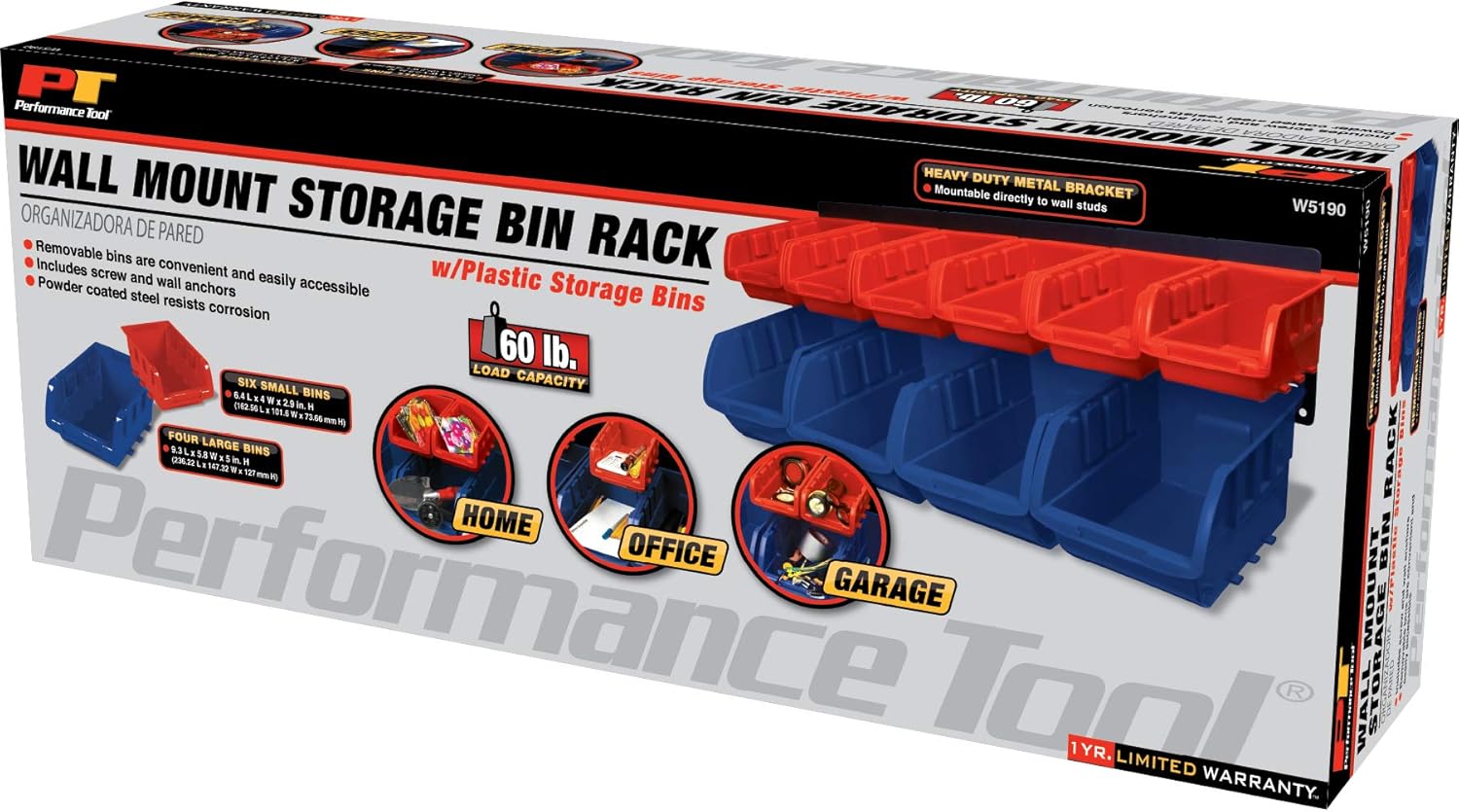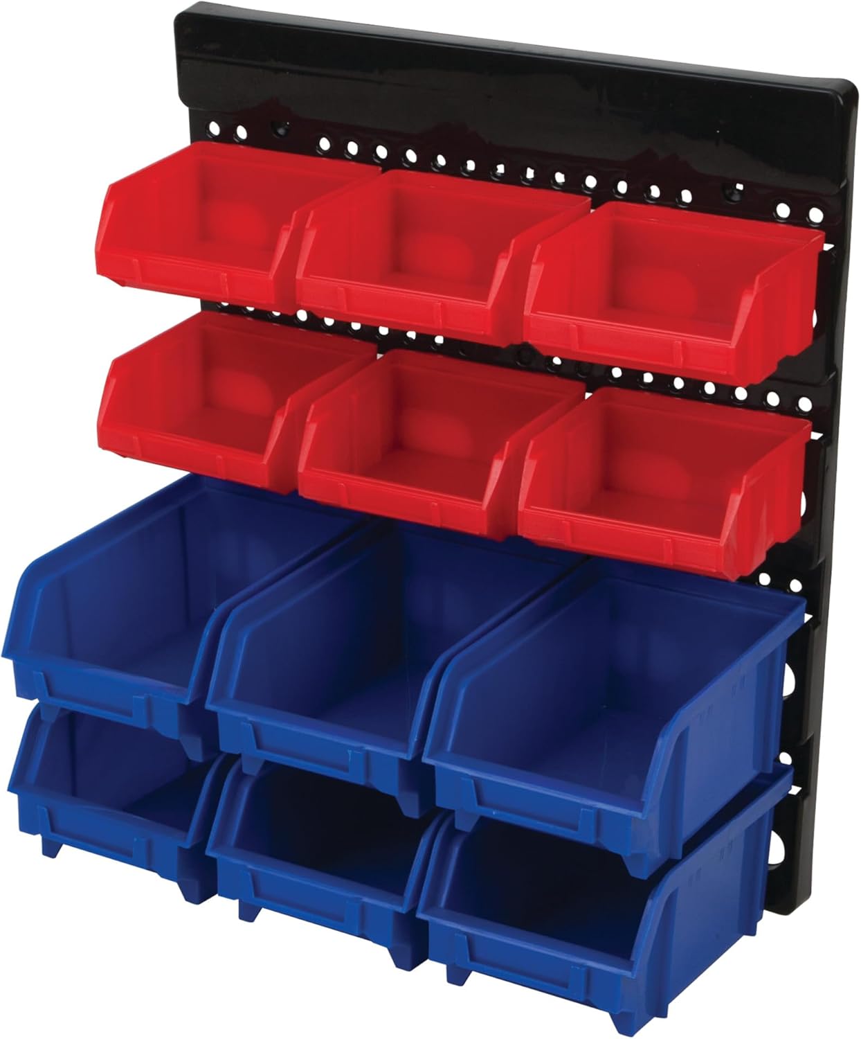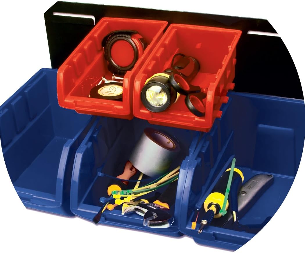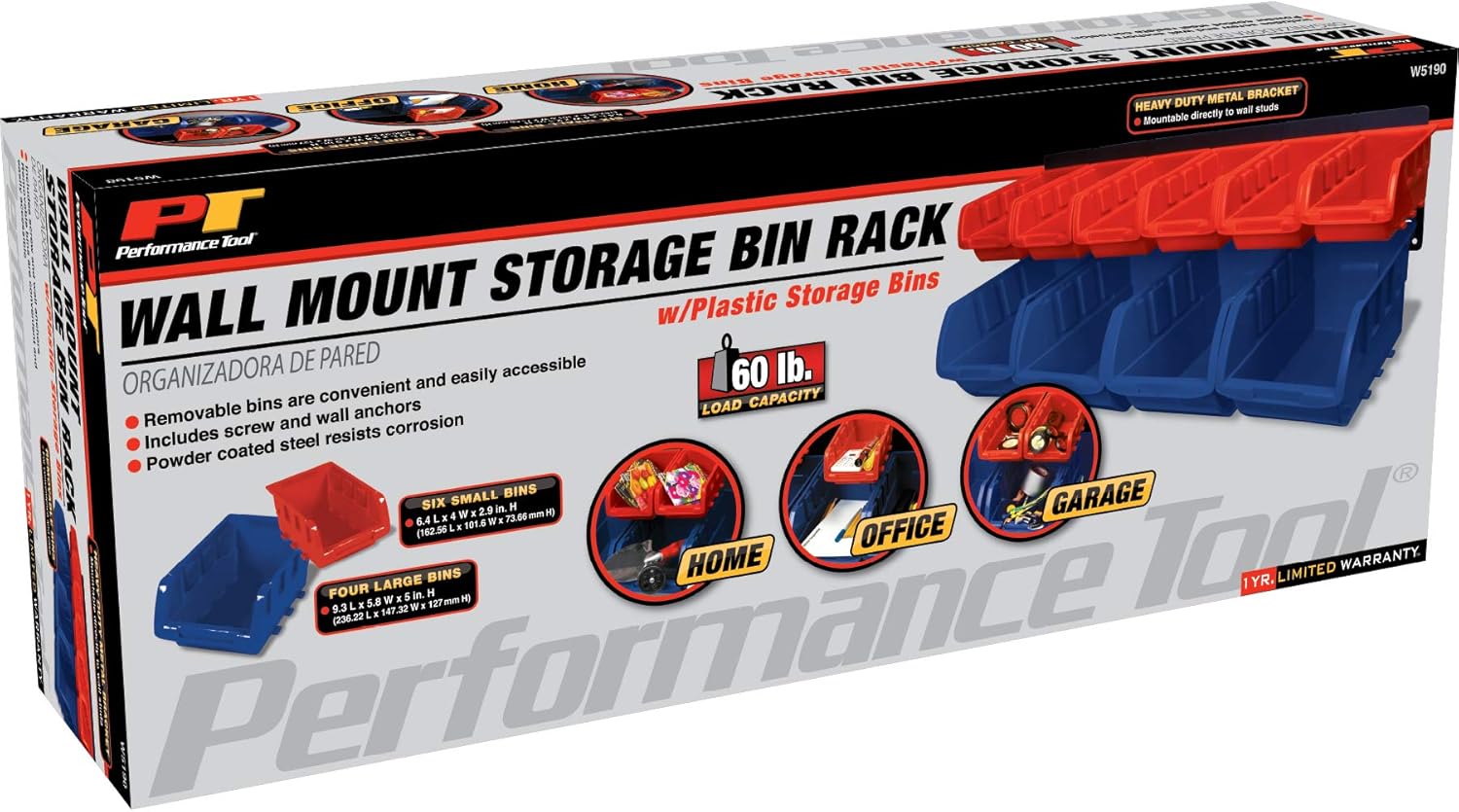 Performance Tool W5193 Half Bulk Bin Storage Rack with 32 Large and Small Bins for Easy Garage Organization of Tools, Parts, Hardware, and More, Red and Blue