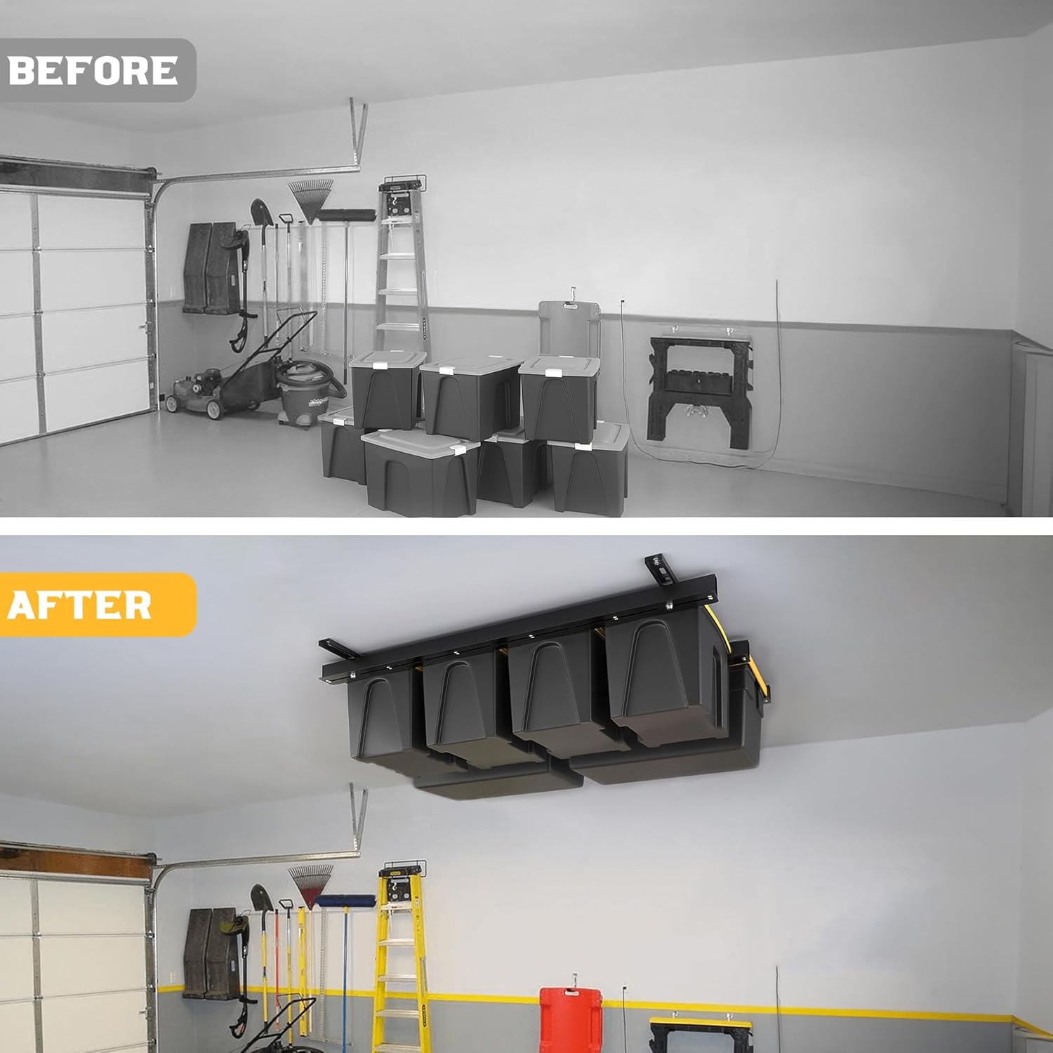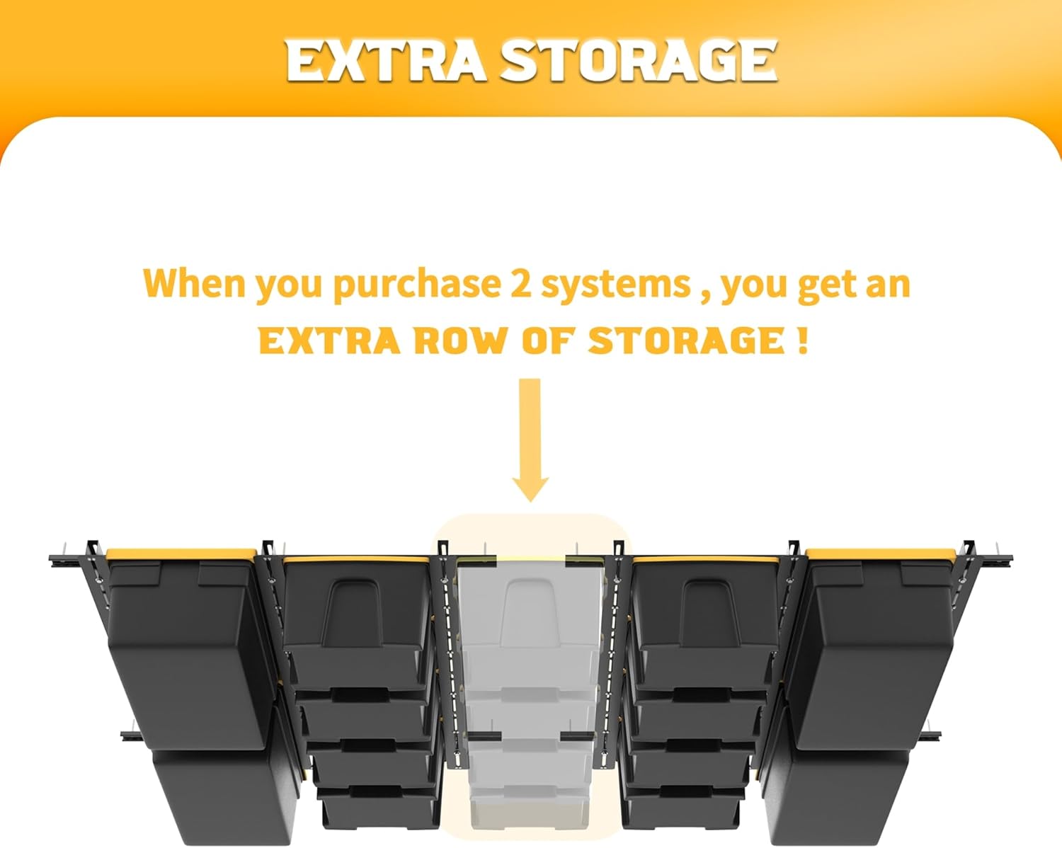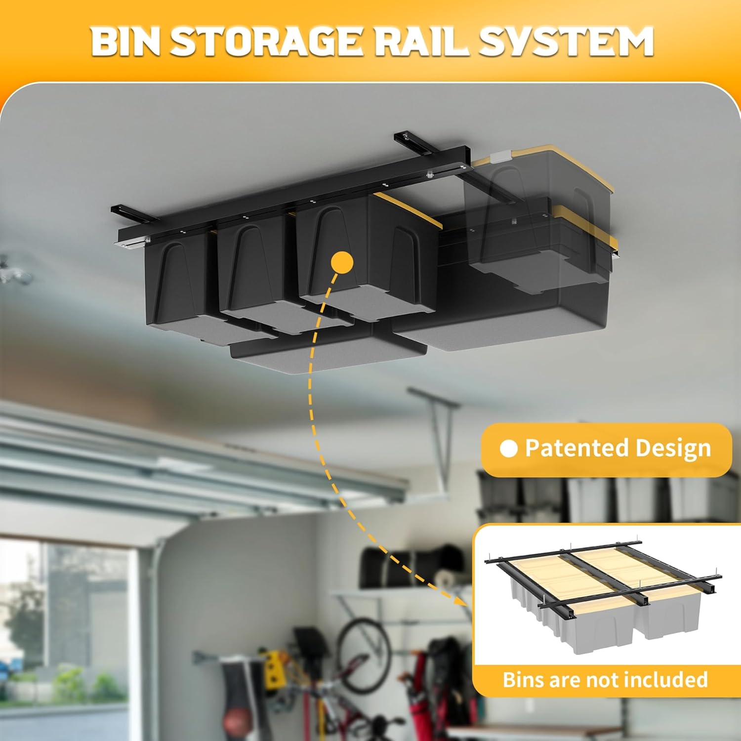 WALMANN Overhead Tote Storage Rail System, Garage Ceiling Bin Storage Rack Heavy Duty Adjustable Tote Slide Rails(Black, Bins not Included)