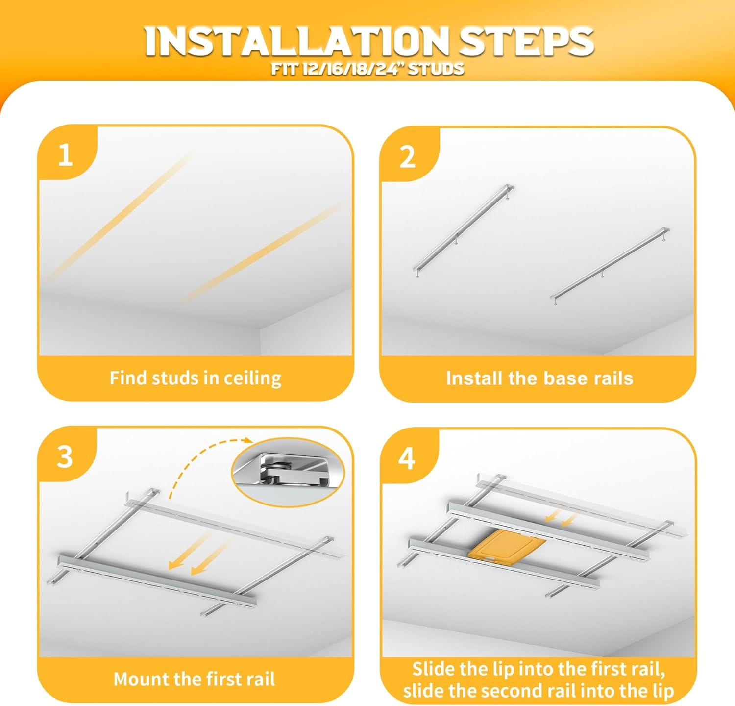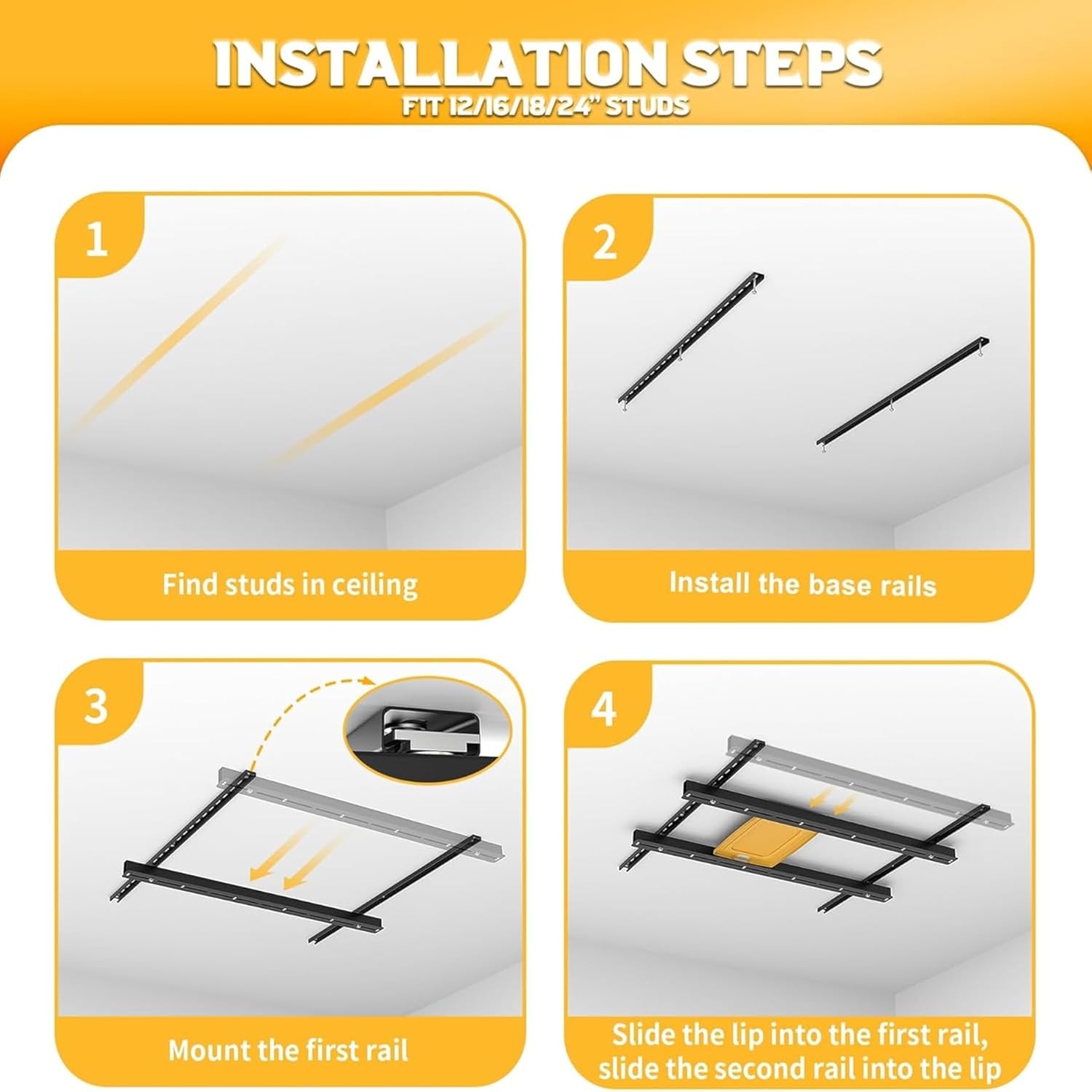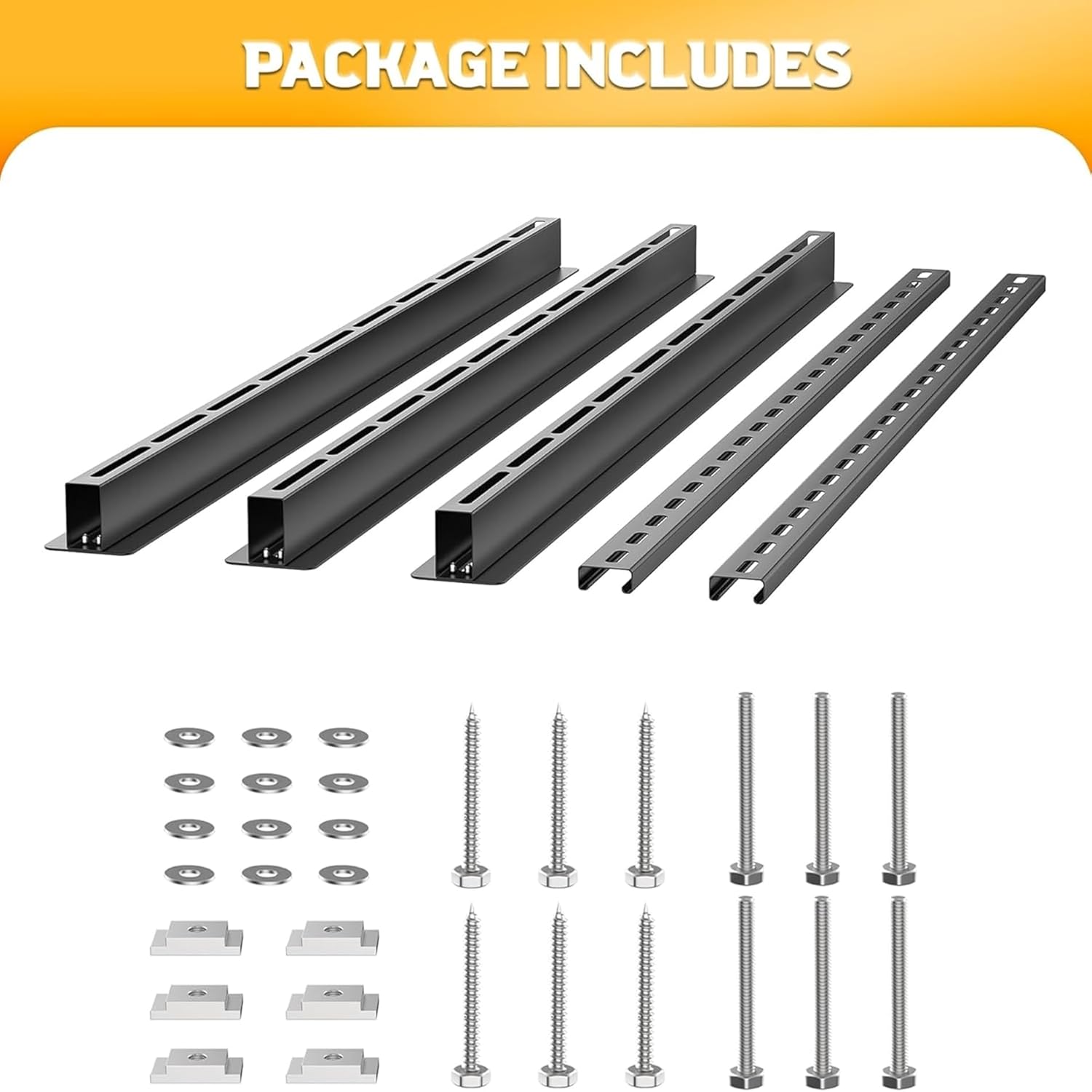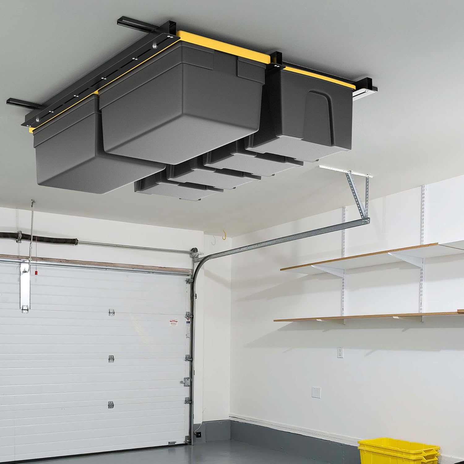 WALMANN Overhead Tote Storage Rail System, Garage Ceiling Bin Storage Rack Heavy Duty Adjustable Tote Slide Rails(Black, Bins not Included)