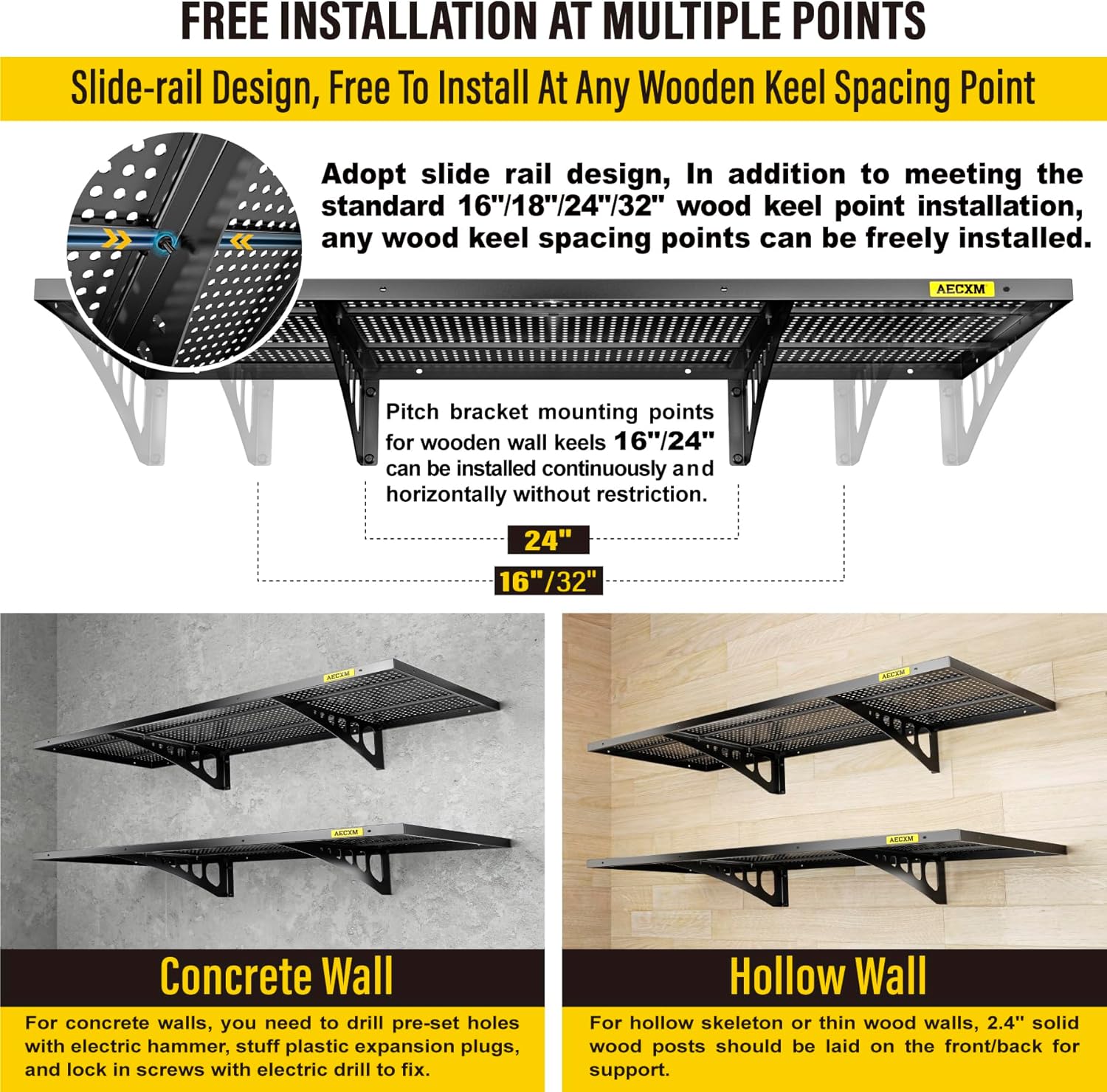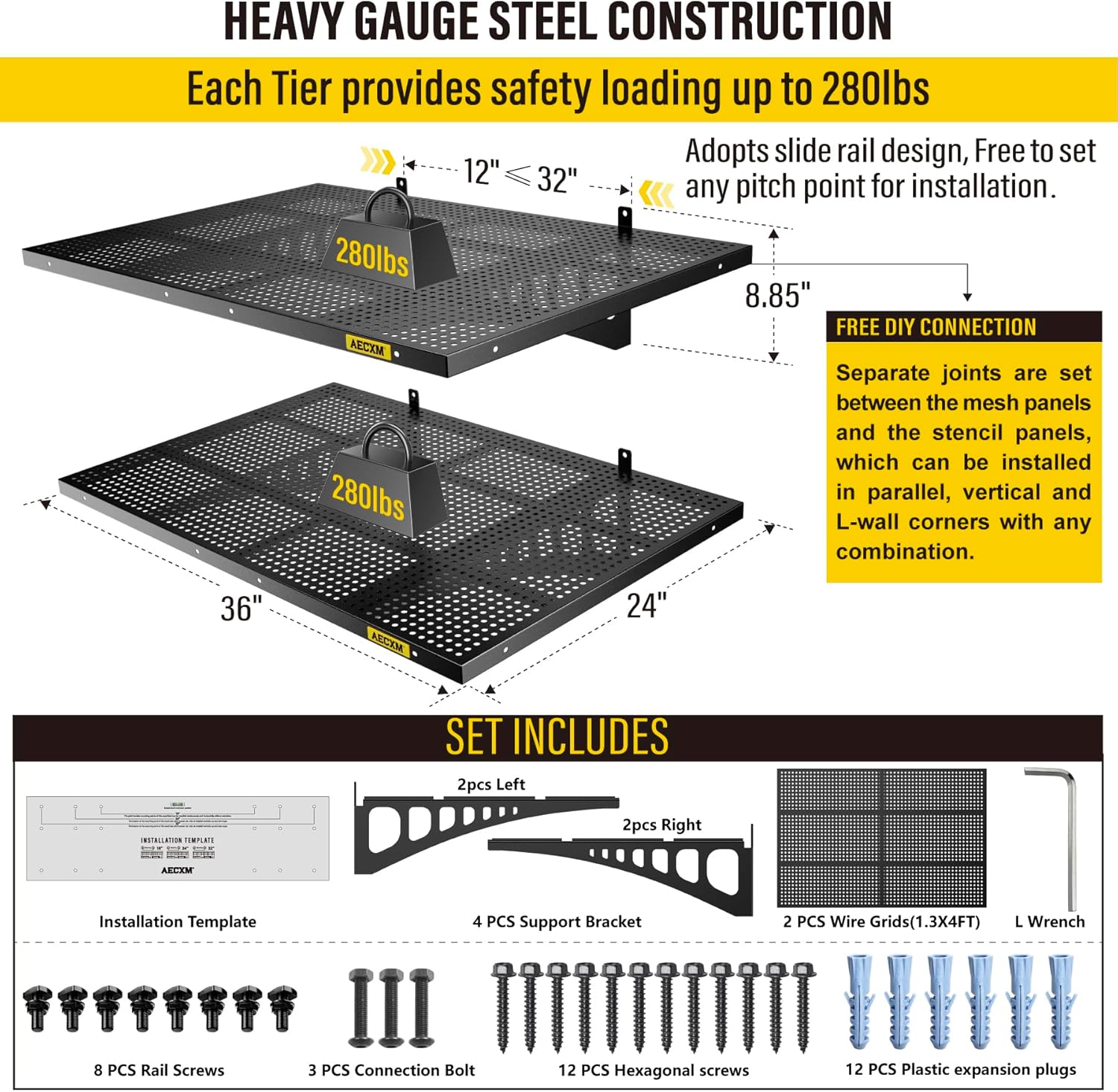 2-Pack 1.64x4ft Adjustable Garage Wall Shelving 560lbs Load Capacity Heavy Duty Wall Mounted Storage Shelf Metal Floating Shelves for Garage(Black)