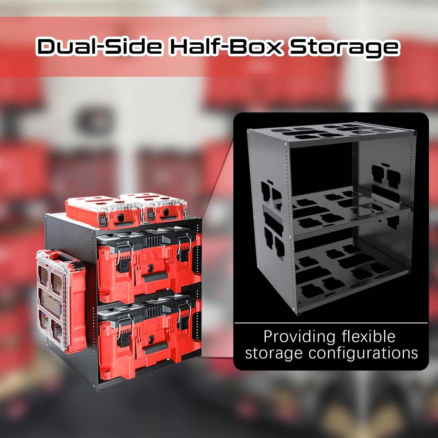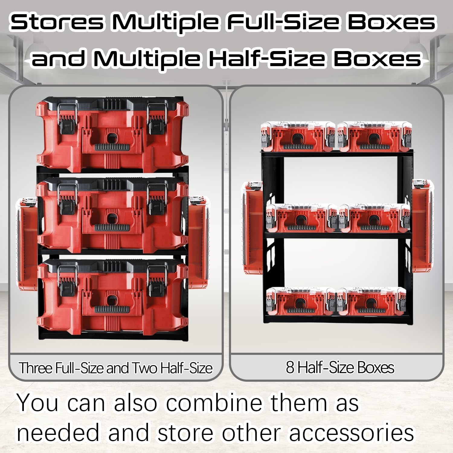 Mounting Plate Compatible with Mil.waukee Packout, Adjustable Heavy Metal material Shelf, Holds Up to 8 Boxes for Tool, Storage and Organization System