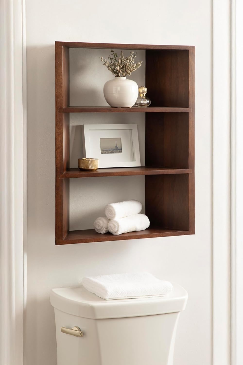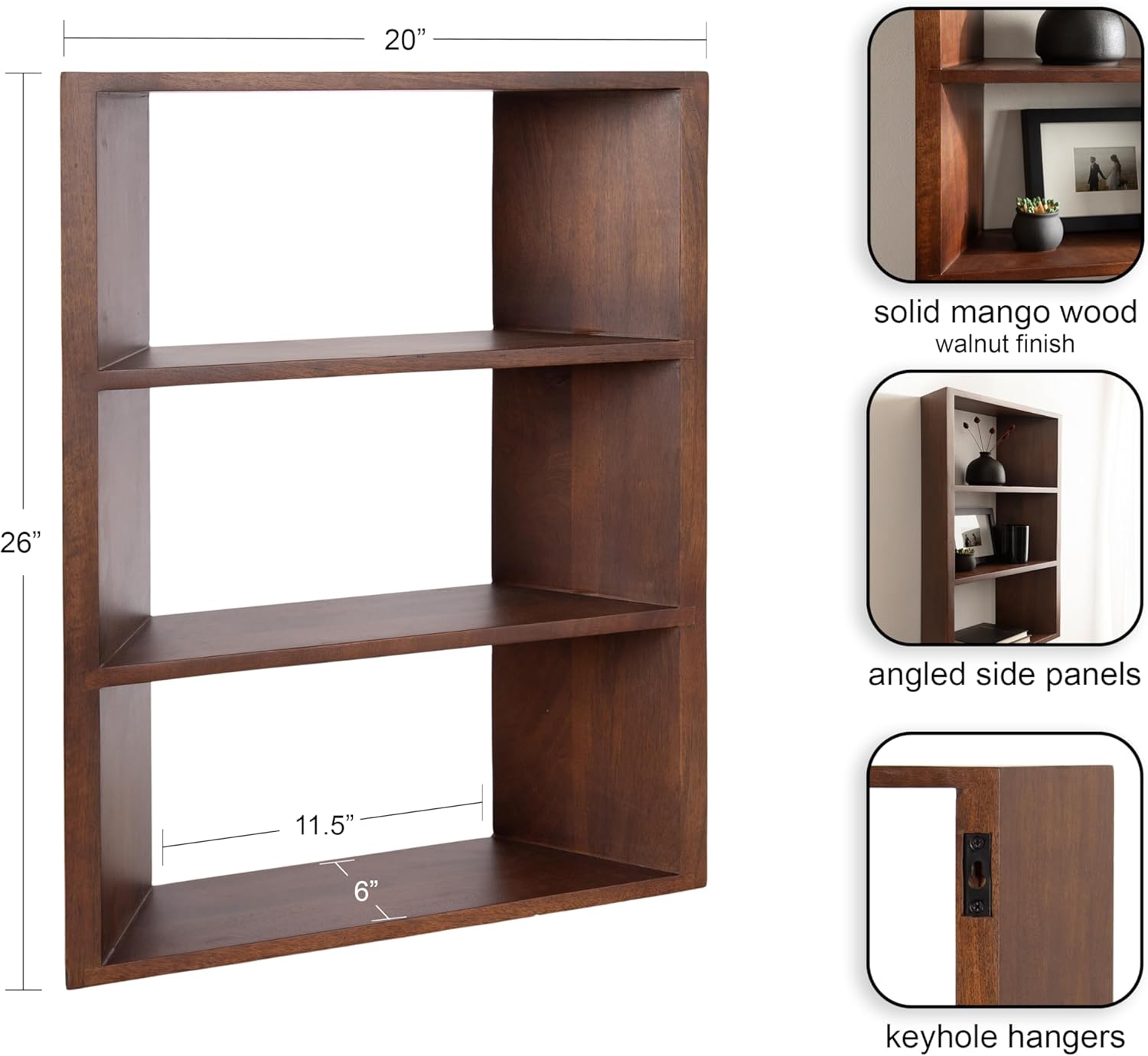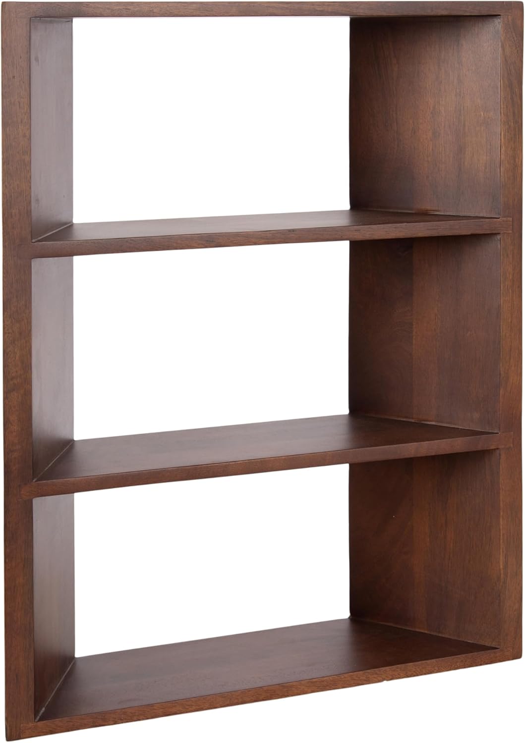 Kate and Laurel Akita Modern Angled Three-Tier Wall Shelf, 20 x 6 x 26, Walnut Brown, Decorative Over The Toilet Shelf for Use as Bathroom Storage or Living Room Display Shelving