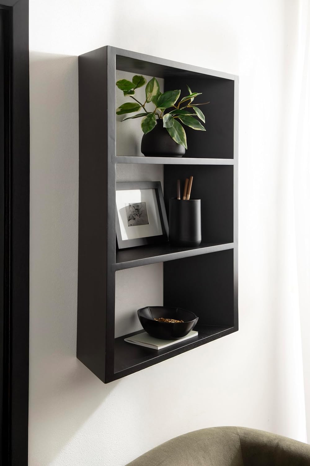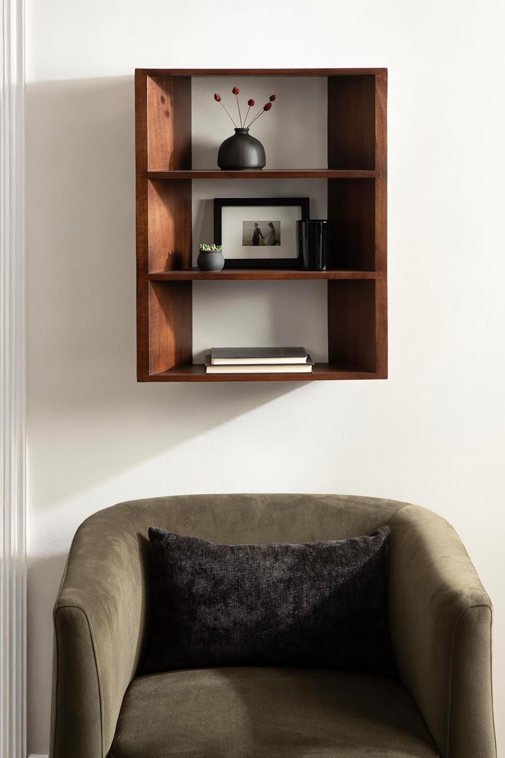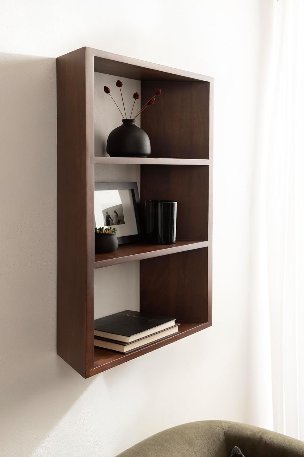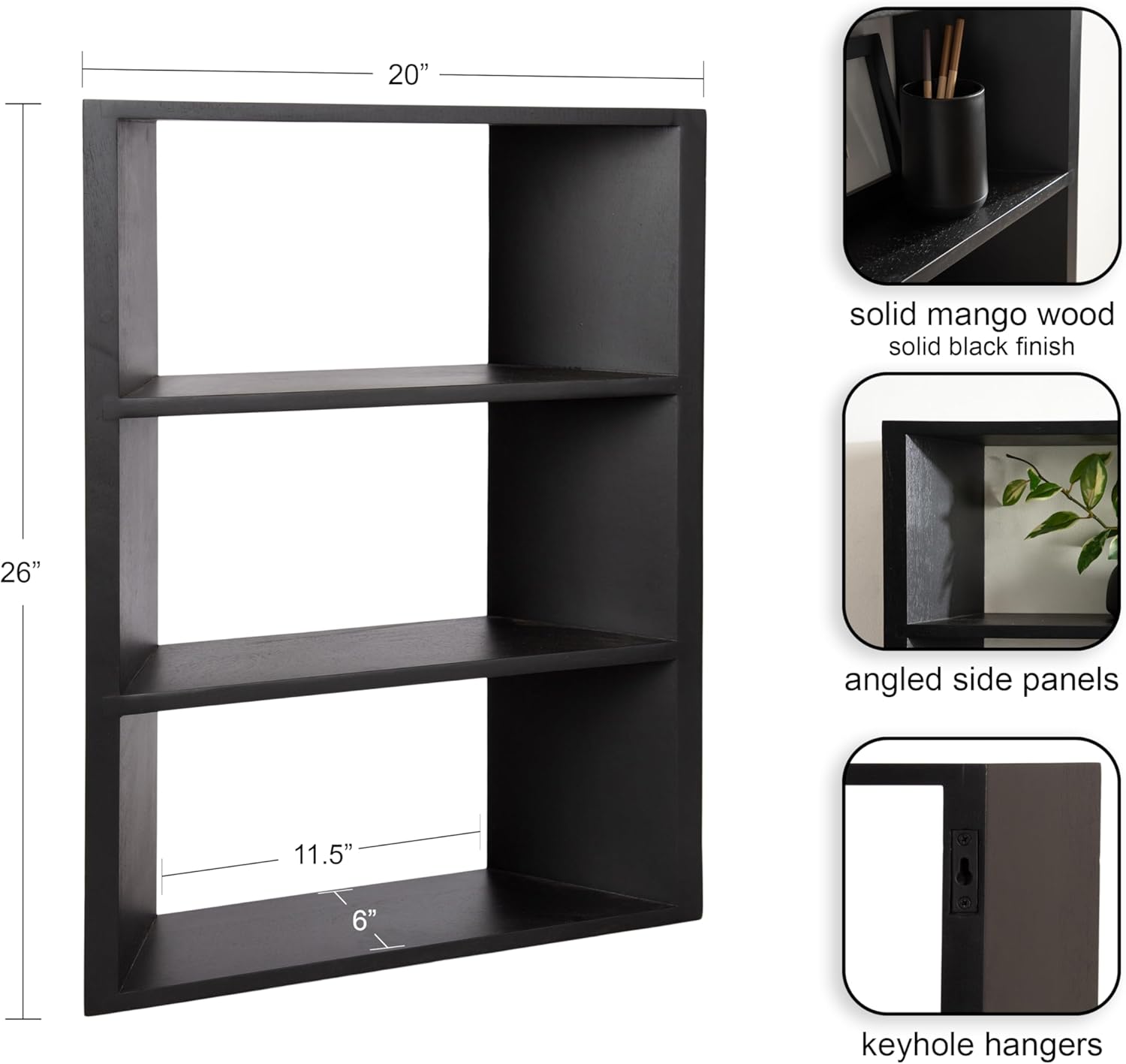 Kate and Laurel Akita Modern Angled Three-Tier Wall Shelf, 20 x 6 x 26, Walnut Brown, Decorative Over The Toilet Shelf for Use as Bathroom Storage or Living Room Display Shelving