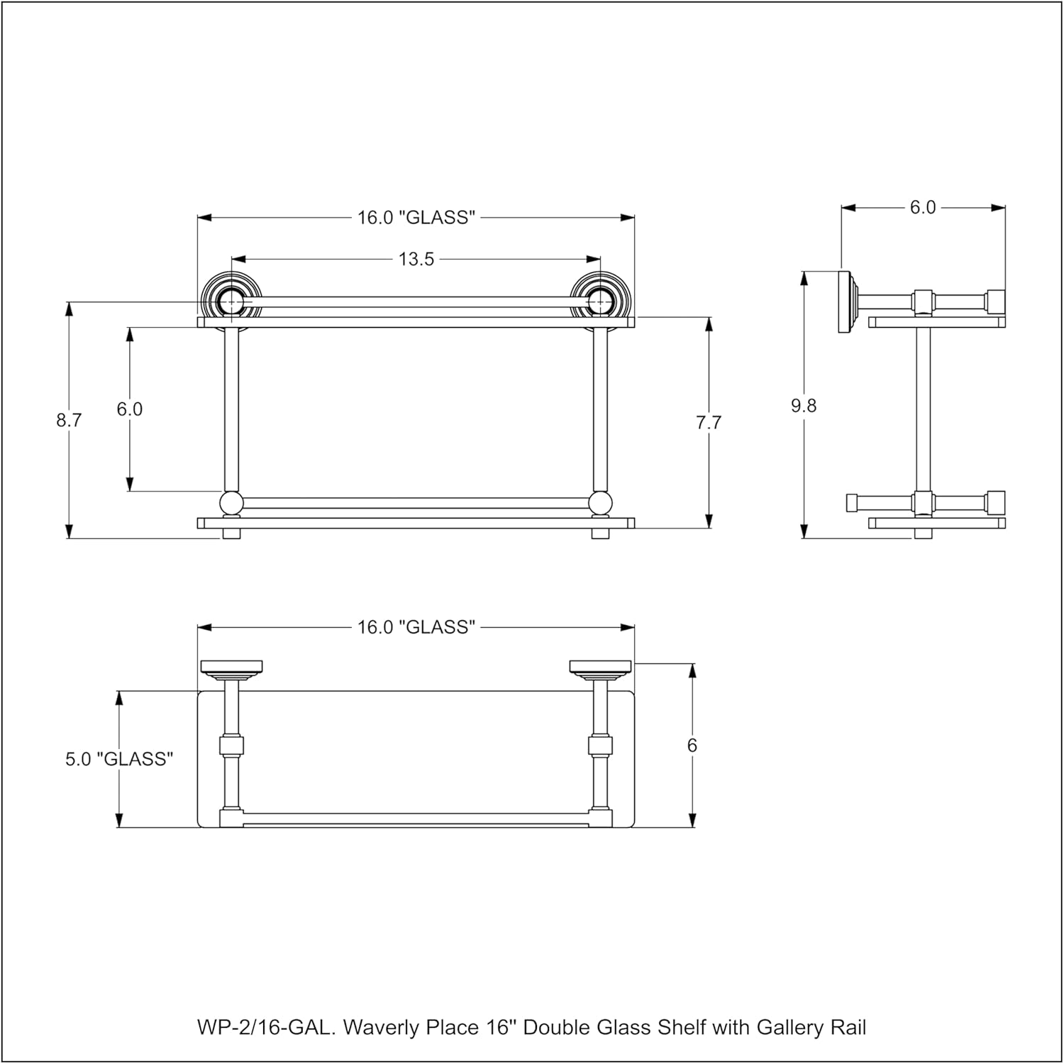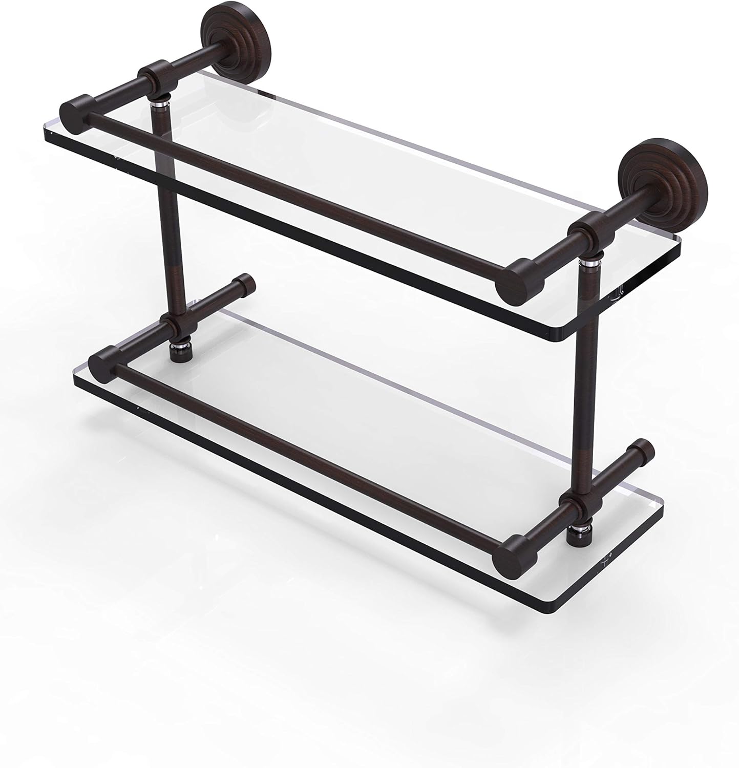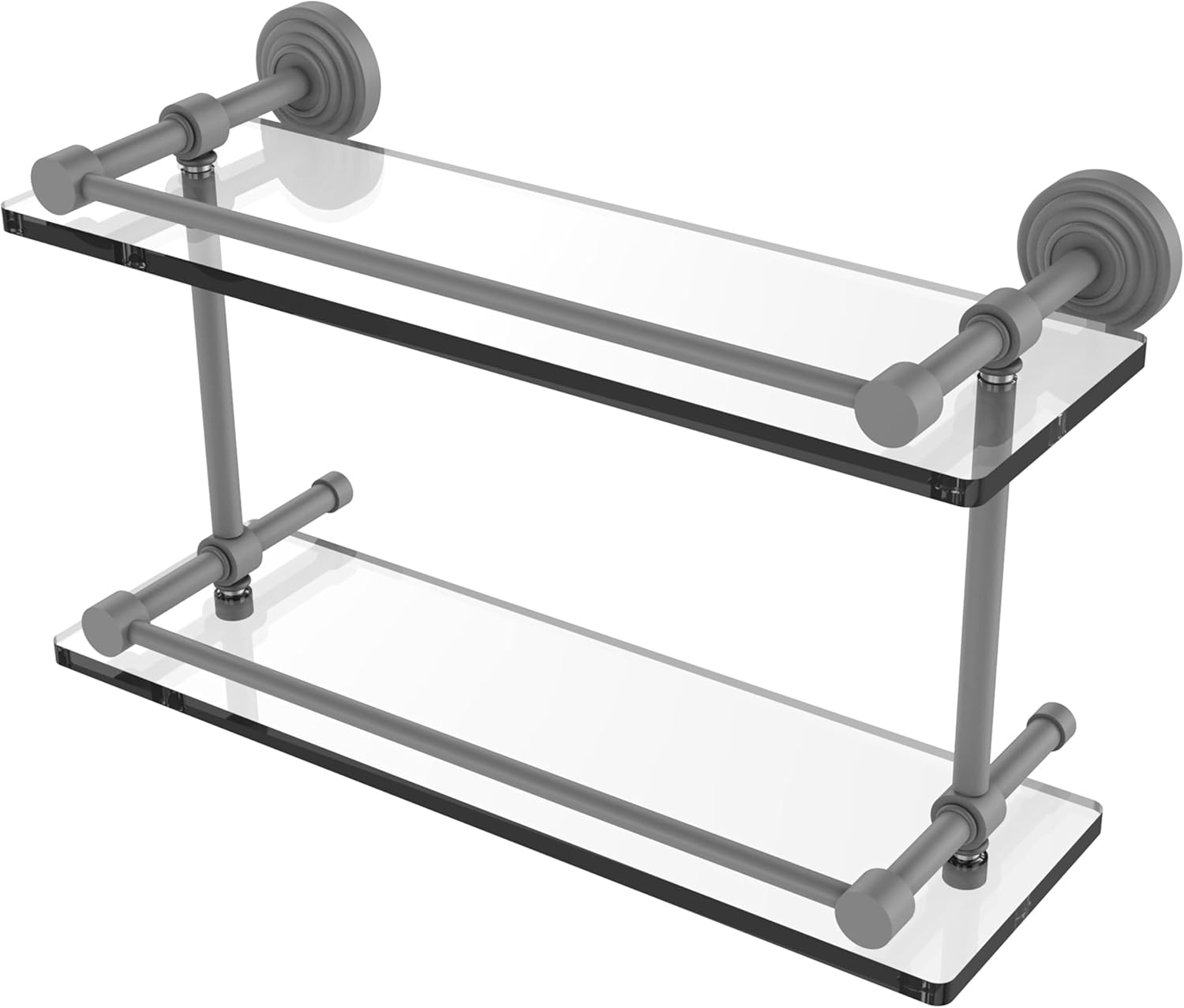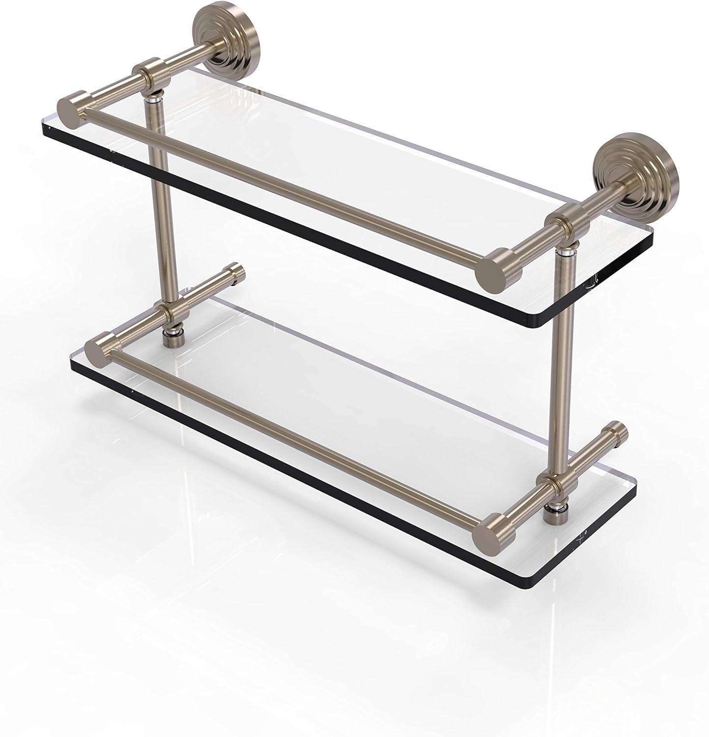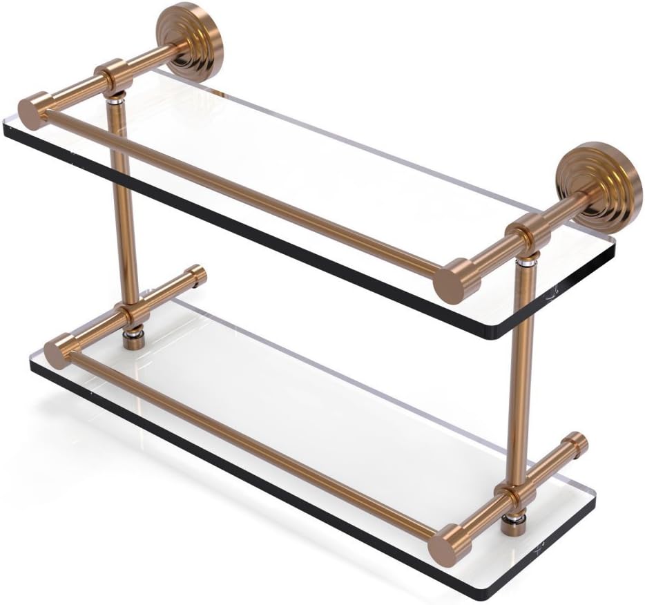 Allied Brass WP-2/16-GAL-SN Waverly Place 16 Inch Double Glass Shelf with Gallery Rail, Satin Nickel
