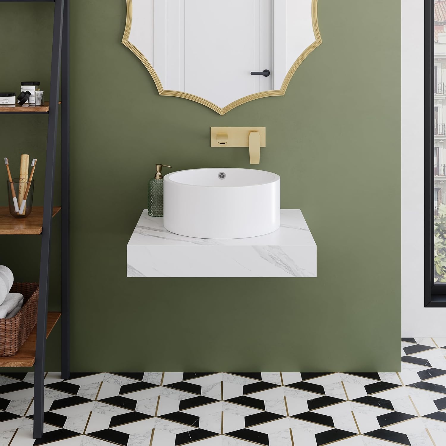 Swiss Madison Well Made Forever Monaco 24" Floating Vessel Sink Bathroom Shelf Floating Vanity Counter in White Marble(SM-VS252)