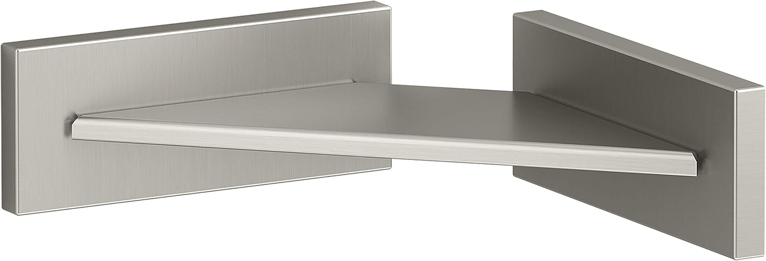 Schluter Quadrilateral Corner Shelf for Tiled Walls - Floral Design, Stainless Steel Material, Brushed Stainless Steel Finish, 3/32” Thick Anchoring Tabs - SES3D5EB