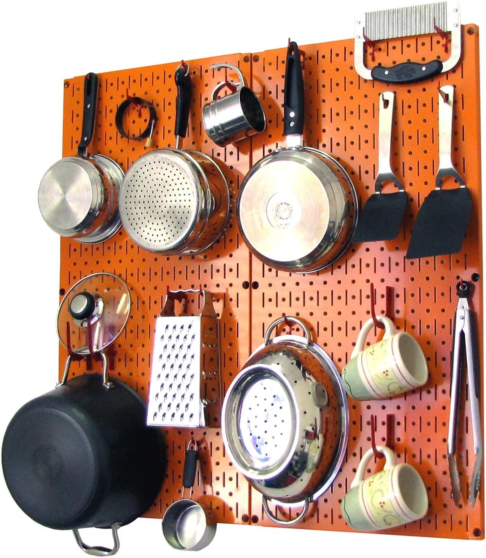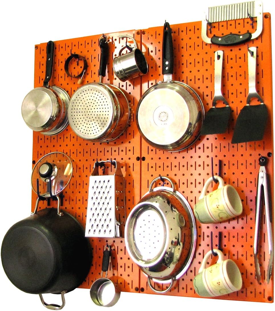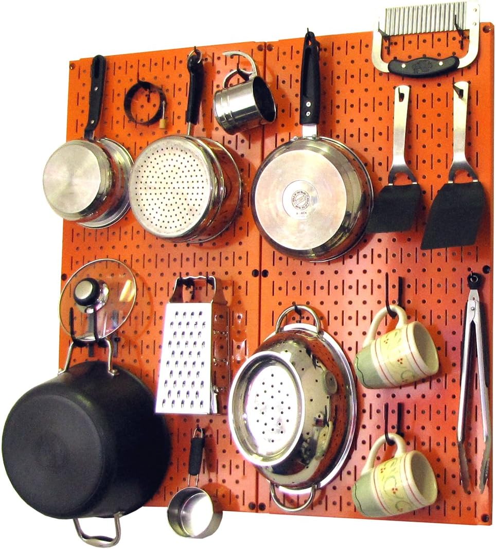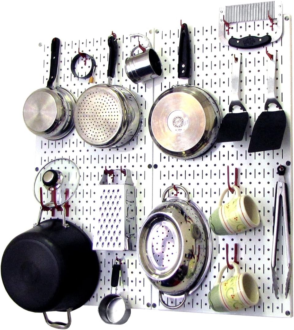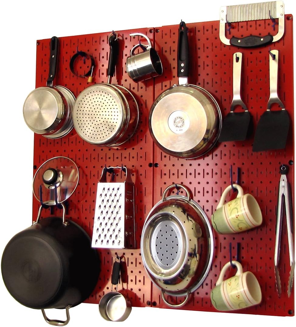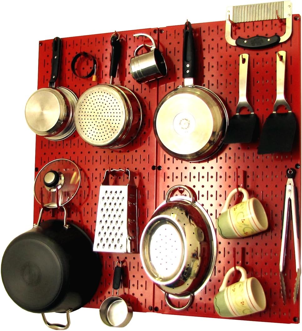 Wall Control Kitchen Pegboard Organizer Pots and Pans Pegboard Pack Storage and Organization Kit with Black Wall Board and Red Accessories