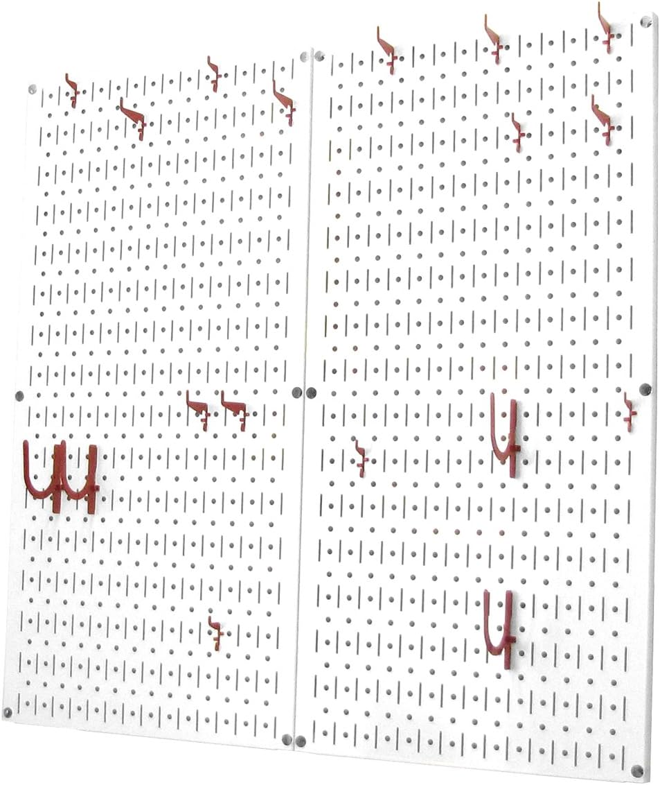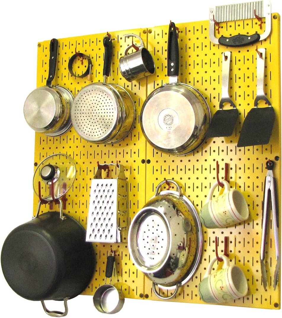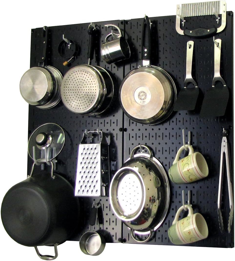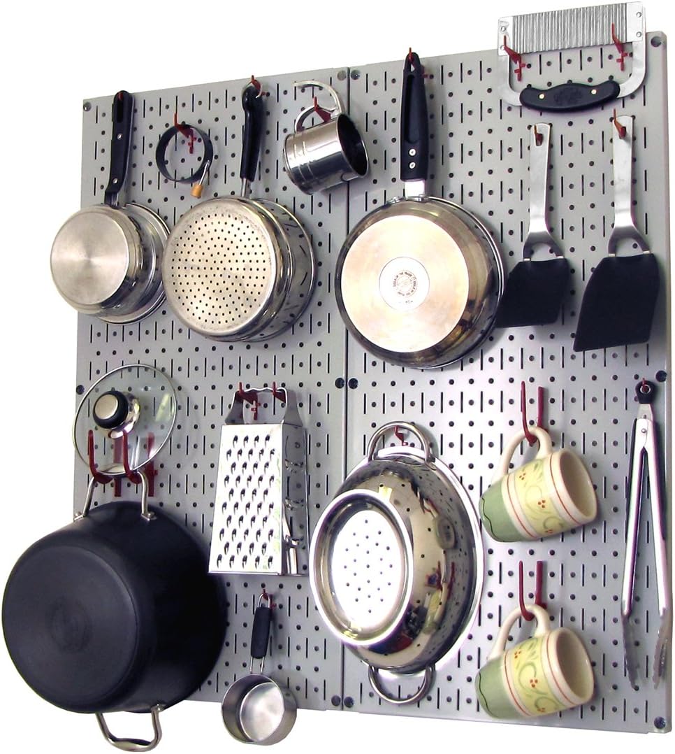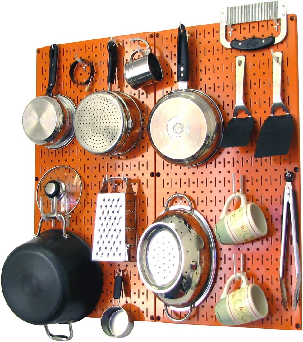 Wall Control Kitchen Pegboard Organizer Pots and Pans Pegboard Pack Storage and Organization Kit with Black Wall Board and Red Accessories