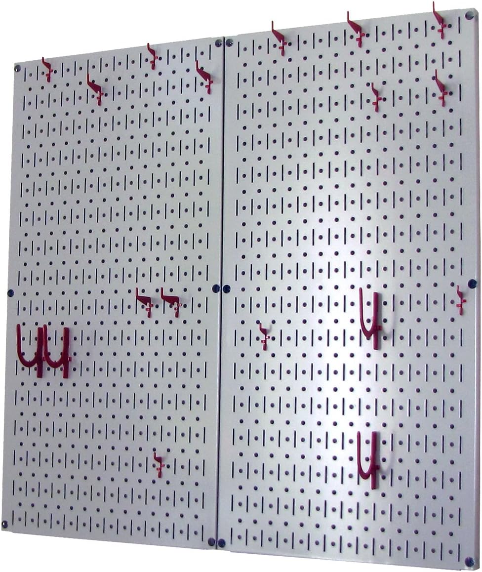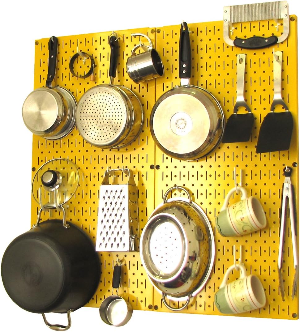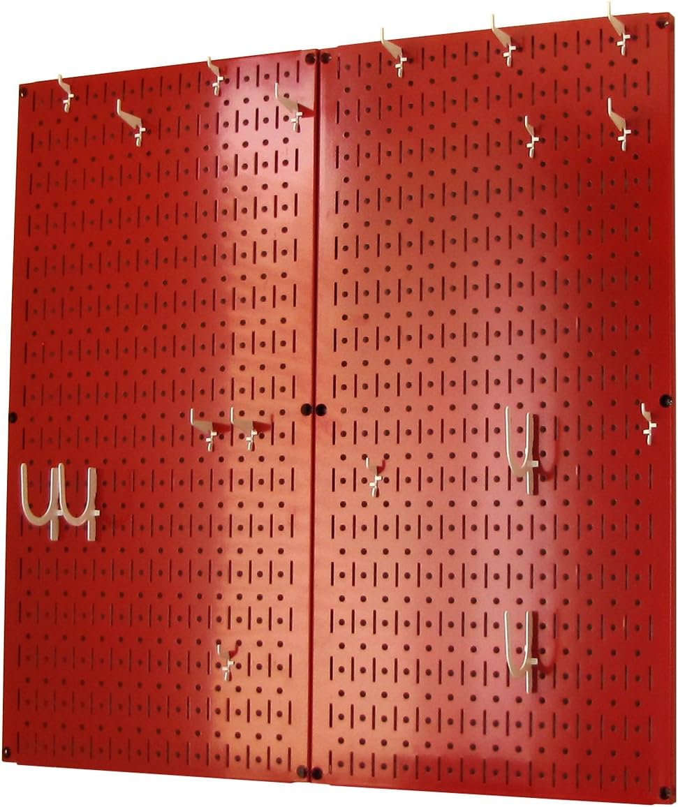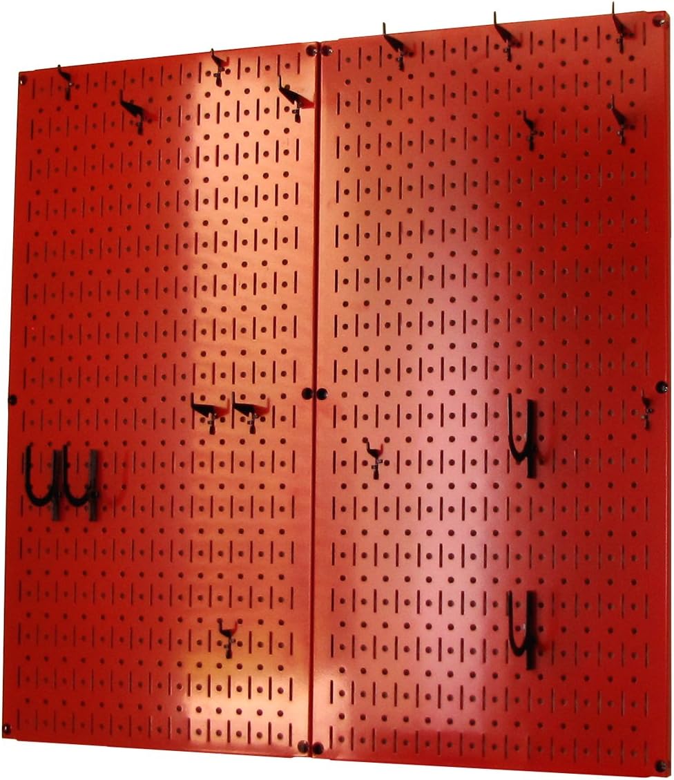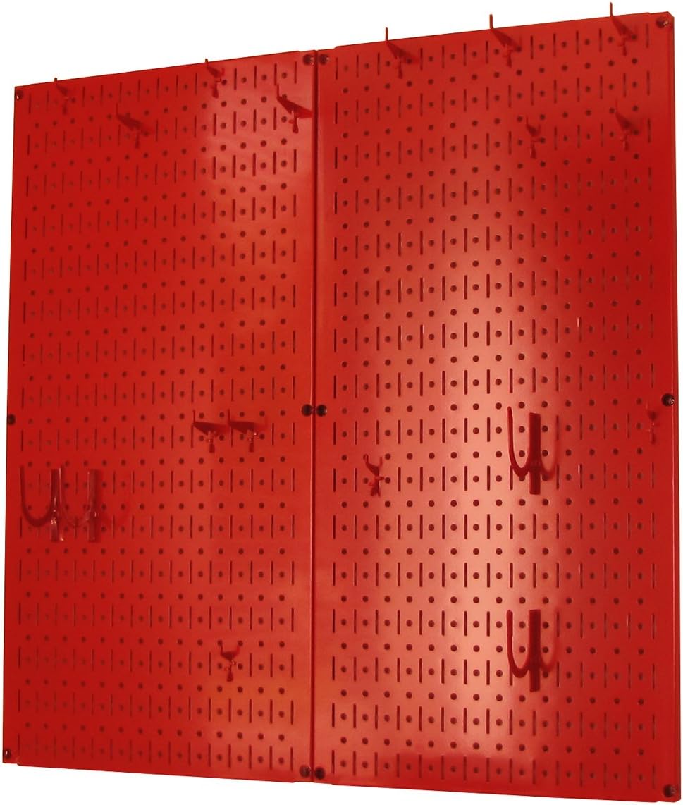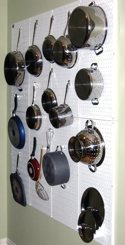 Wall Control Kitchen Pegboard Organizer Pots and Pans Pegboard Pack Storage and Organization Kit with Black Wall Board and Red Accessories