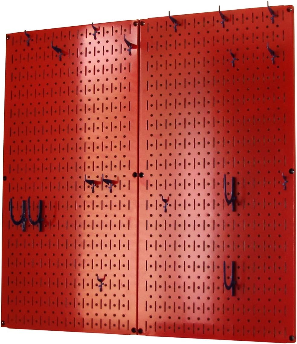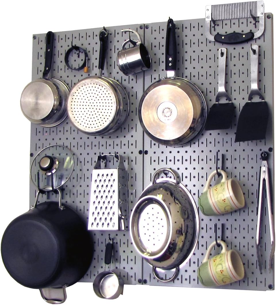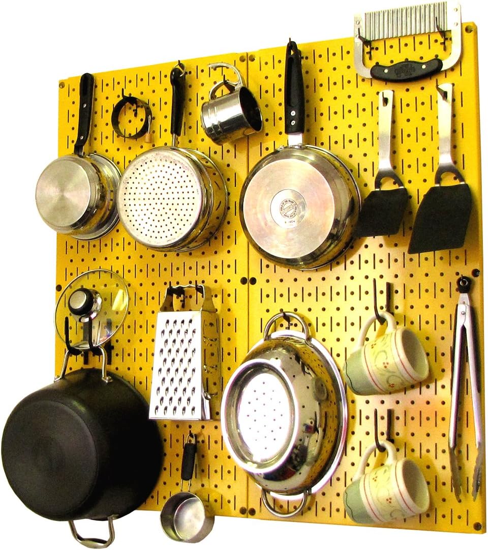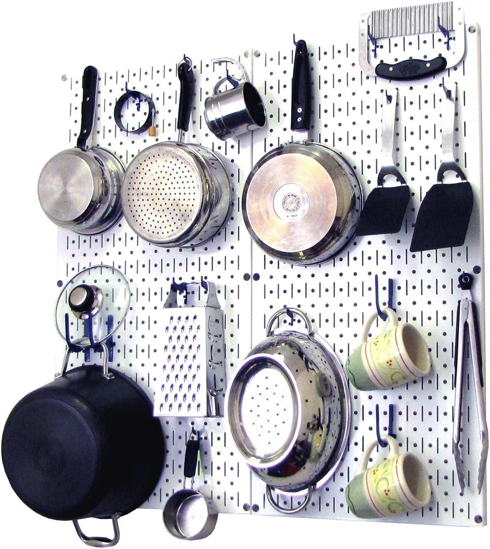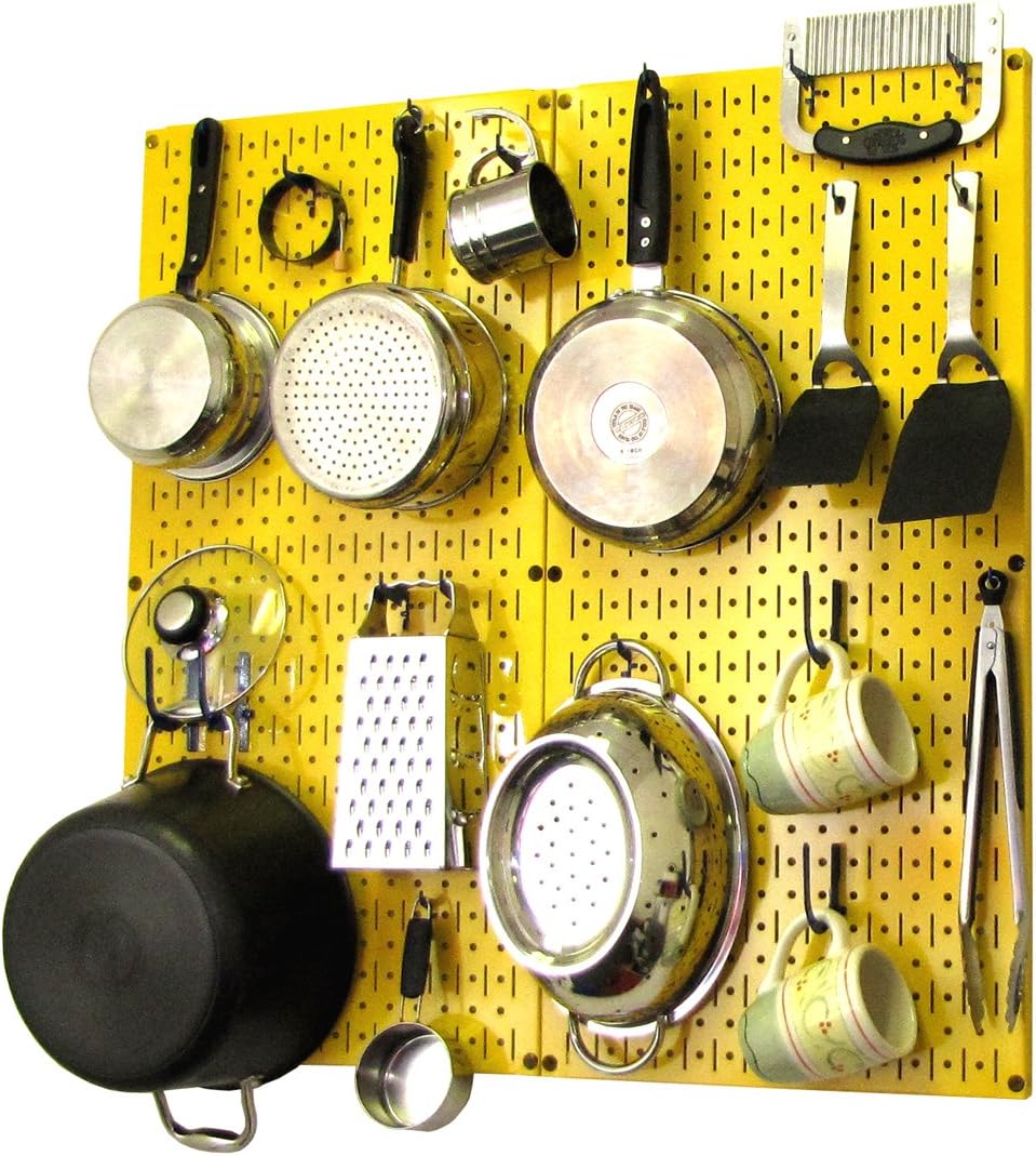Wall Control Kitchen Pegboard Organizer Pots and Pans Pegboard Pack Storage and Organization Kit with Black Wall Board and Red Accessories