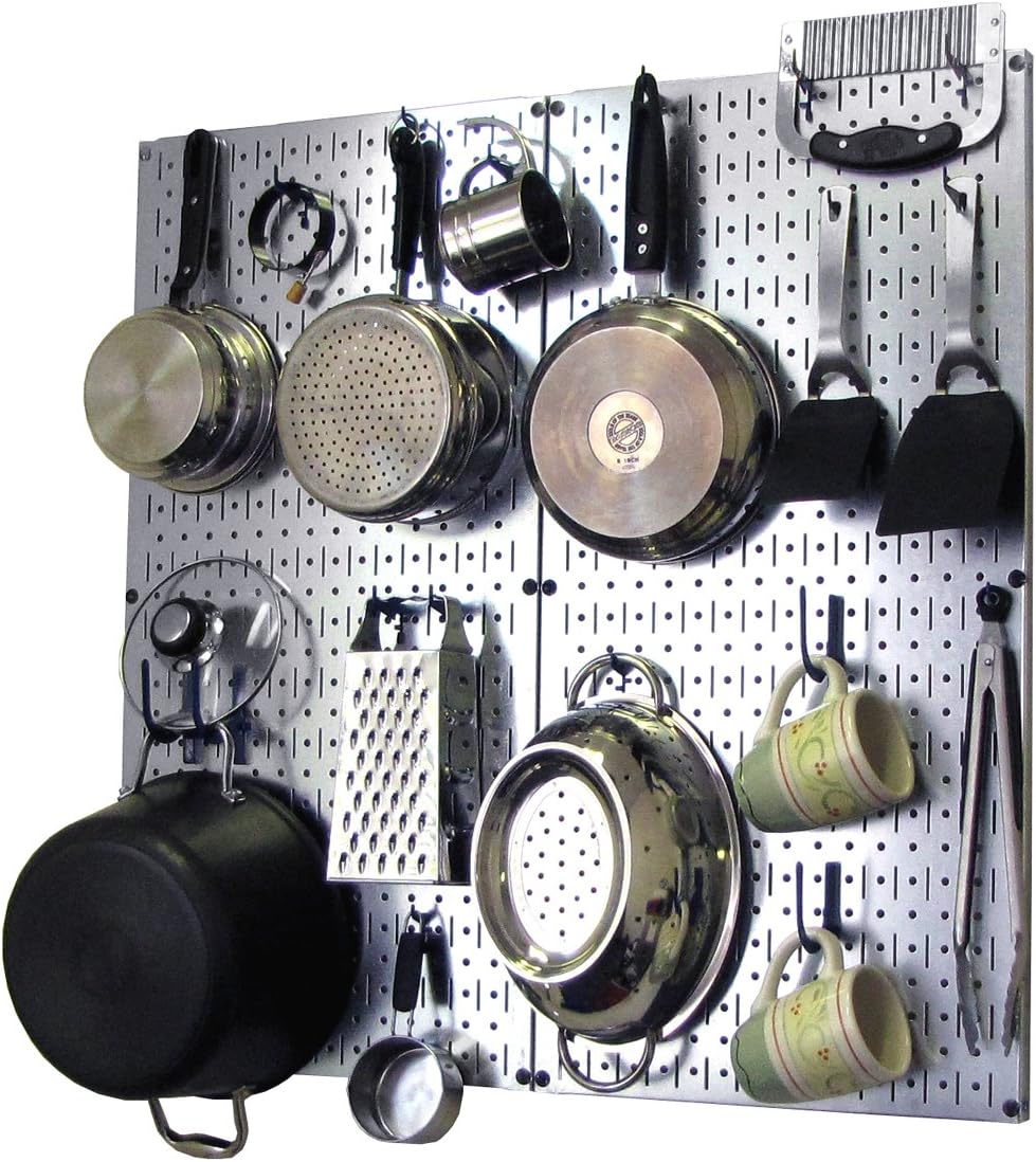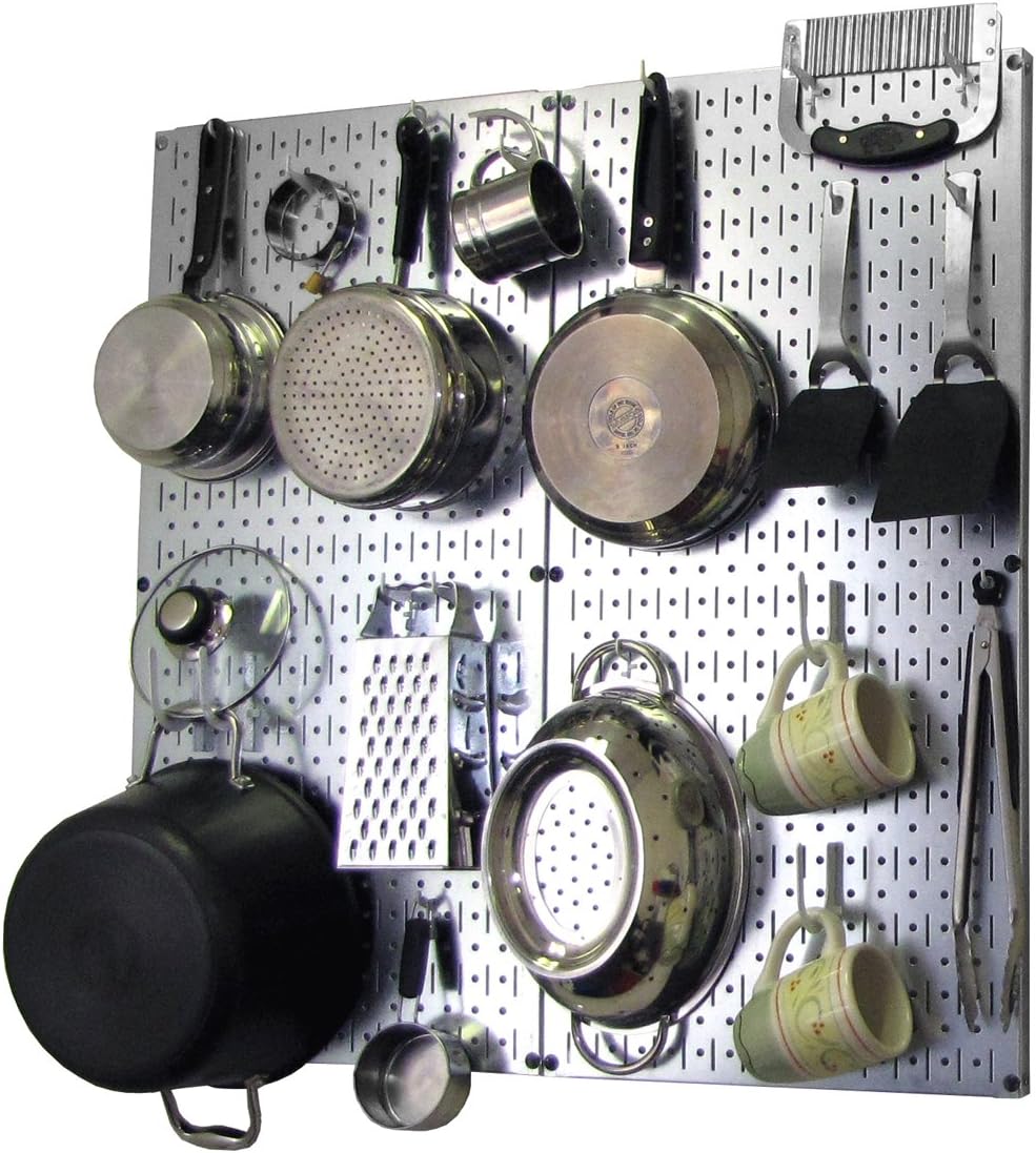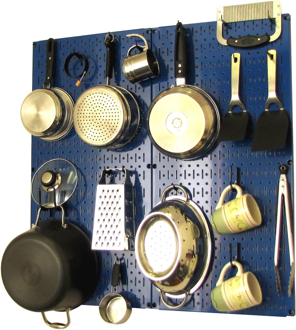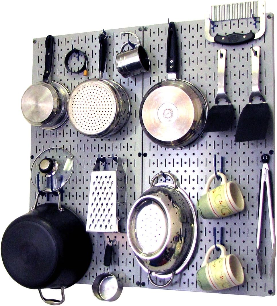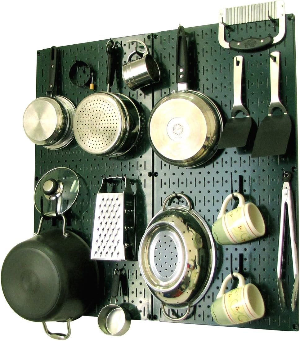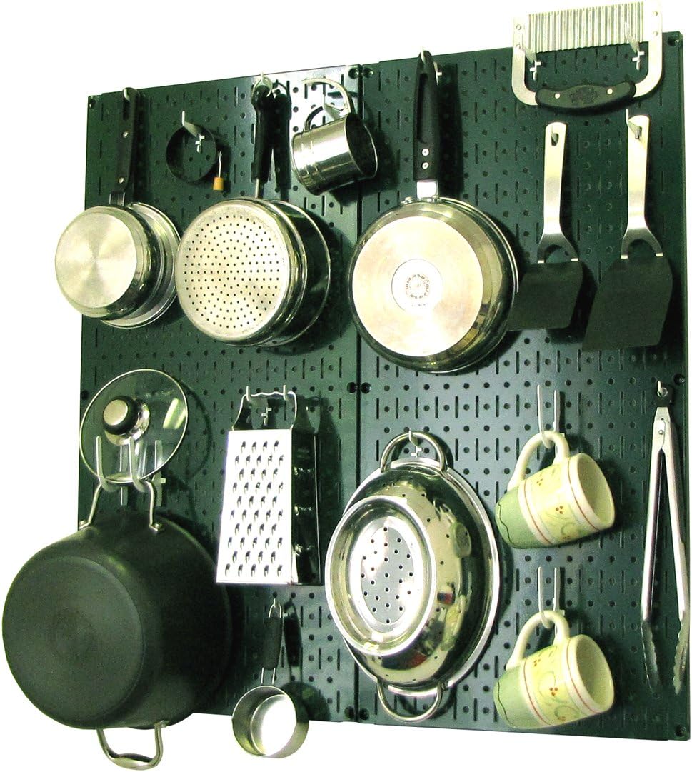 Wall Control Kitchen Pegboard Organizer Pots and Pans Pegboard Pack Storage and Organization Kit with Black Wall Board and Red Accessories