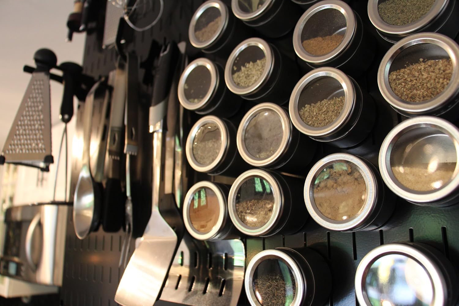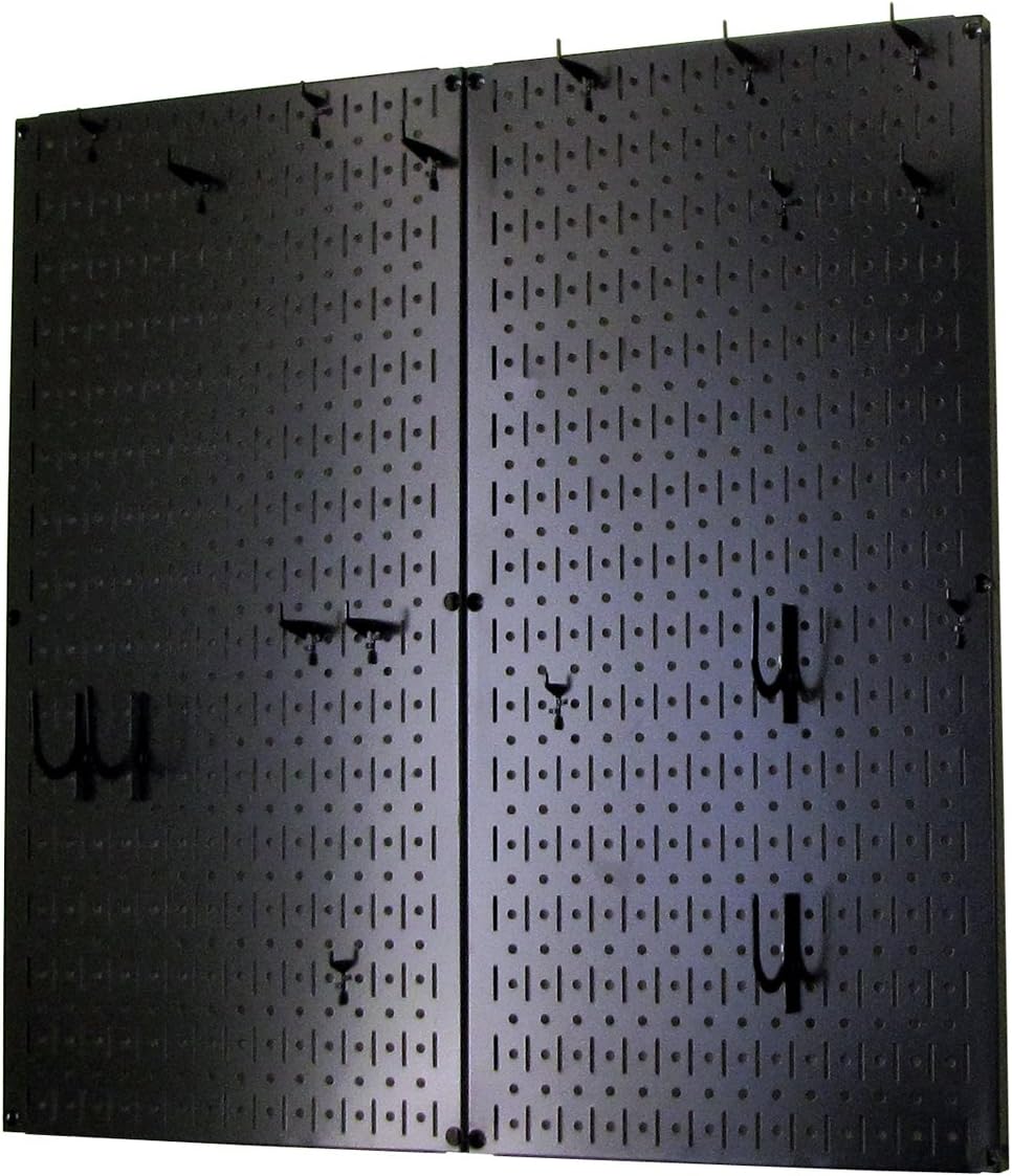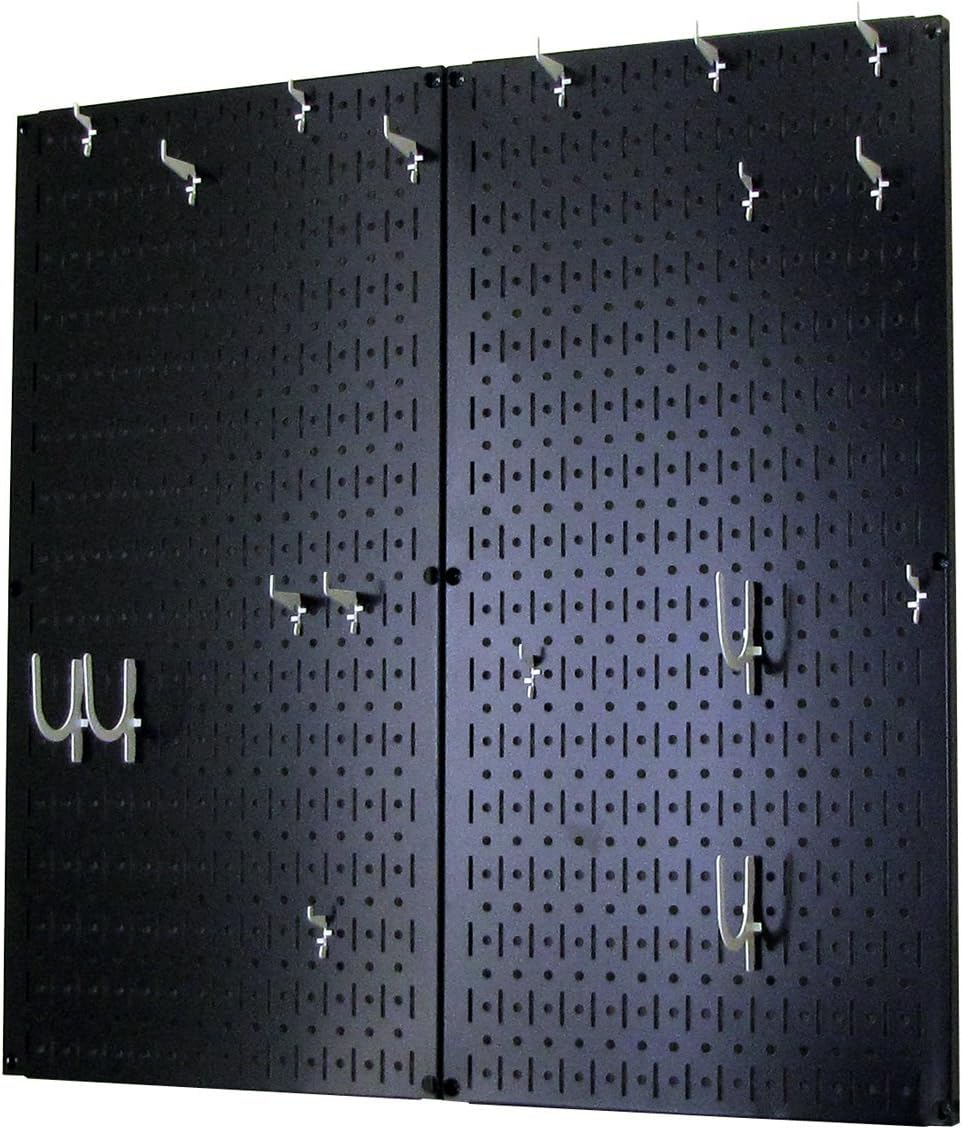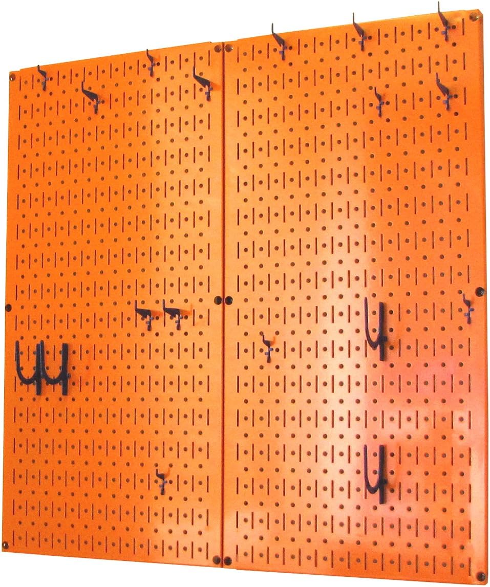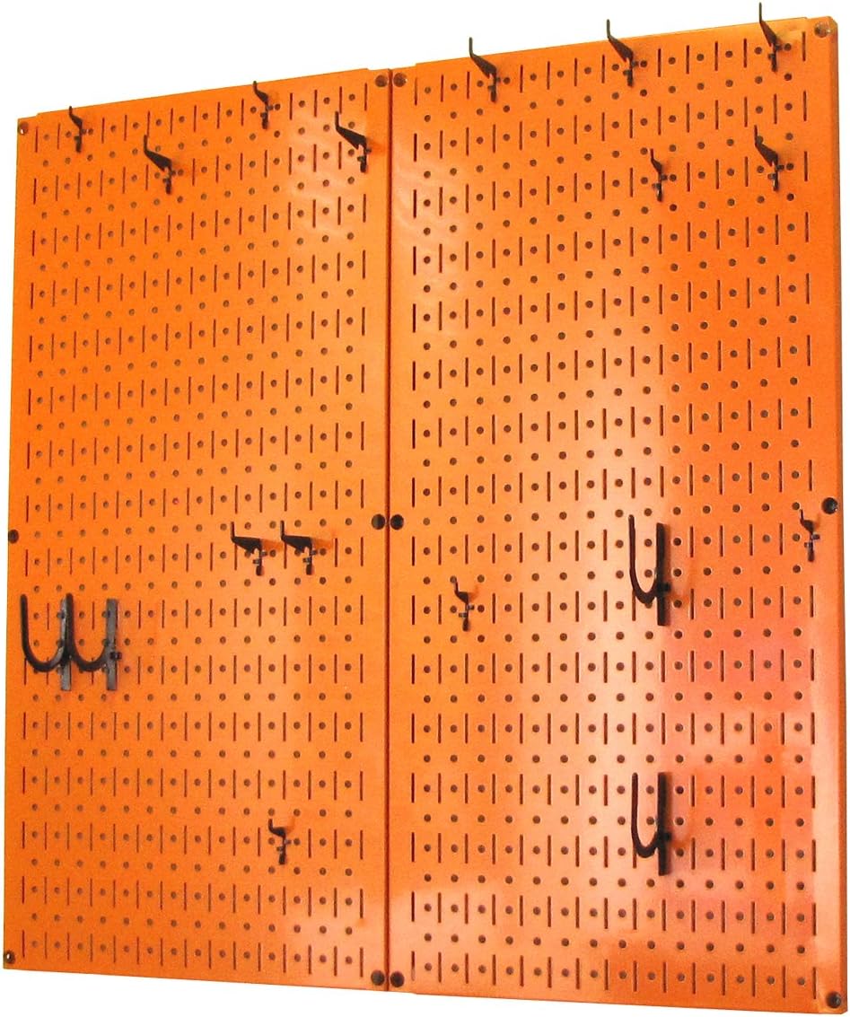 Wall Control Kitchen Pegboard Organizer Pots and Pans Pegboard Pack Storage and Organization Kit with Black Wall Board and Red Accessories