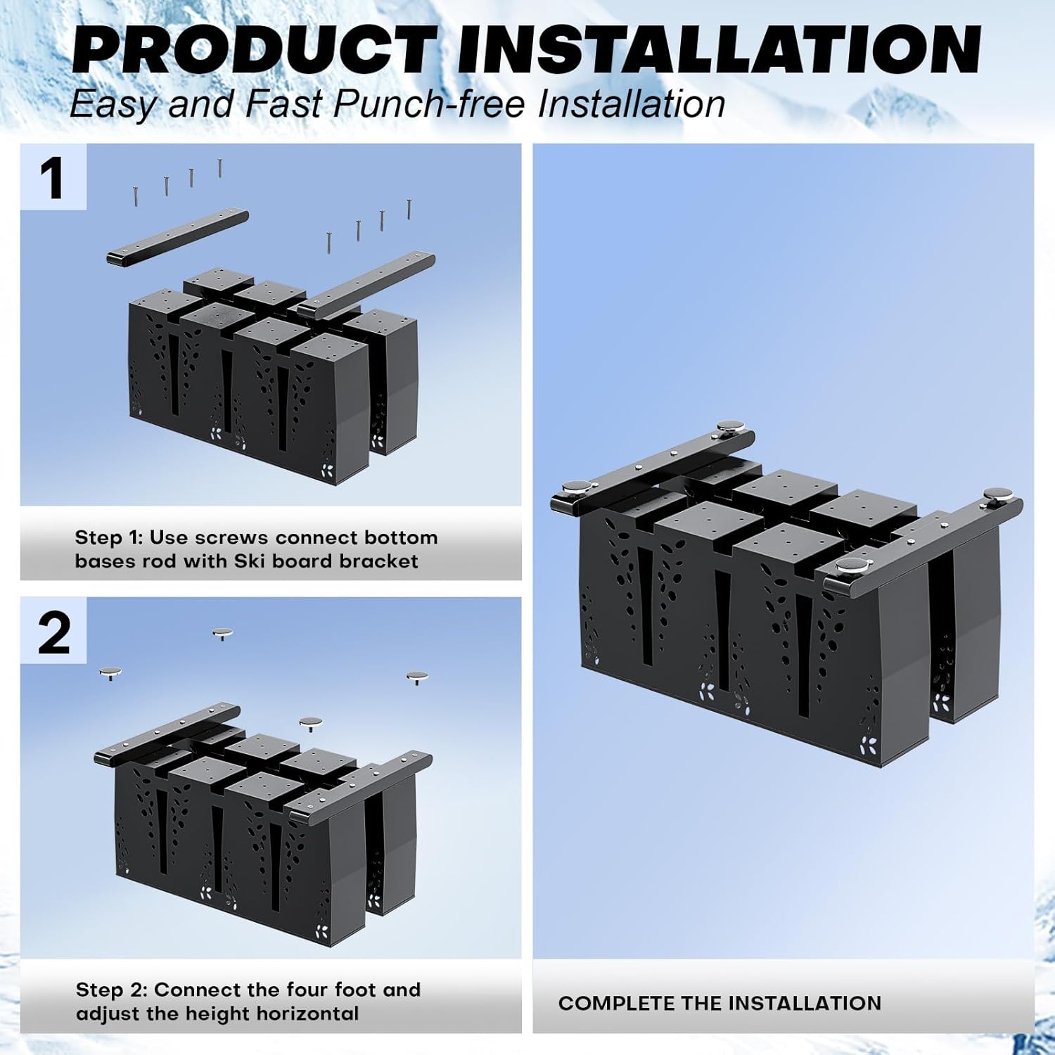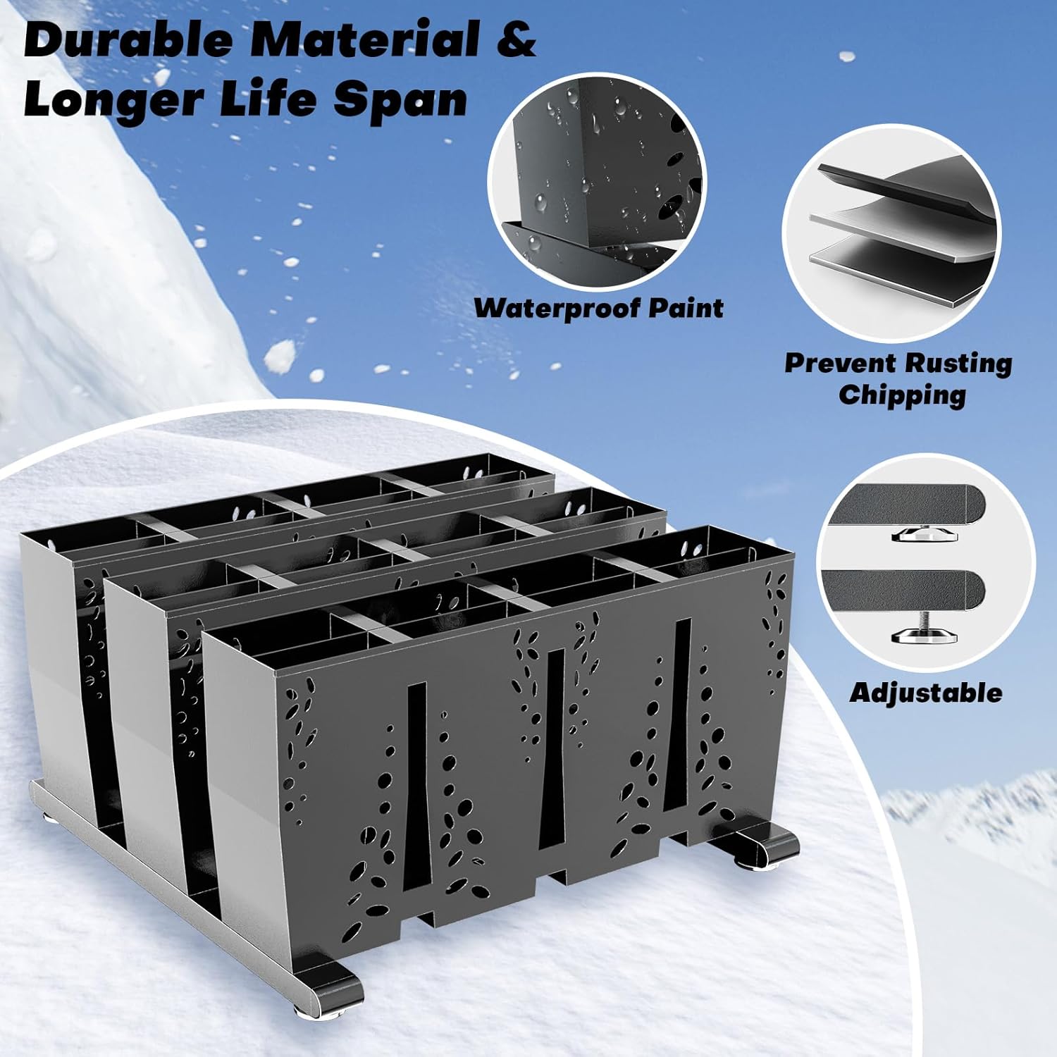 Freestanding Ski Storage Rack for 8 Pairs, Floor Stand Ski Organizer Rack, Heavy Duty Alloy Steel Ski Holders Ski Organizer, Freestanding Ski Organizer for Garage Basement