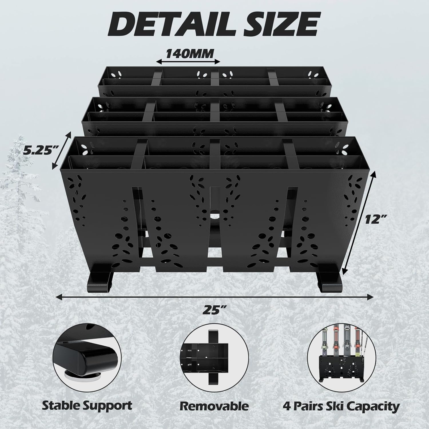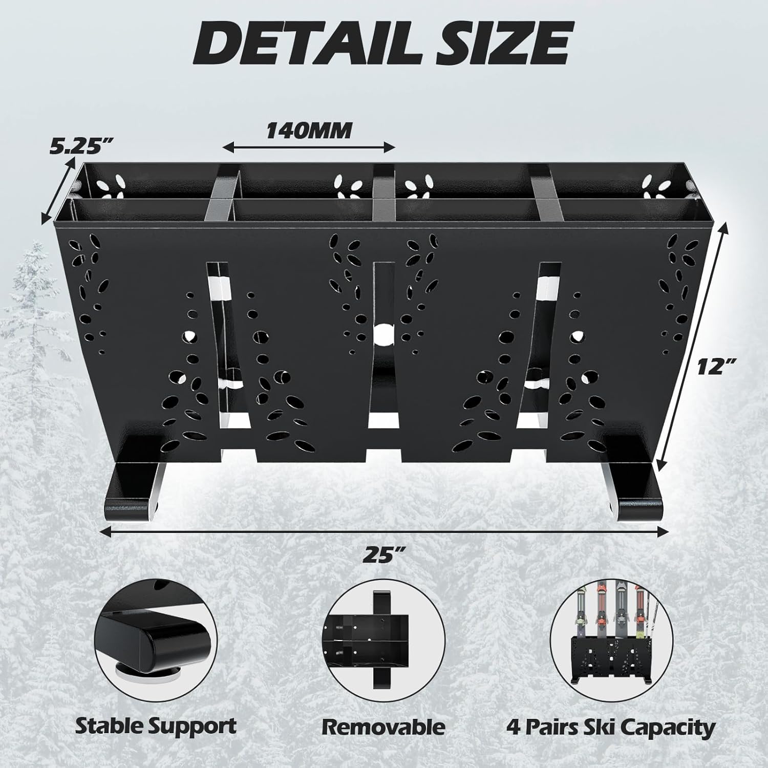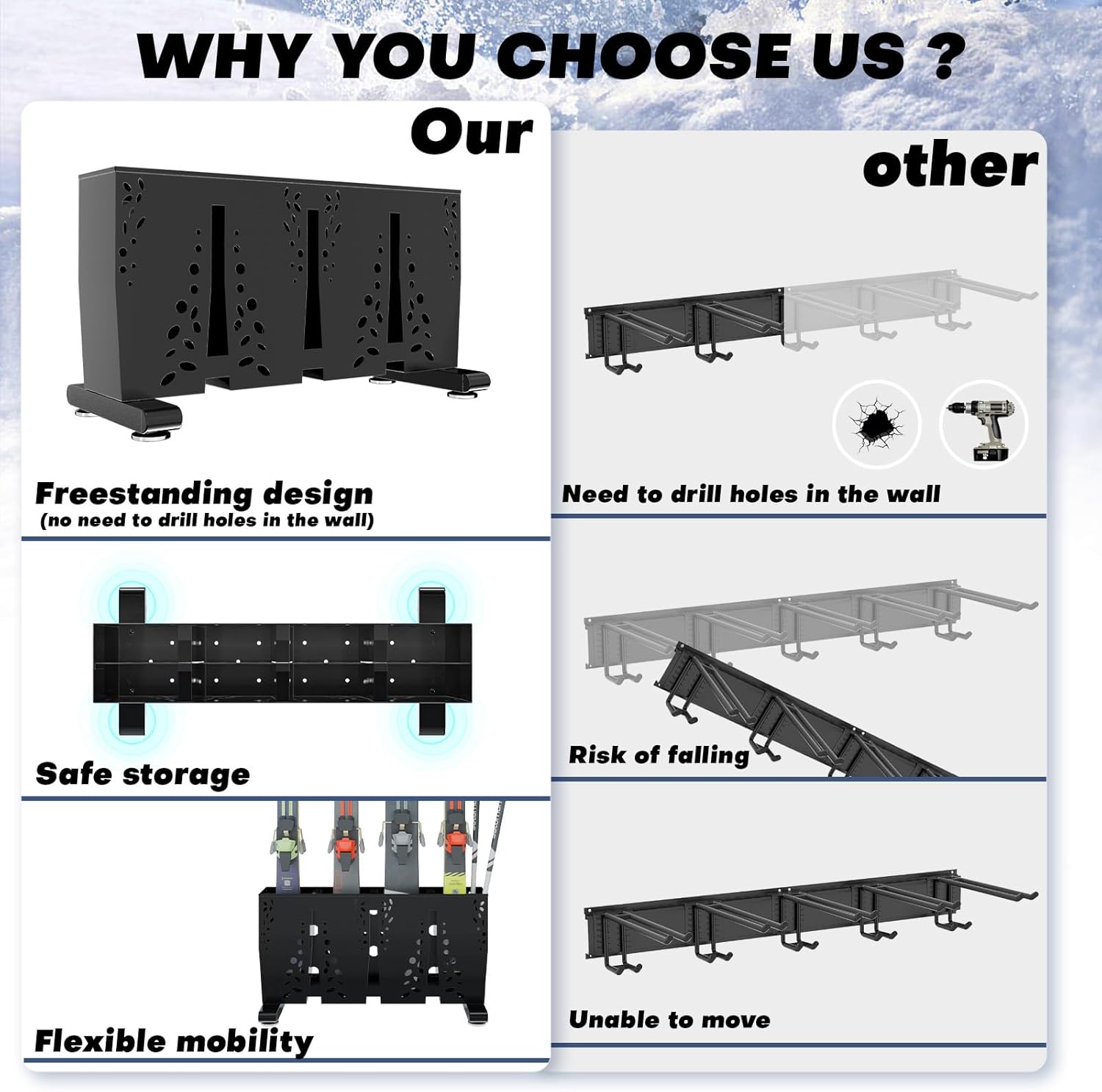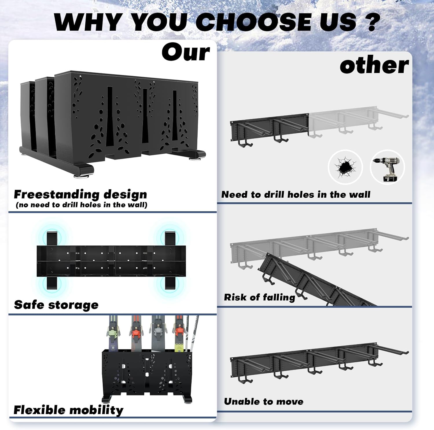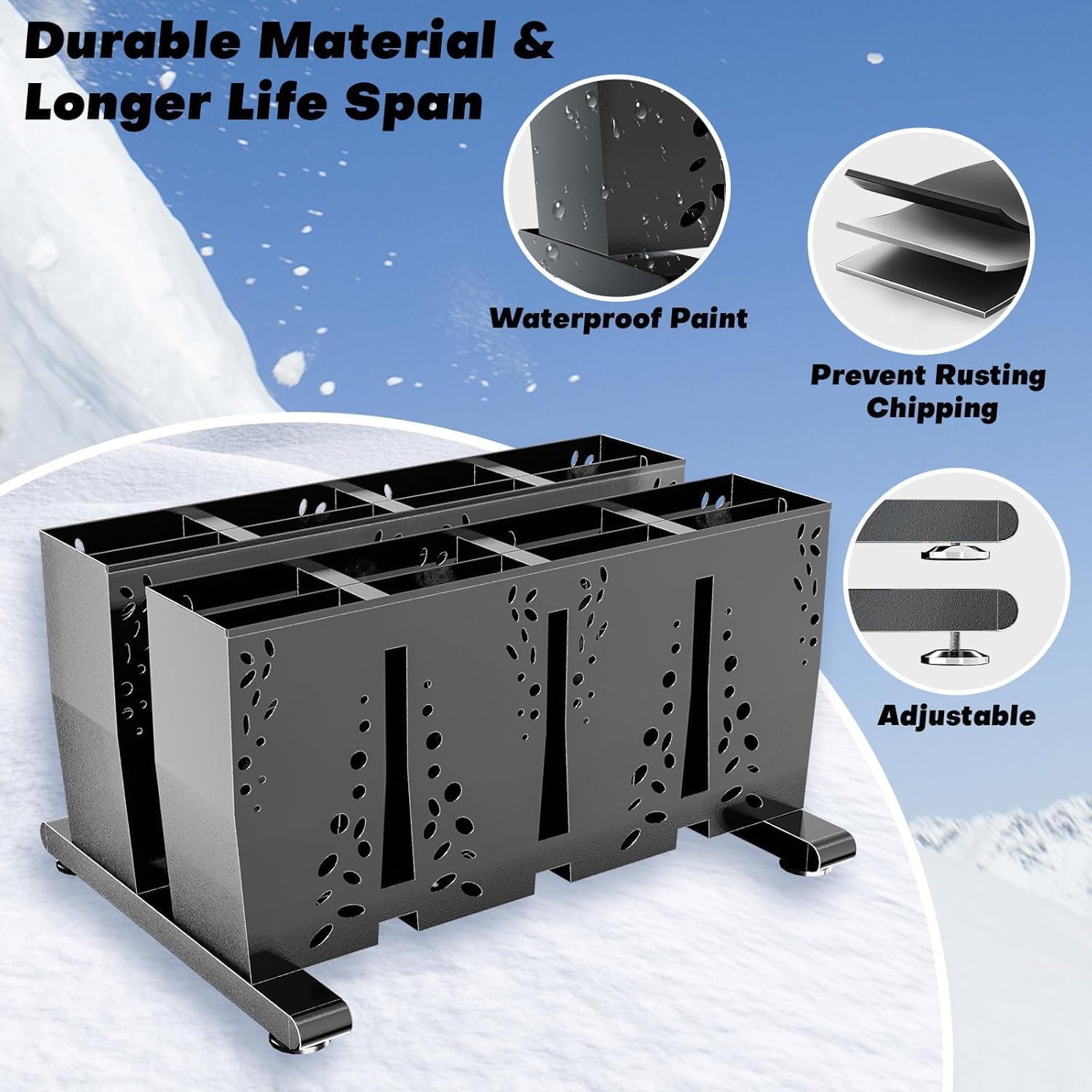 Heavy Duty Metal Ski Storage Rack, 8 Pair Freestanding Steel Ski Holder, Floor Stand Ski Organizer Rack