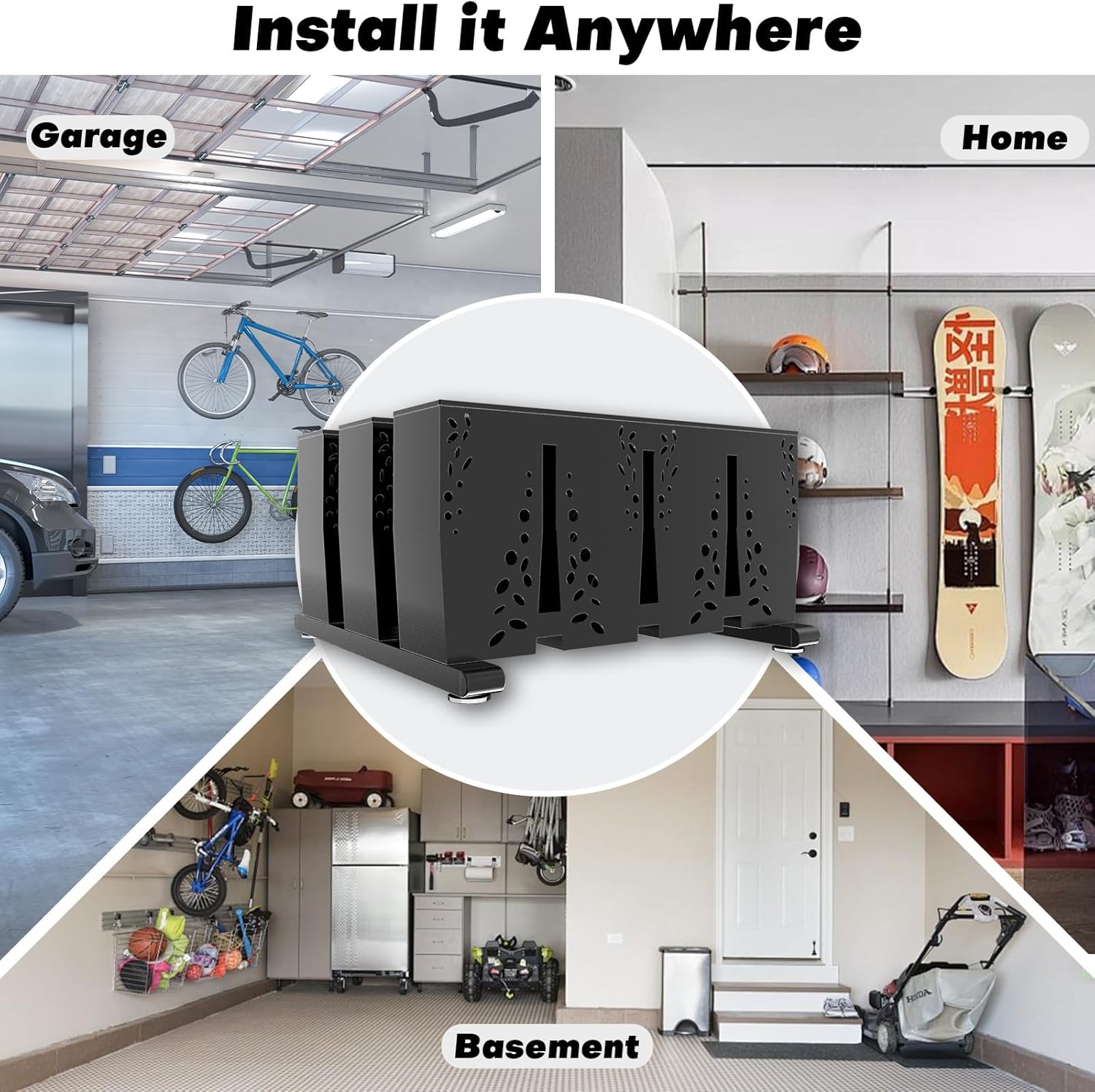 Ski Storage Rack for Garage, 8 Pair Heavy Duty Steel Freestanding Ski Storage Organizer, Indoor Ski Holder Racks for Home and Garage Storage