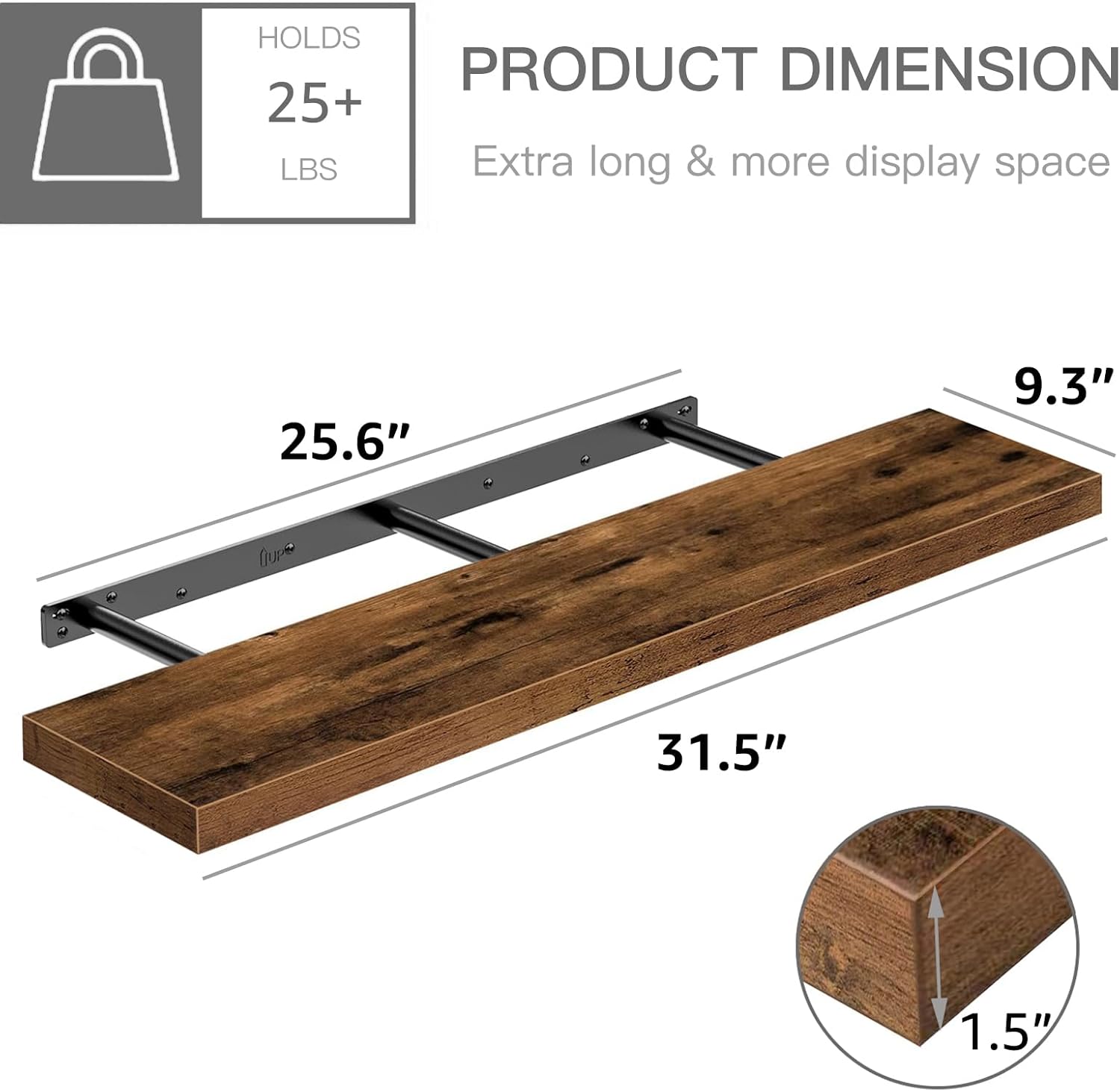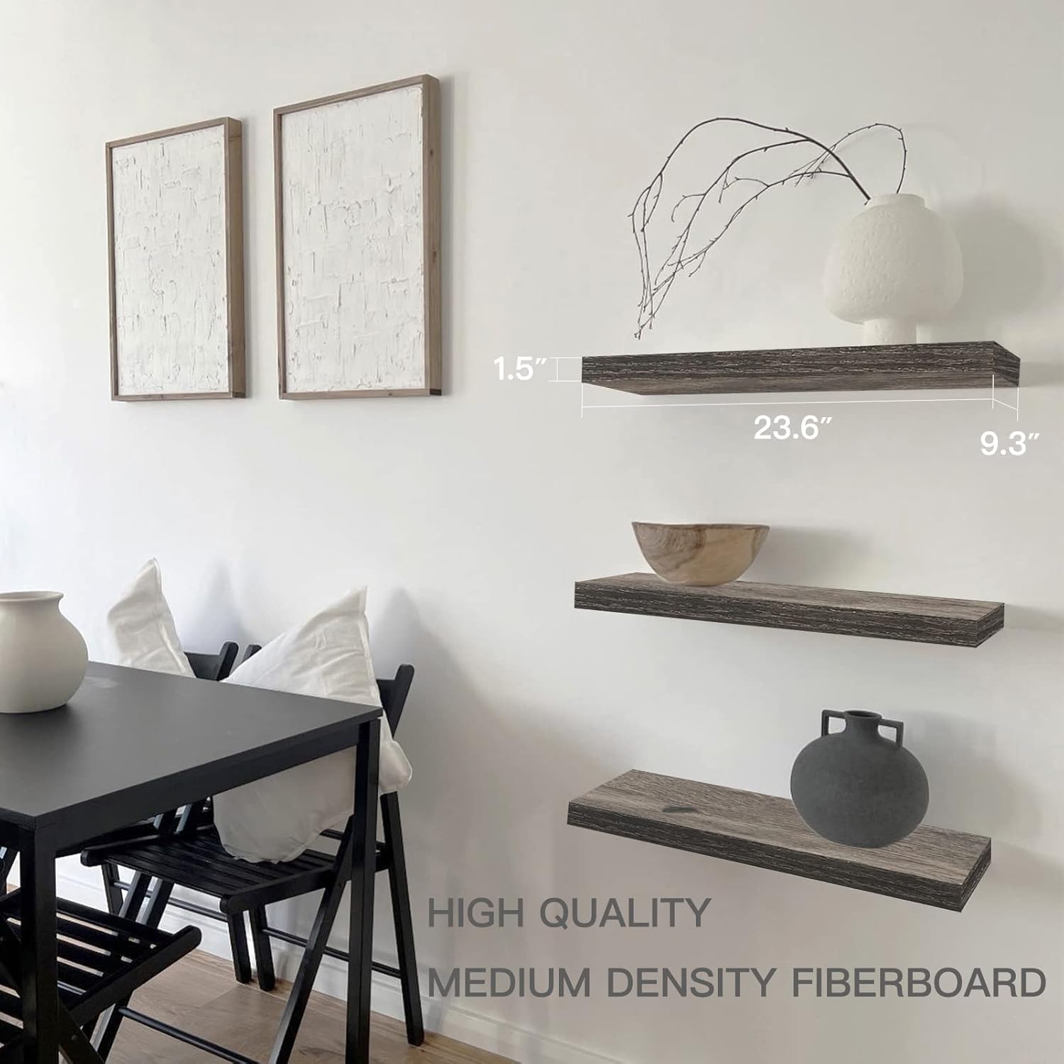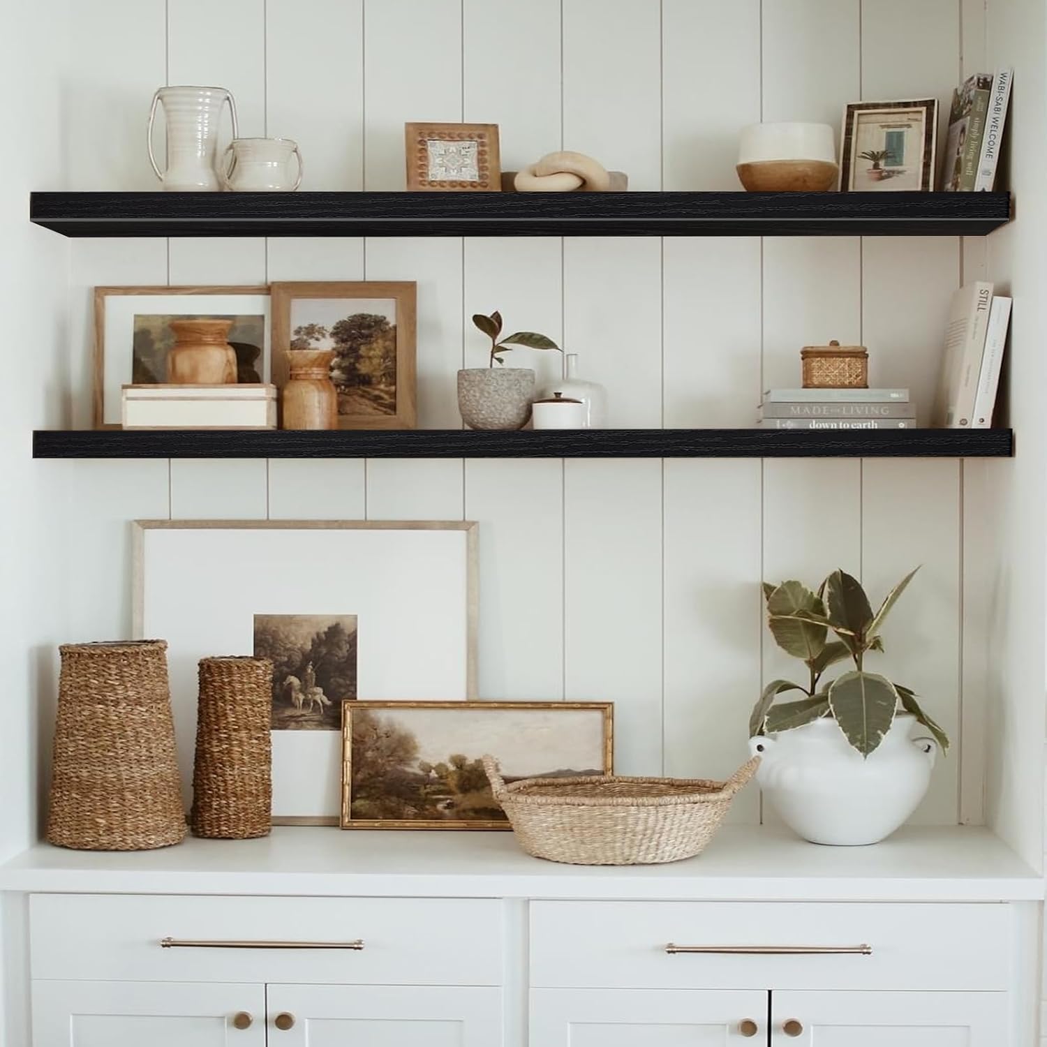 QEEIG Floating Shelves for Wall 55.1" Extra Long - Wall Mounted Shelf Bathroom Kitchen Living Room Bedroom Farmhouse Home Decor Display Bookshelf Large 55.1 x 9.3 inch Set of 2, Black (008-140B)