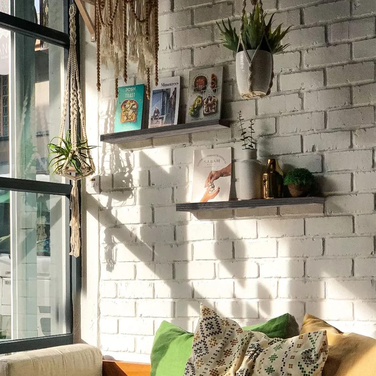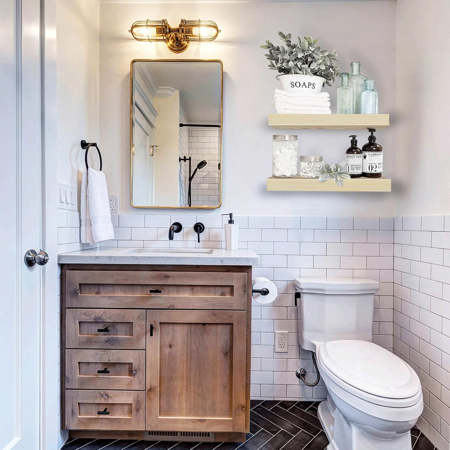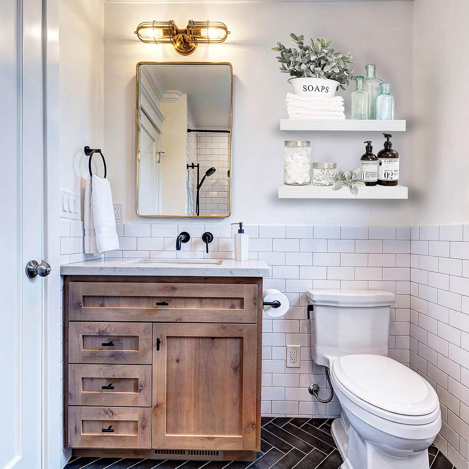 QEEIG Floating Shelves for Wall 55.1" Extra Long - Wall Mounted Shelf Bathroom Kitchen Living Room Bedroom Farmhouse Home Decor Display Bookshelf Large 55.1 x 9.3 inch Set of 2, Black (008-140B)