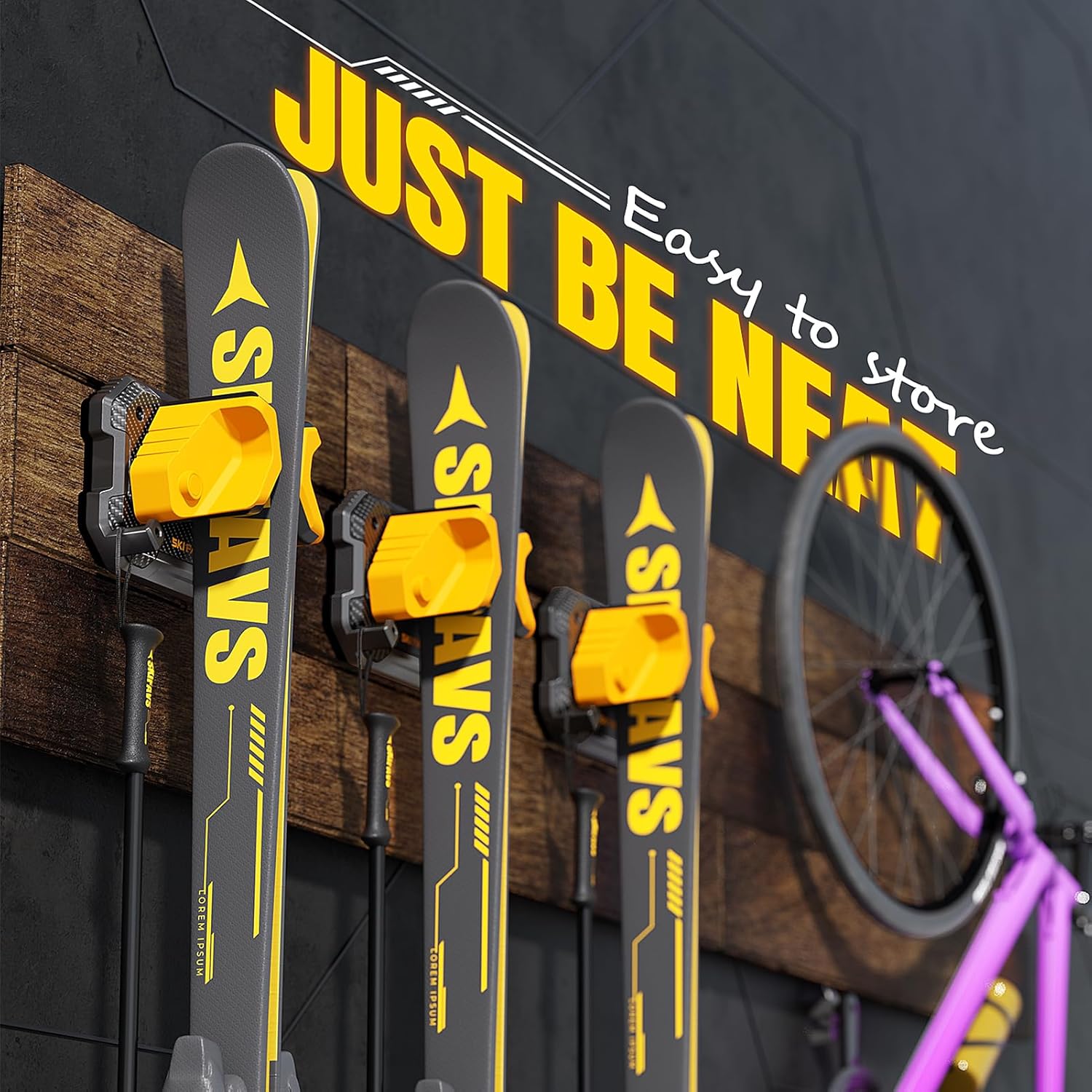 Multipurpose Skateboard Rack – Vertical Water Ski Wall Mount, Multi-Purpose Sports Gear Rack for Longboards, Paddleboards, Wakeboards & Surfboards – Watersports Storage Organizer – 46x16x14 Inches