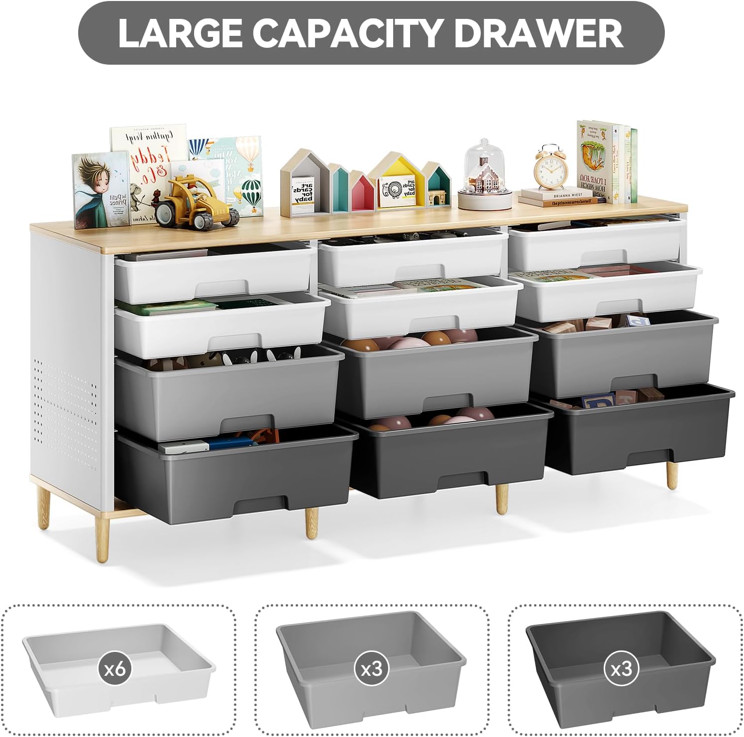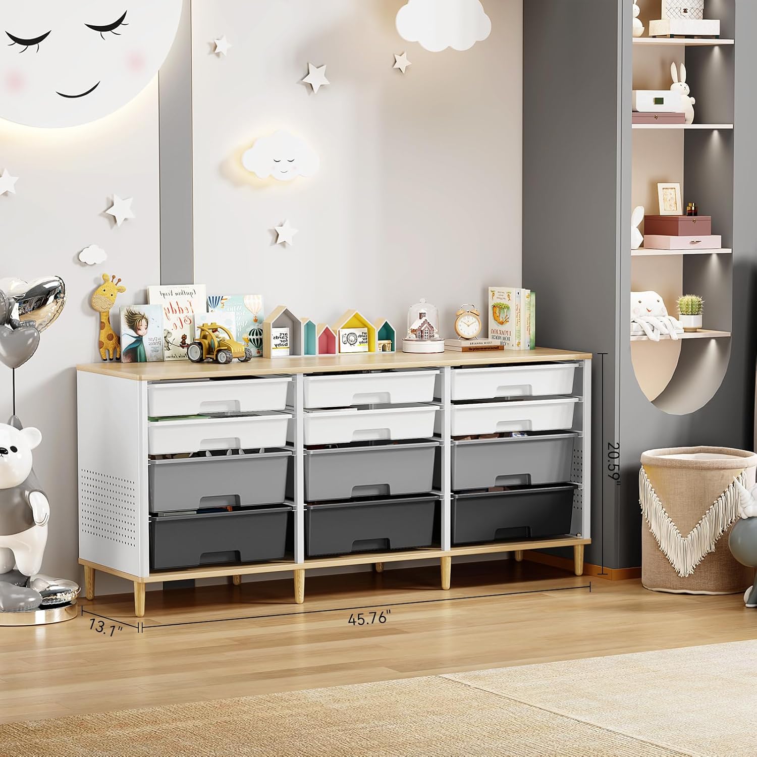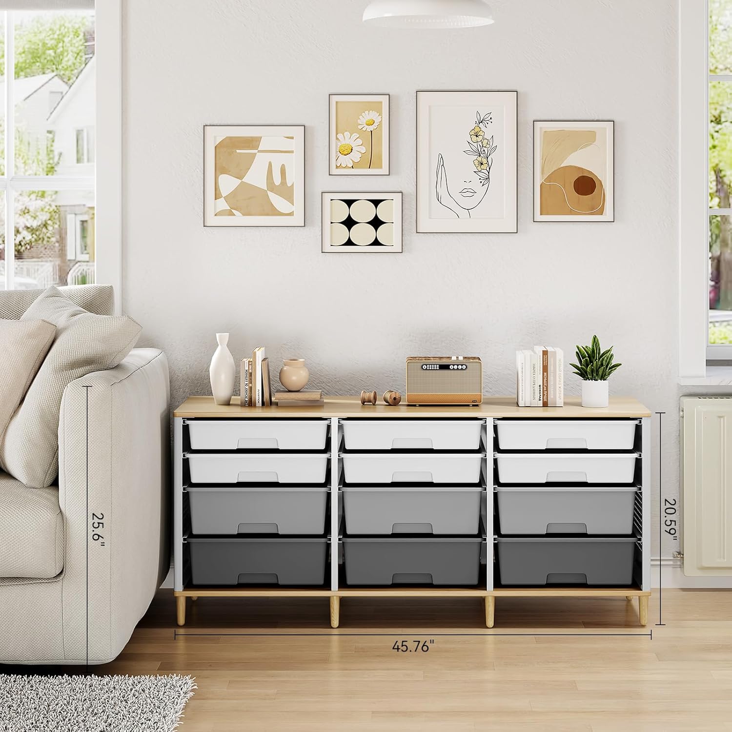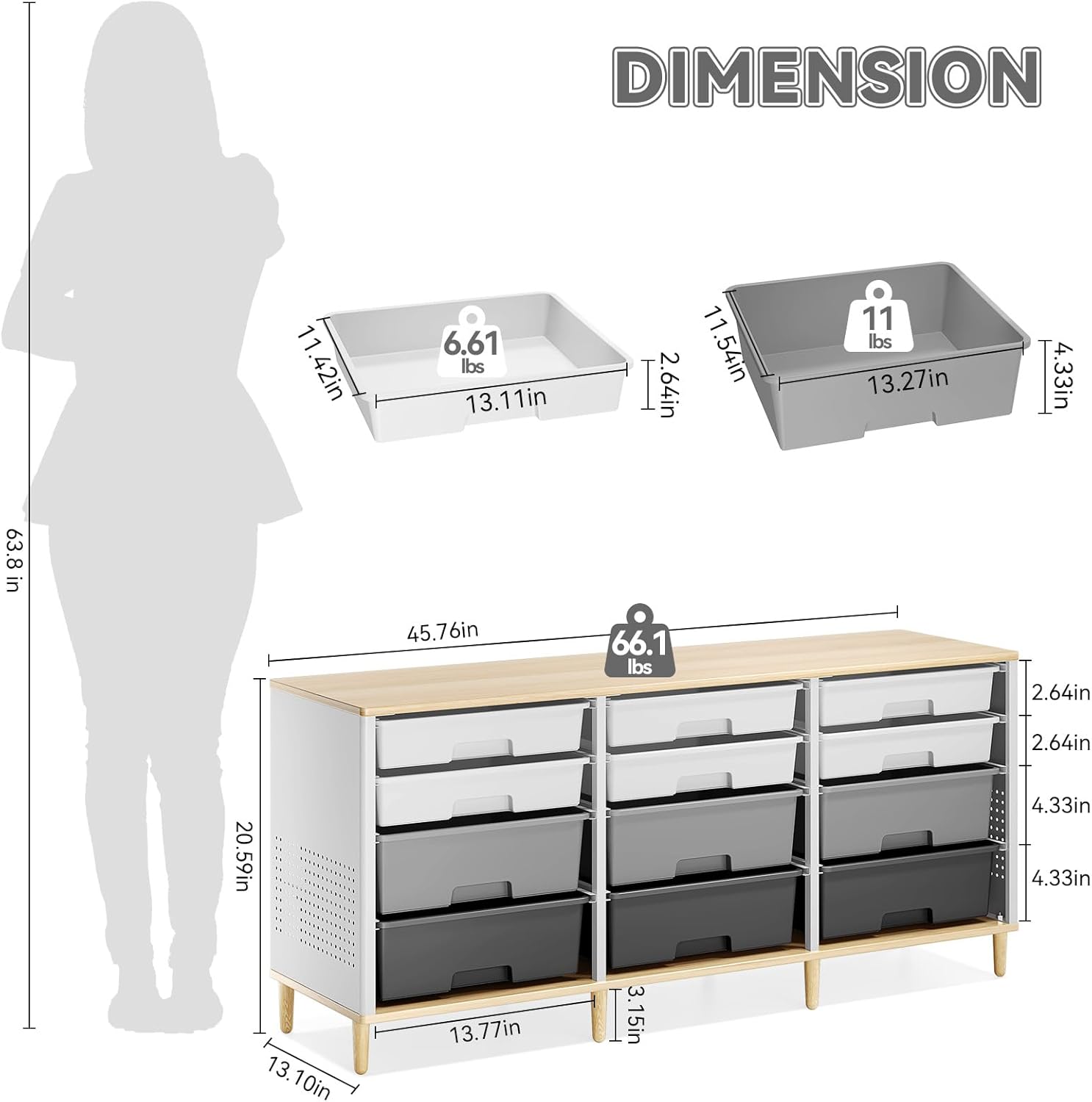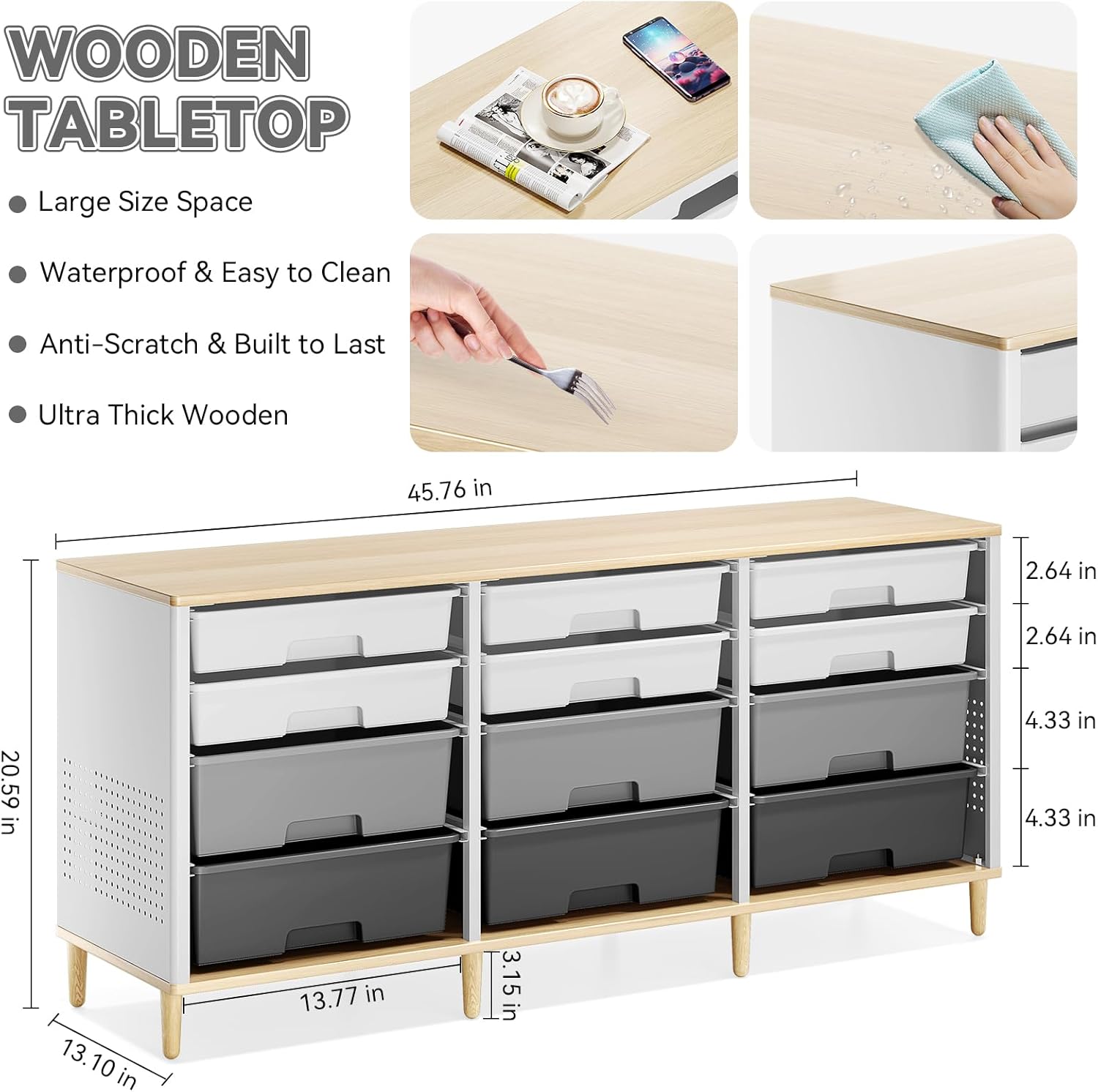 Storage Cabinet with 12 Drawers, Home Storage With Wooden Tabletop, Cube Storage Organizer for Living Room, Bedroom, Classroom, Office, Playroom, Craft Room, (Grey)