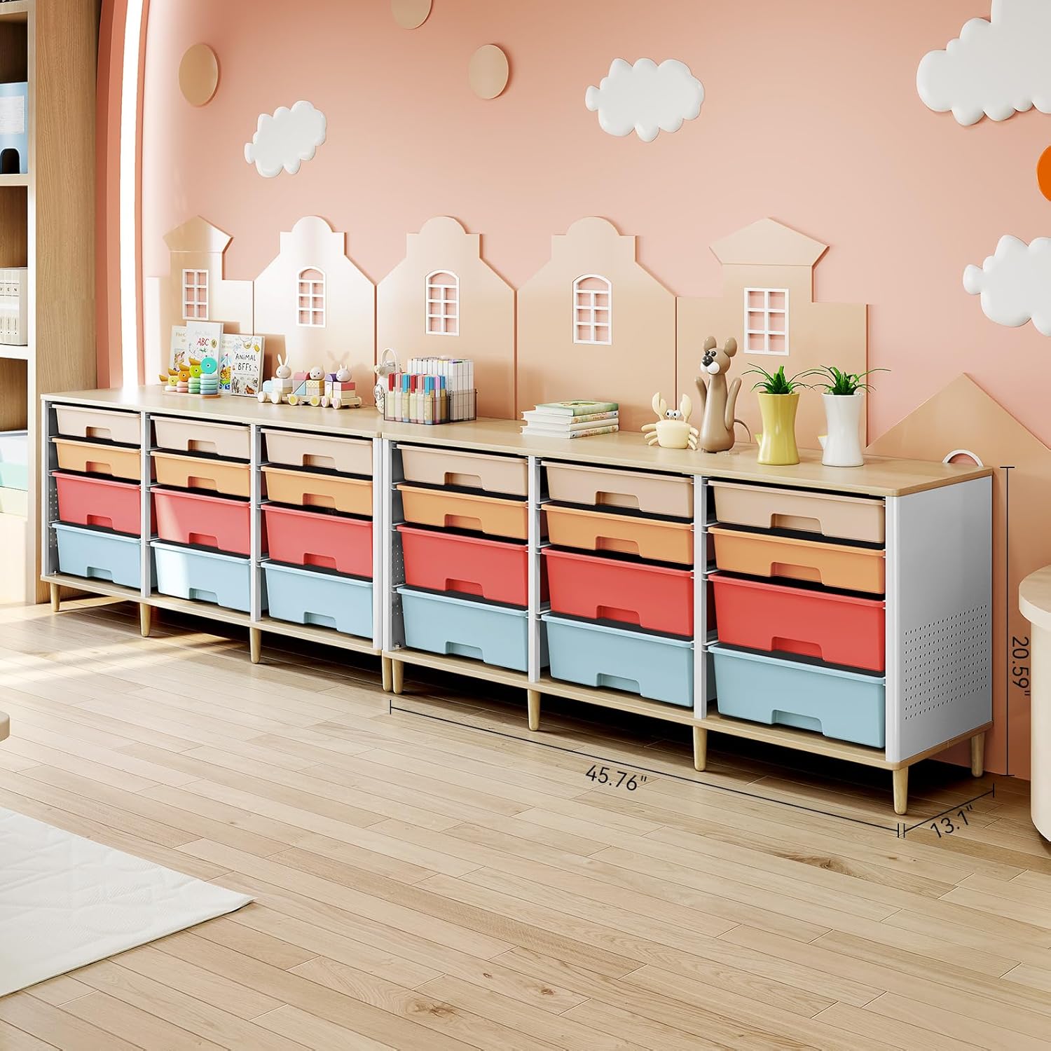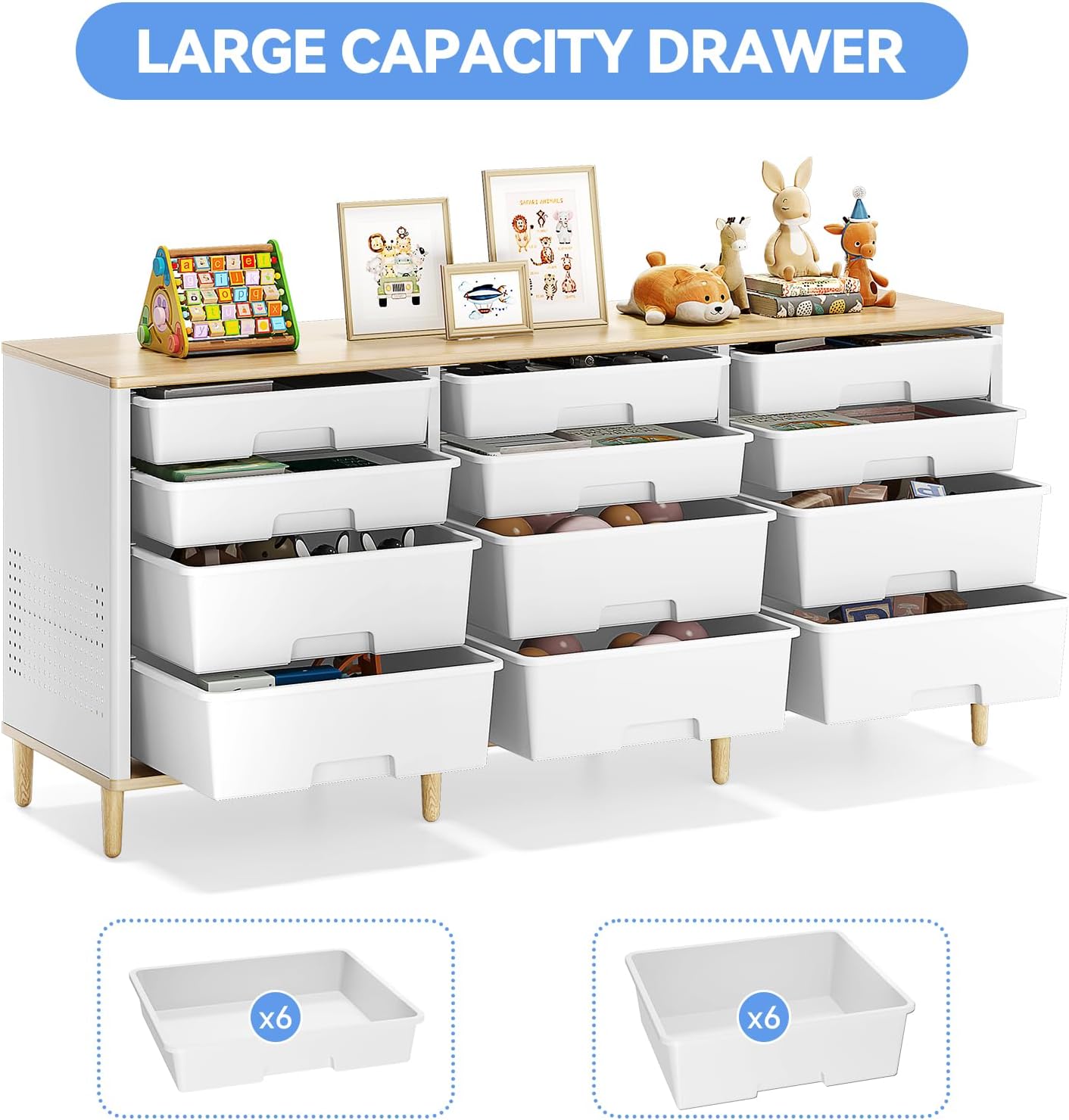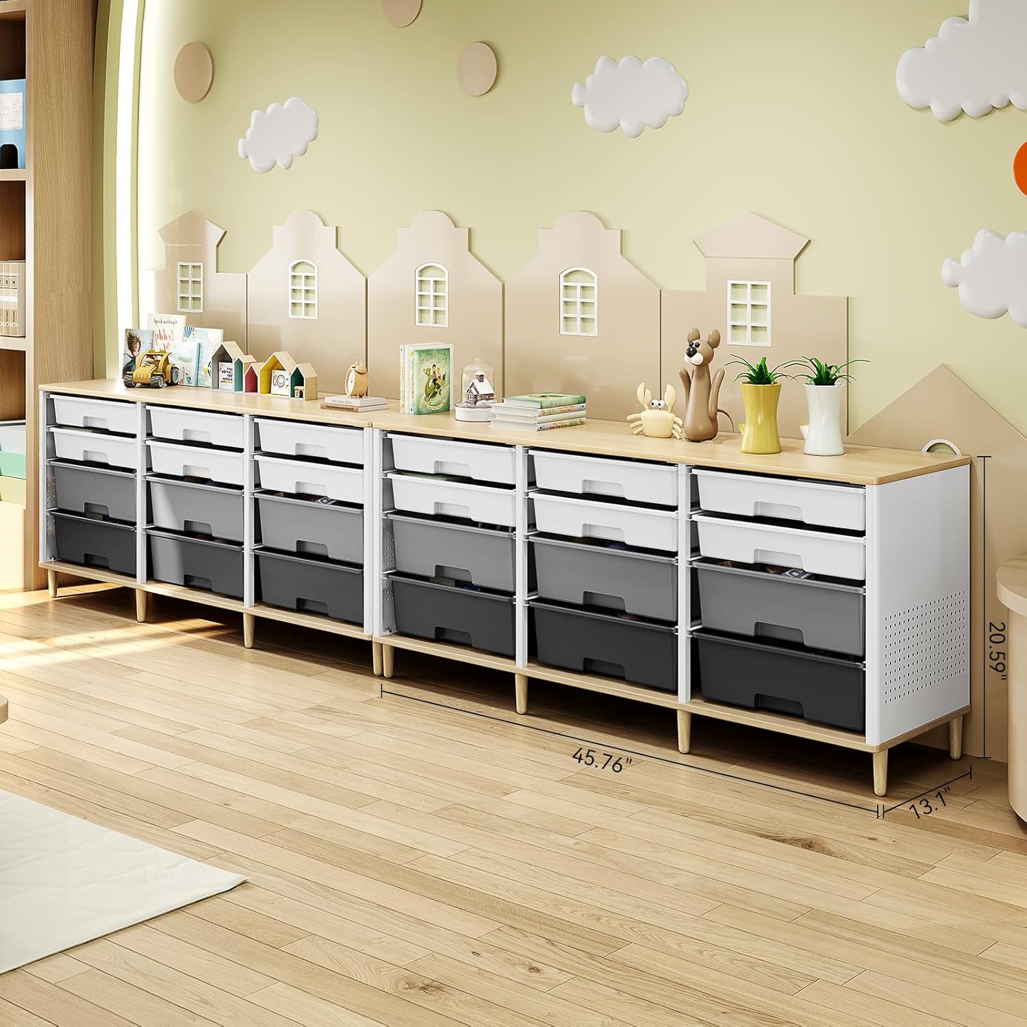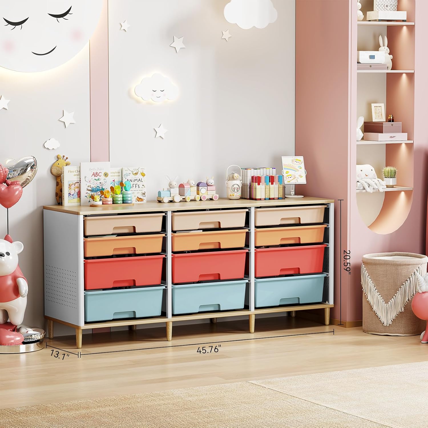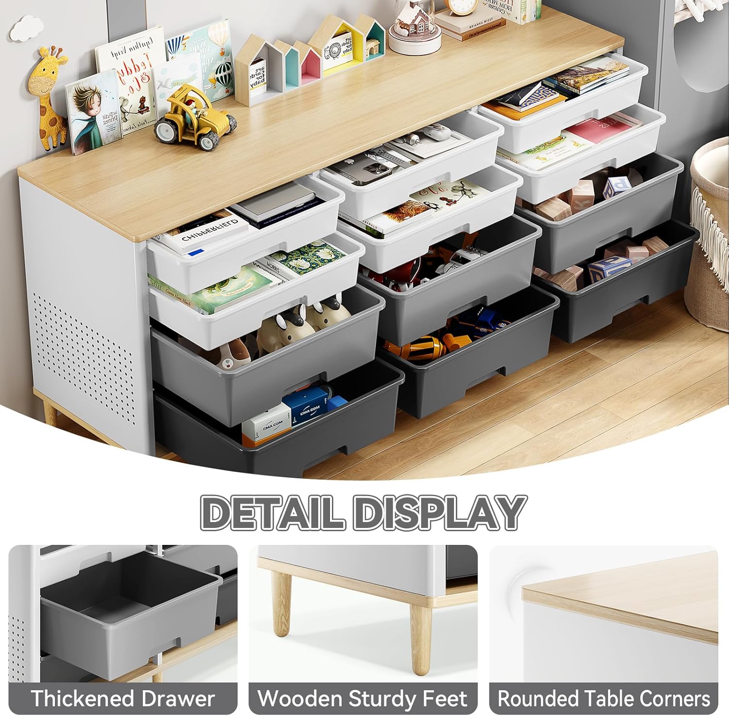 Storage Cabinet with 12 Drawers, Home Storage With Wooden Tabletop, Cube Storage Organizer for Living Room, Bedroom, Classroom, Office, Playroom, Craft Room, (Grey)