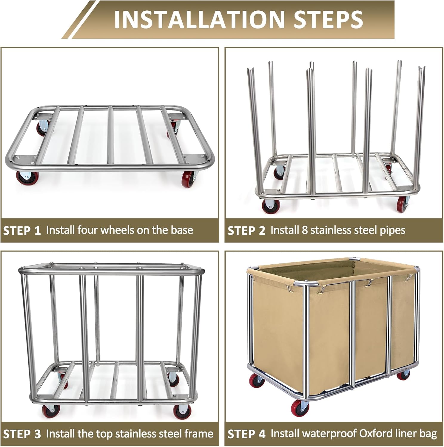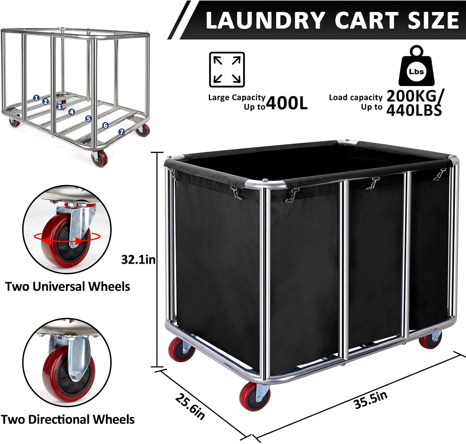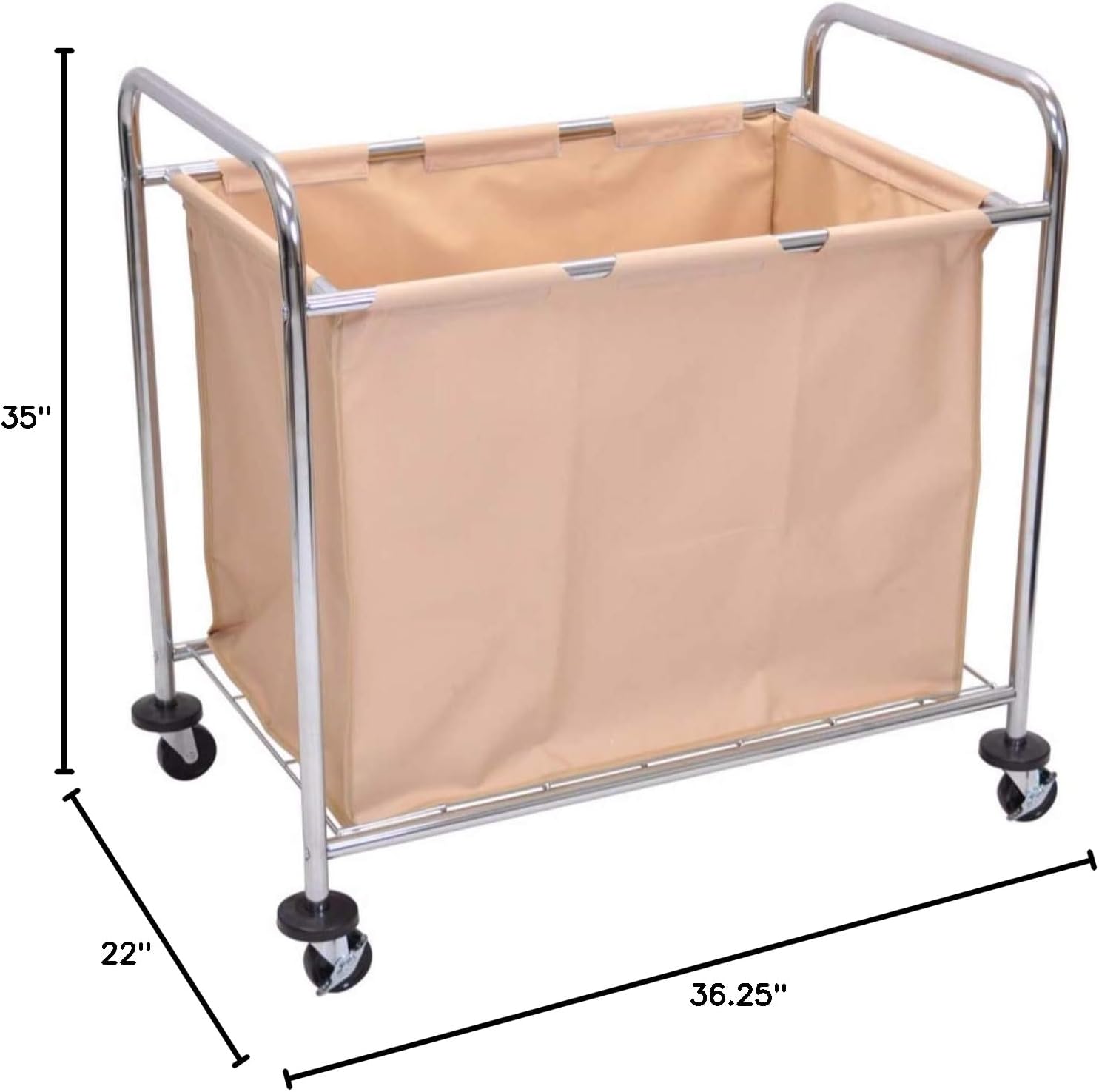 Commercial Laundry Cart with Wheels,Commercial Laundry Basket 11.35 Bushel(400L),Industrial Laundry Cart with Stainless Steel Frame and Oxford Cloth,440LB Load(Beige)