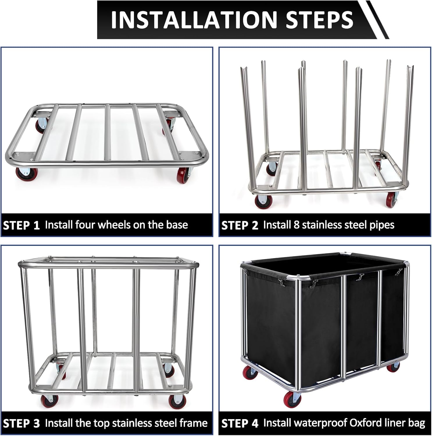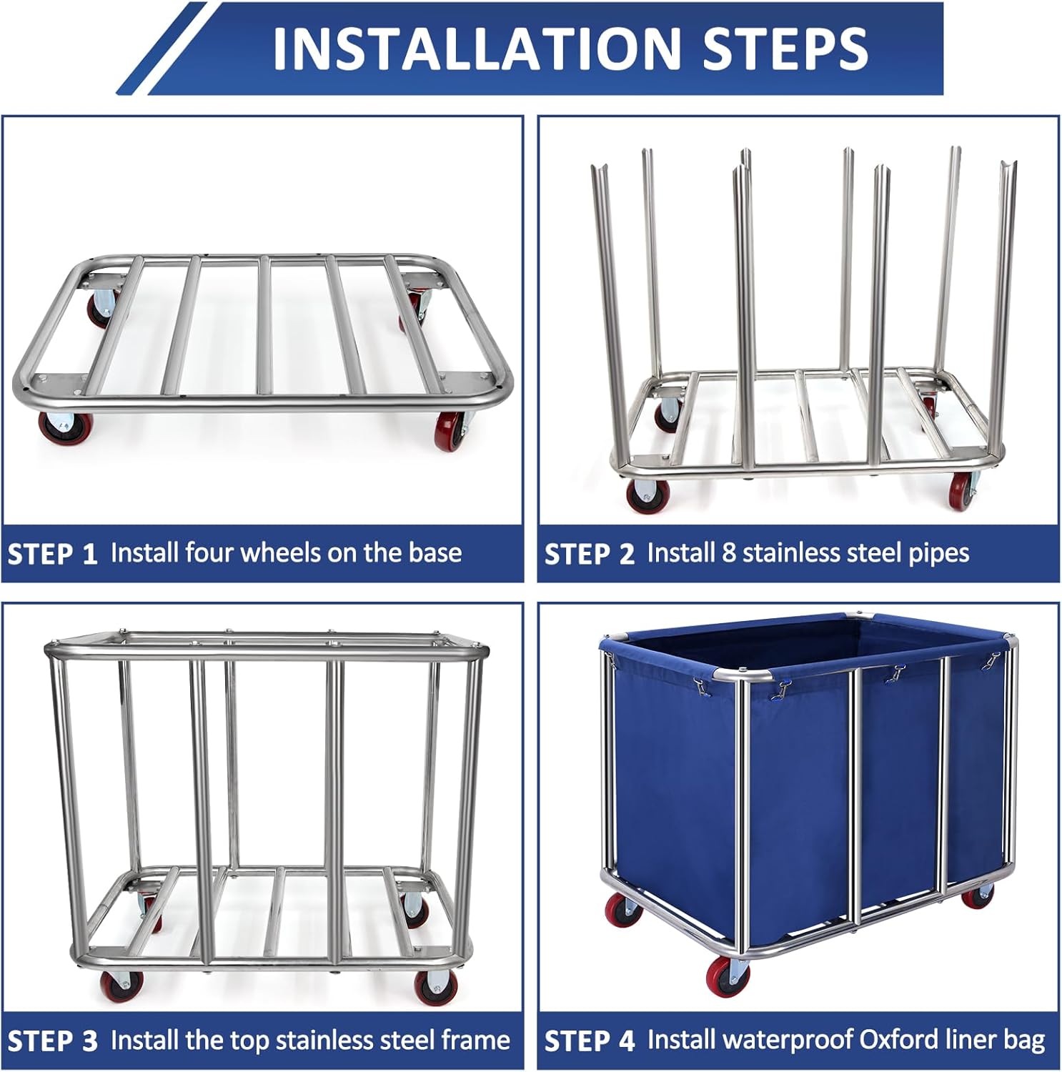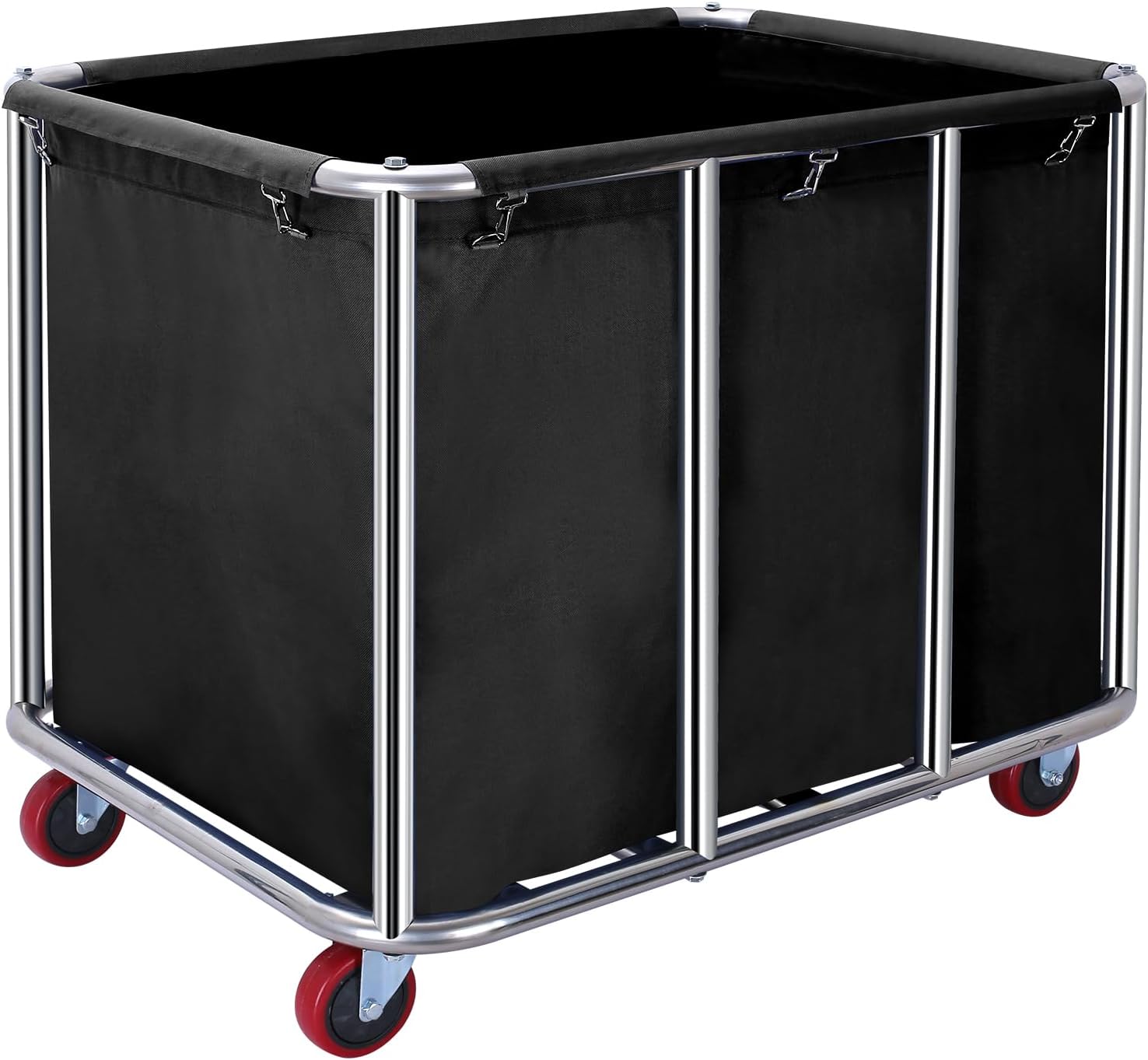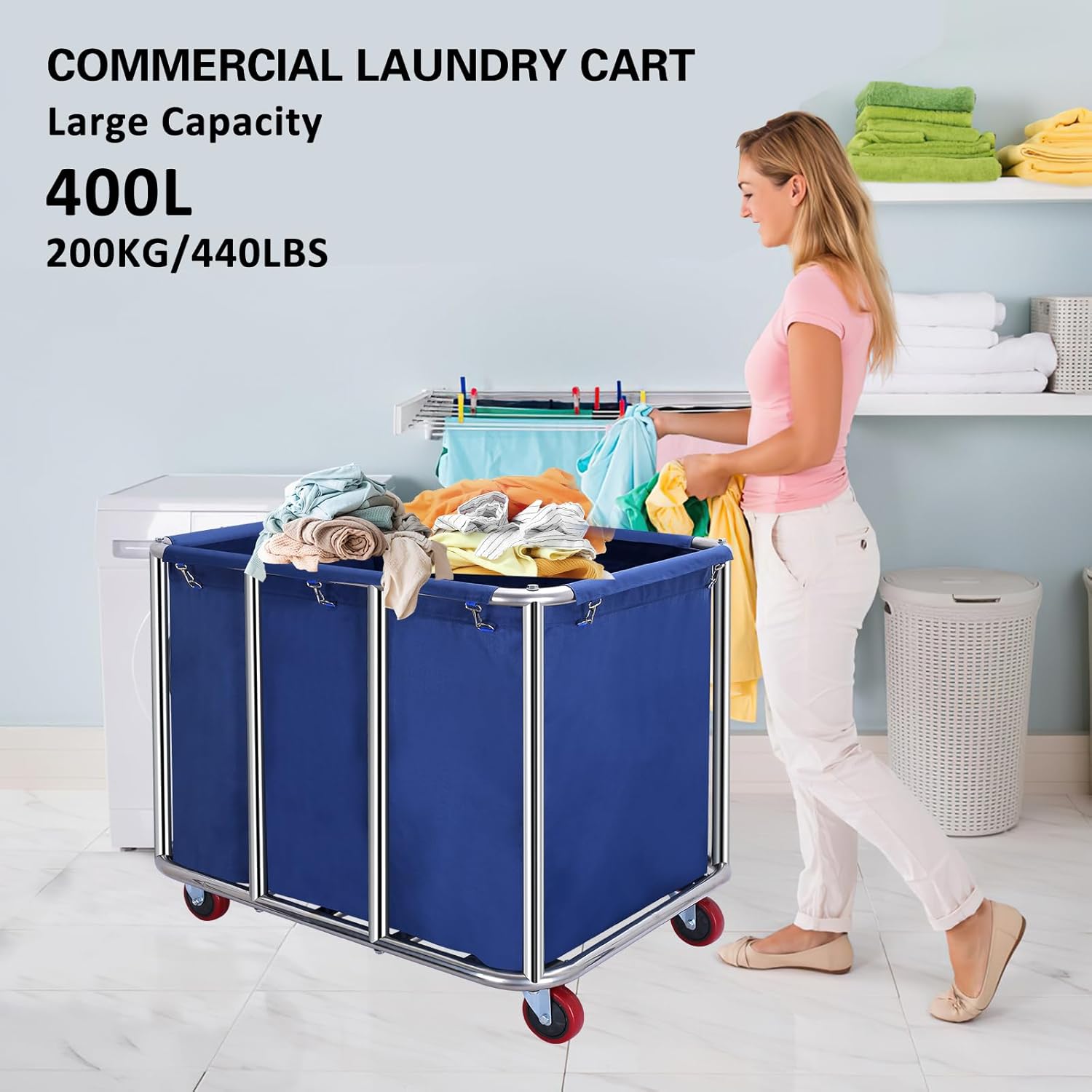 Commercial Laundry Cart with Wheels,Commercial Laundry Basket 11.35 Bushel(400L),Industrial Laundry Cart with Stainless Steel Frame and Oxford Cloth,440LB Load(Beige)