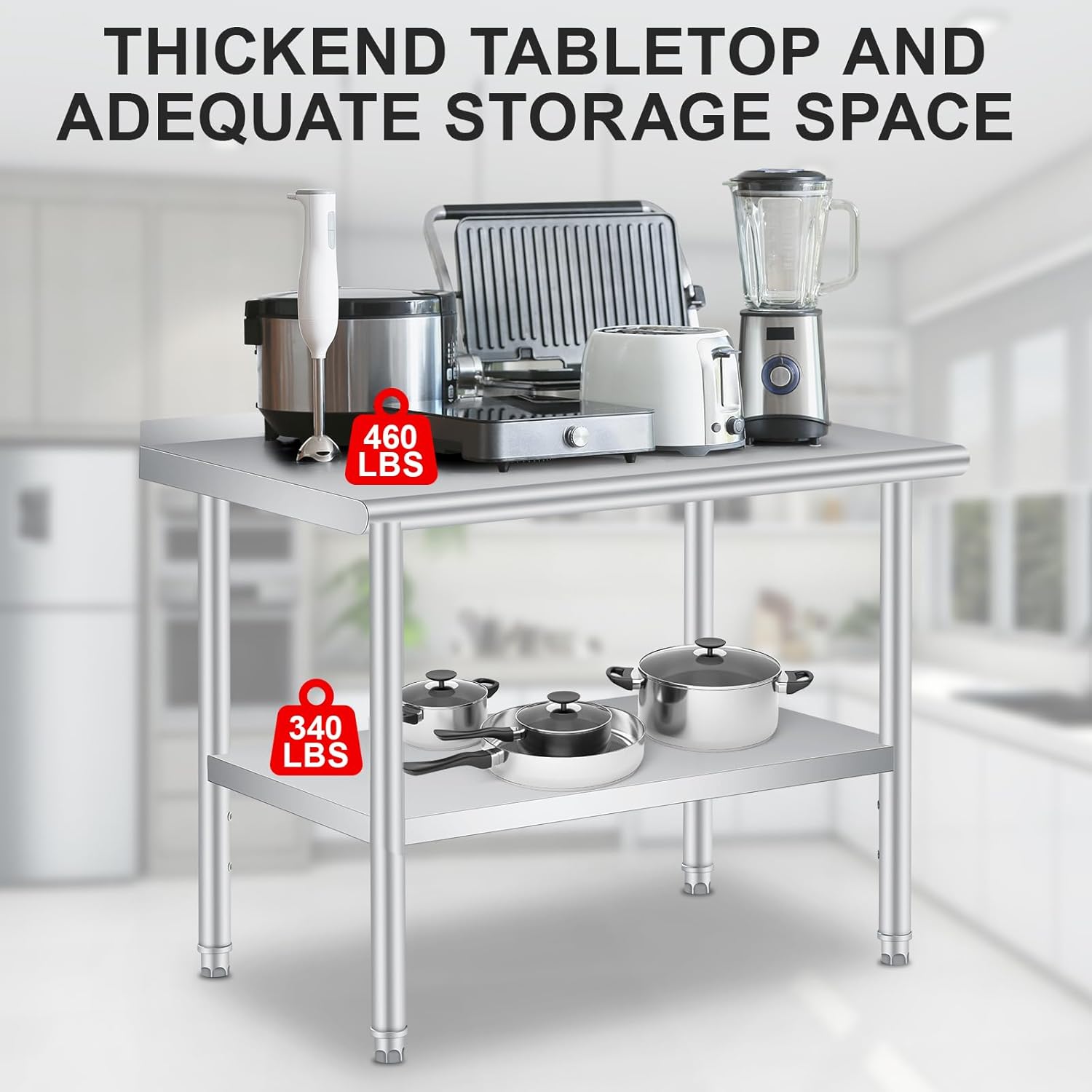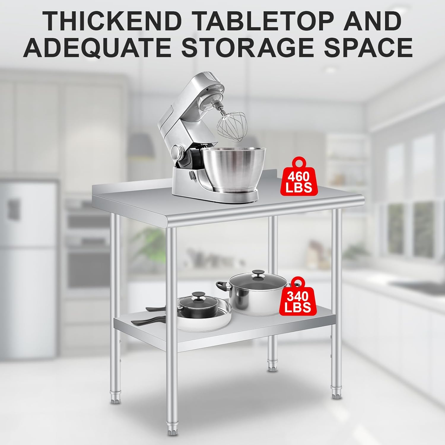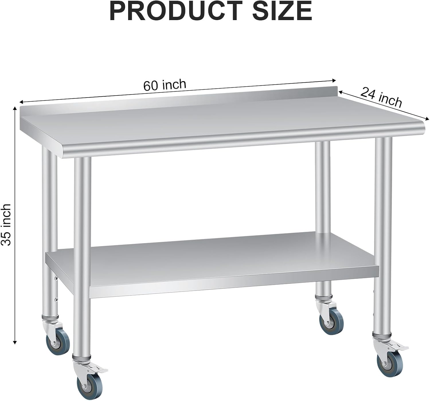 Stainless Steel Prep Table, 48 x 24 in, with Backsplash, Adjustable Undershelf, Commercial Heavy Duty Table with Adjustable Under Shelf for Outdoor Use,Restaurants,Hotels,Works