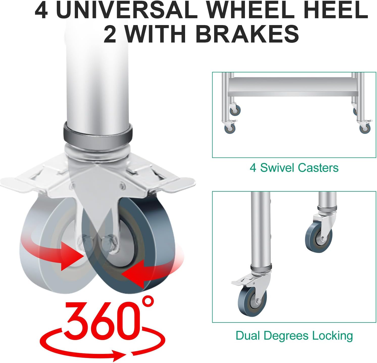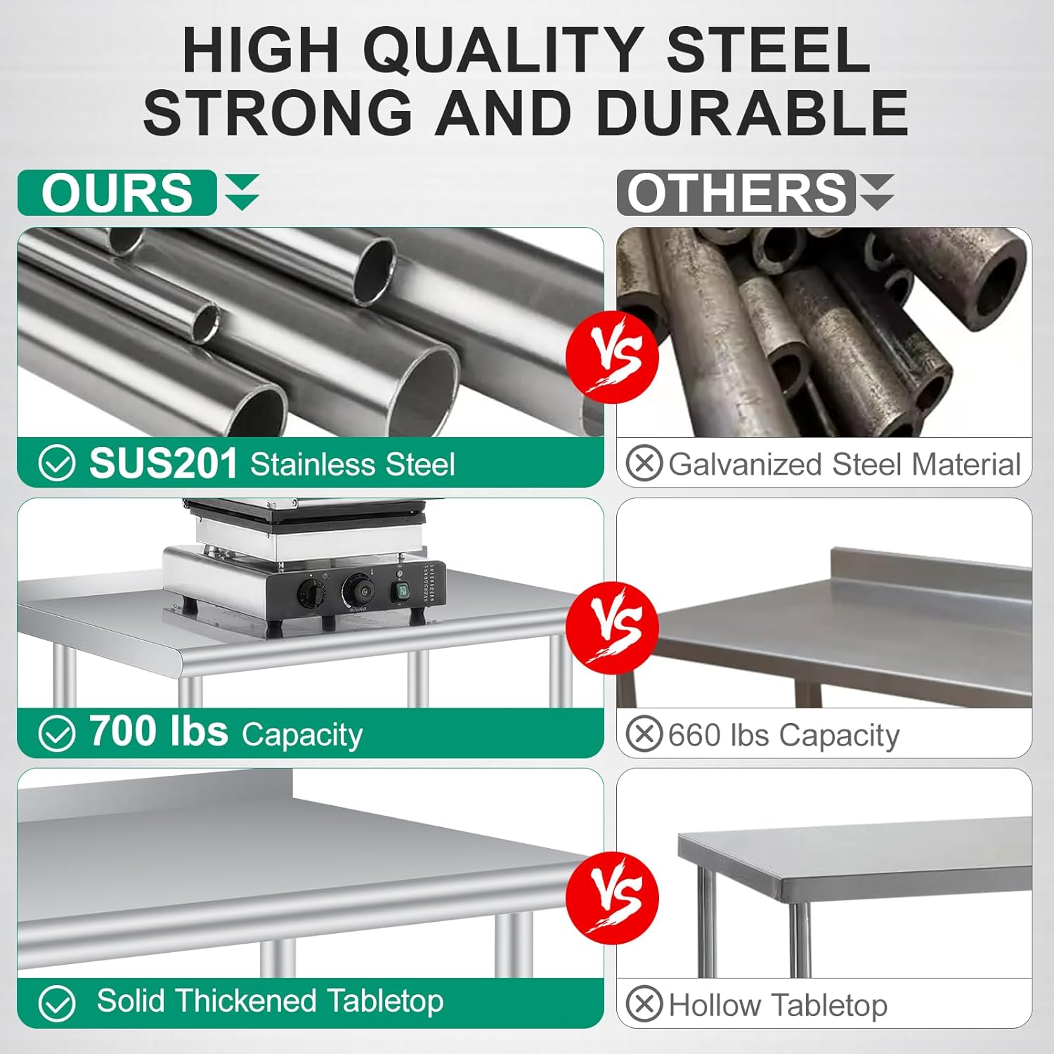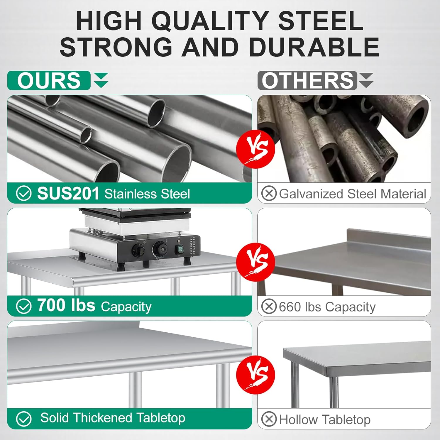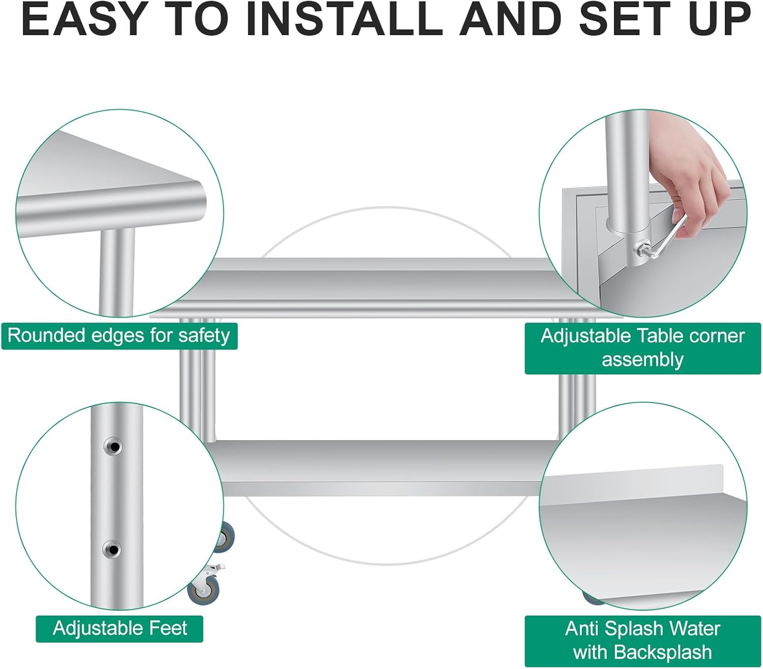 Stainless Steel Prep Table, 48 x 24 in, with Backsplash, Adjustable Undershelf, Commercial Heavy Duty Table with Adjustable Under Shelf for Outdoor Use,Restaurants,Hotels,Works