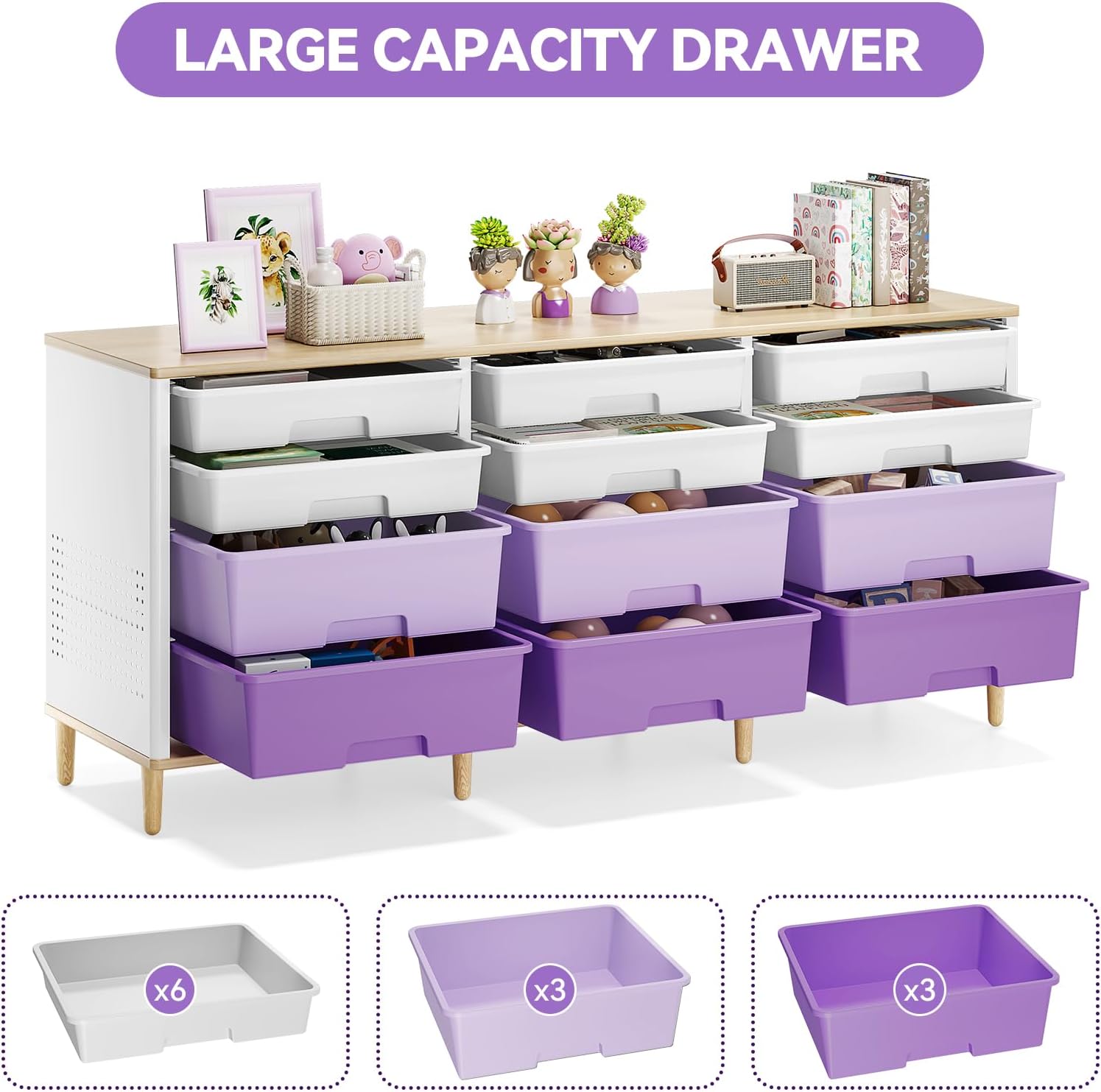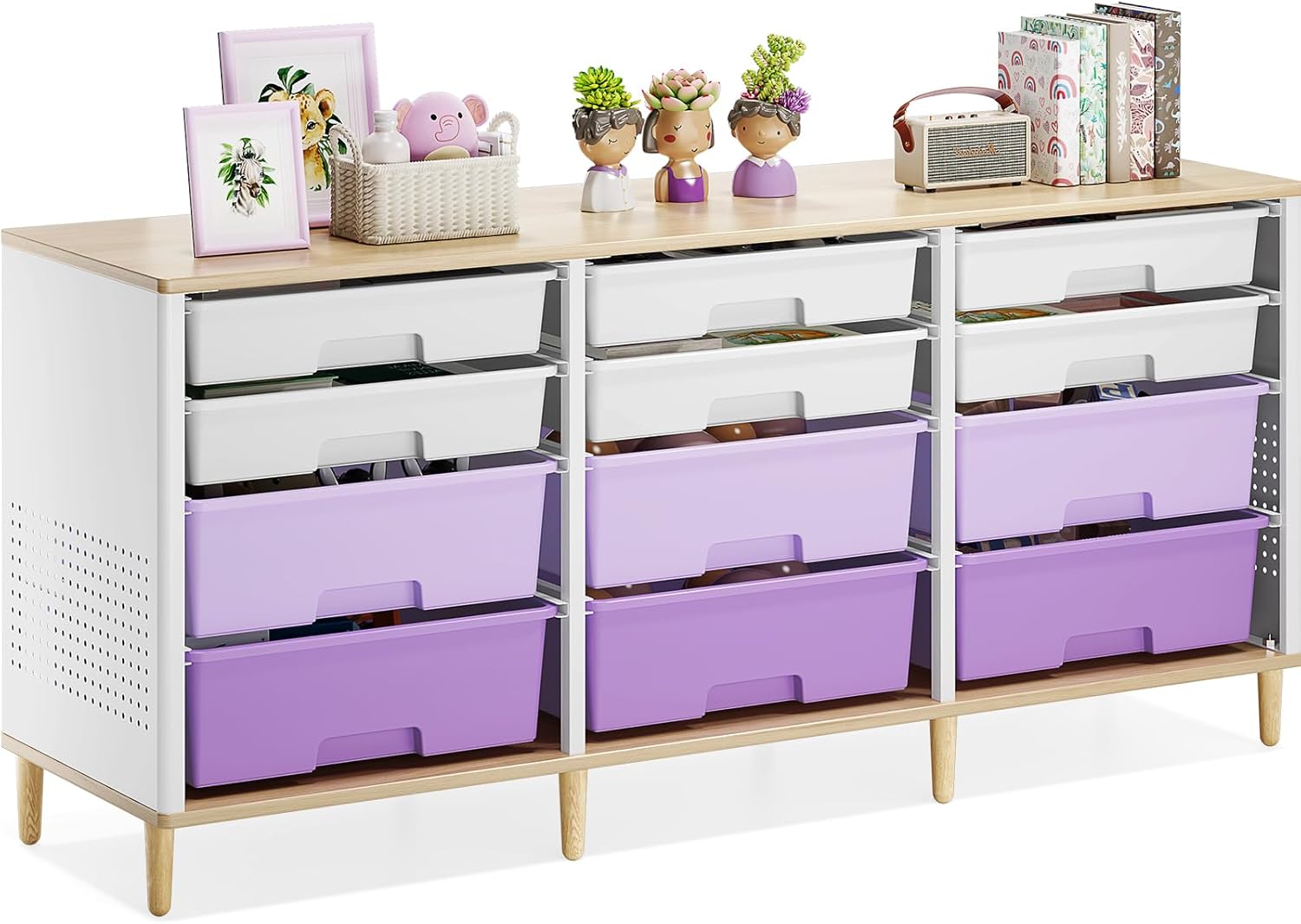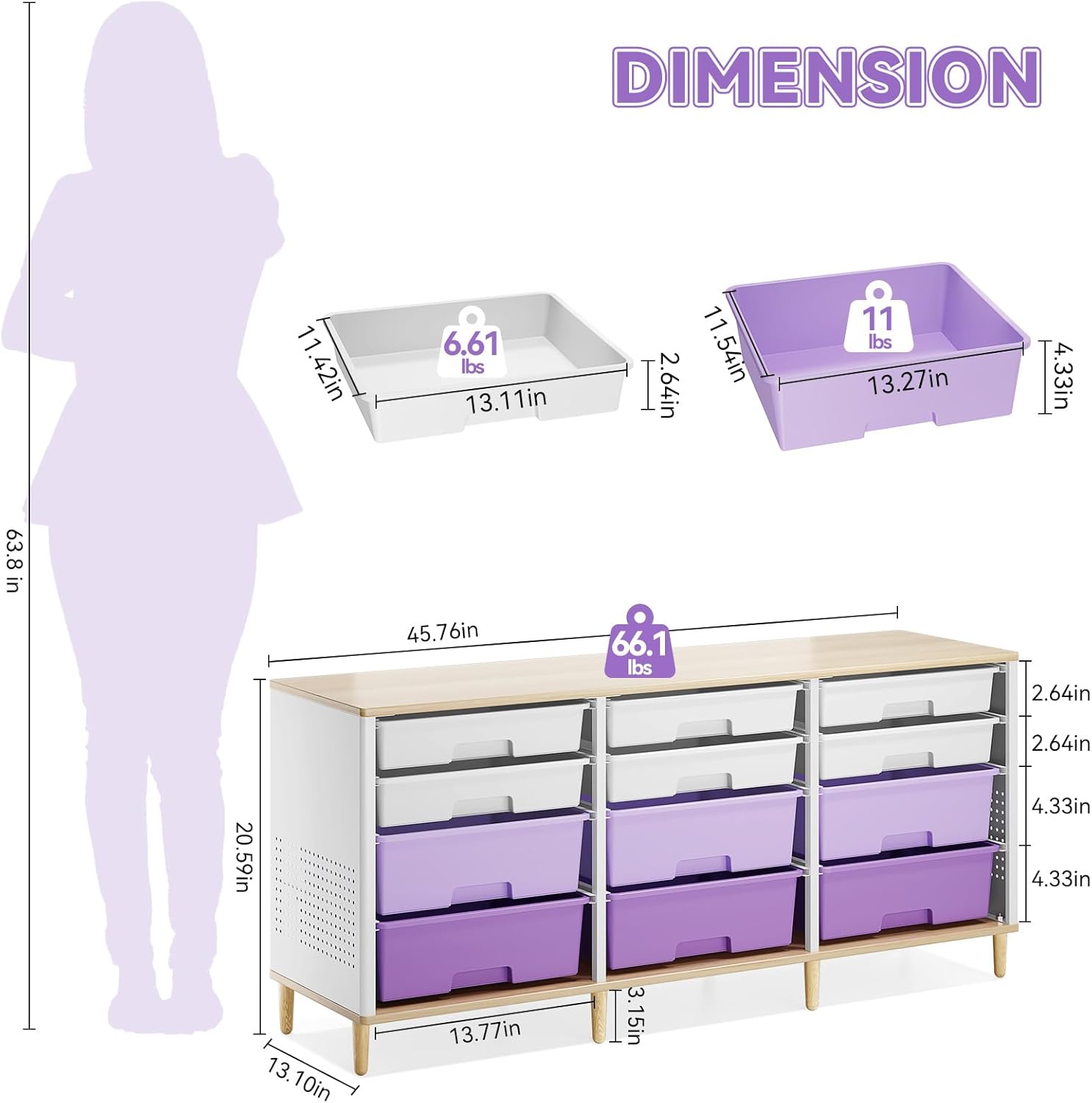 Storage Cabinet with 12 Drawers, Home Storage With Wooden Tabletop, Cube Storage Organizer for Living Room, Bedroom, Classroom, Office, Playroom, Craft Room, (Purple)