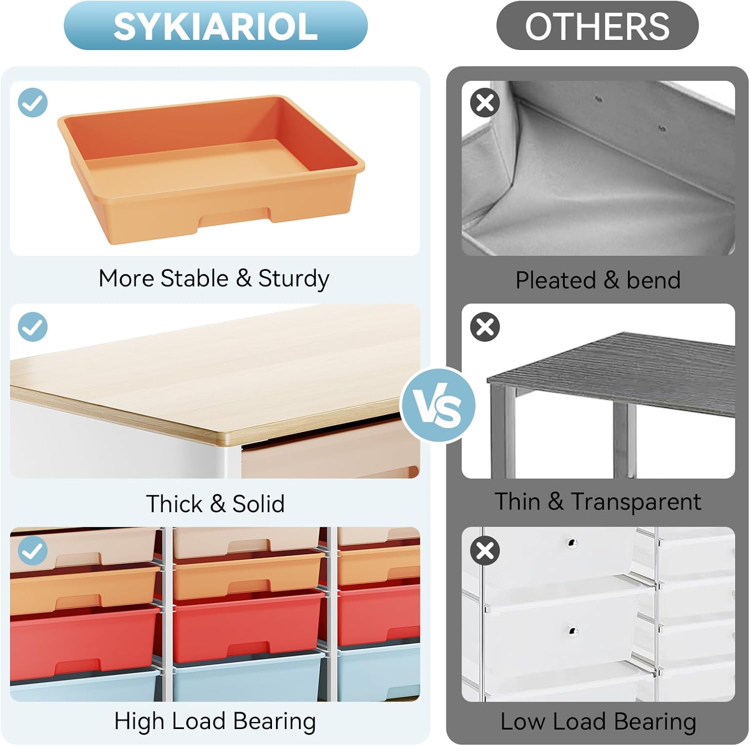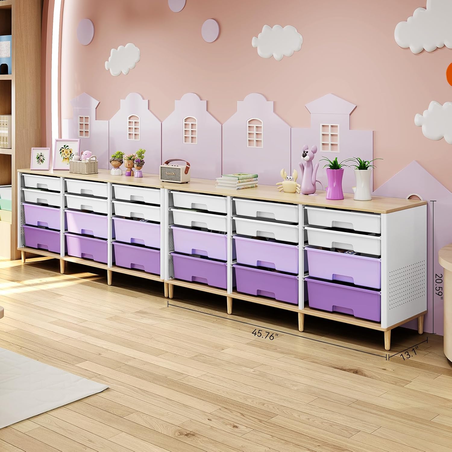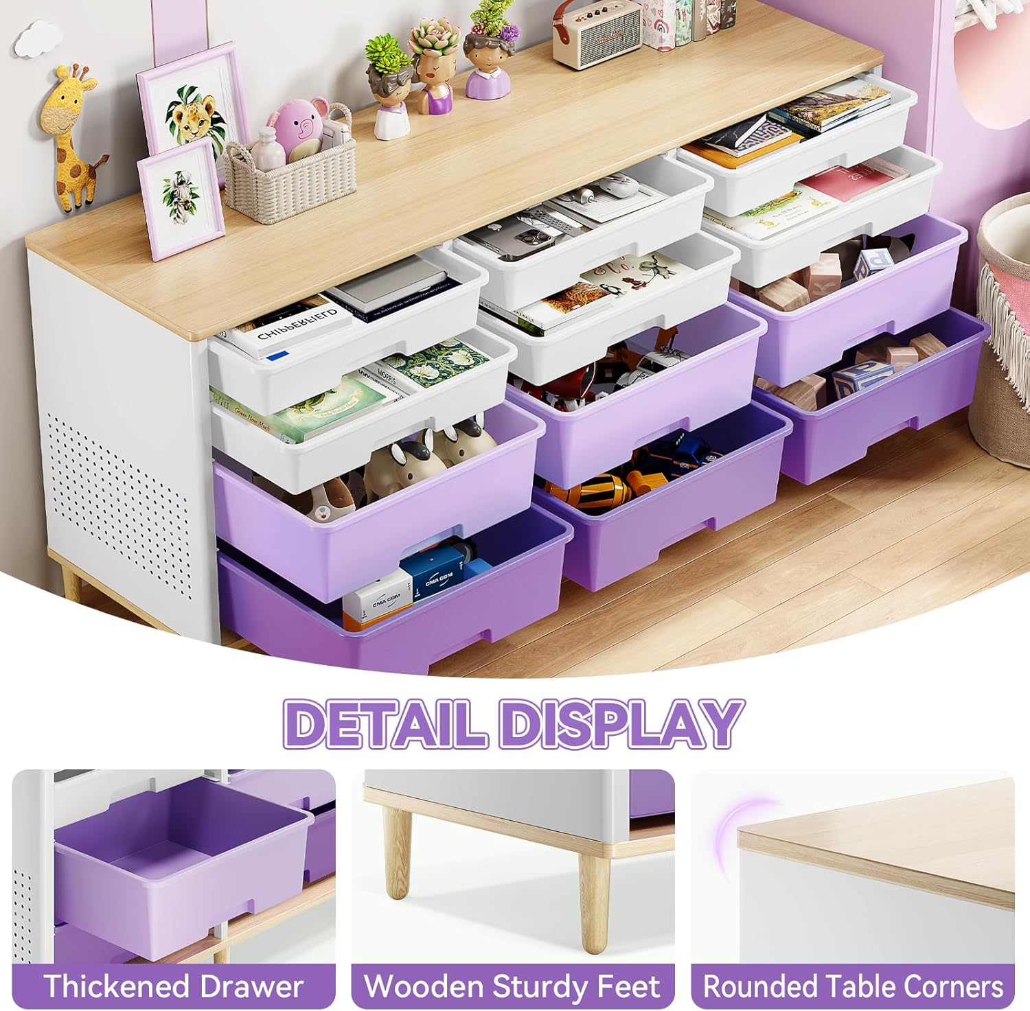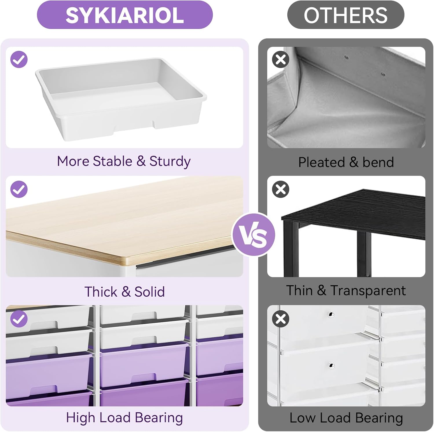Storage Cabinet with 12 Drawers, Home Storage With Wooden Tabletop, Cube Storage Organizer for Living Room, Bedroom, Classroom, Office, Playroom, Craft Room, (Purple)