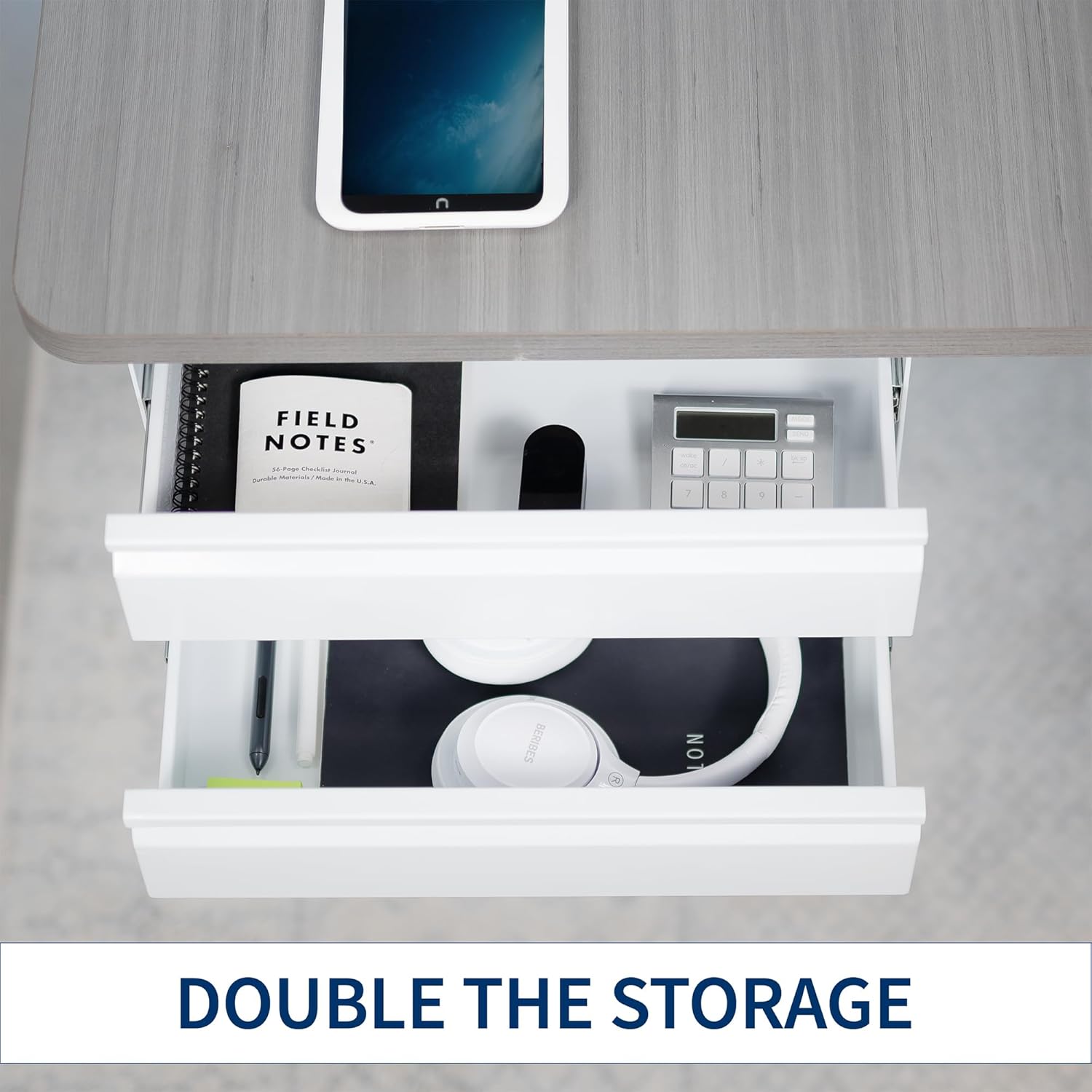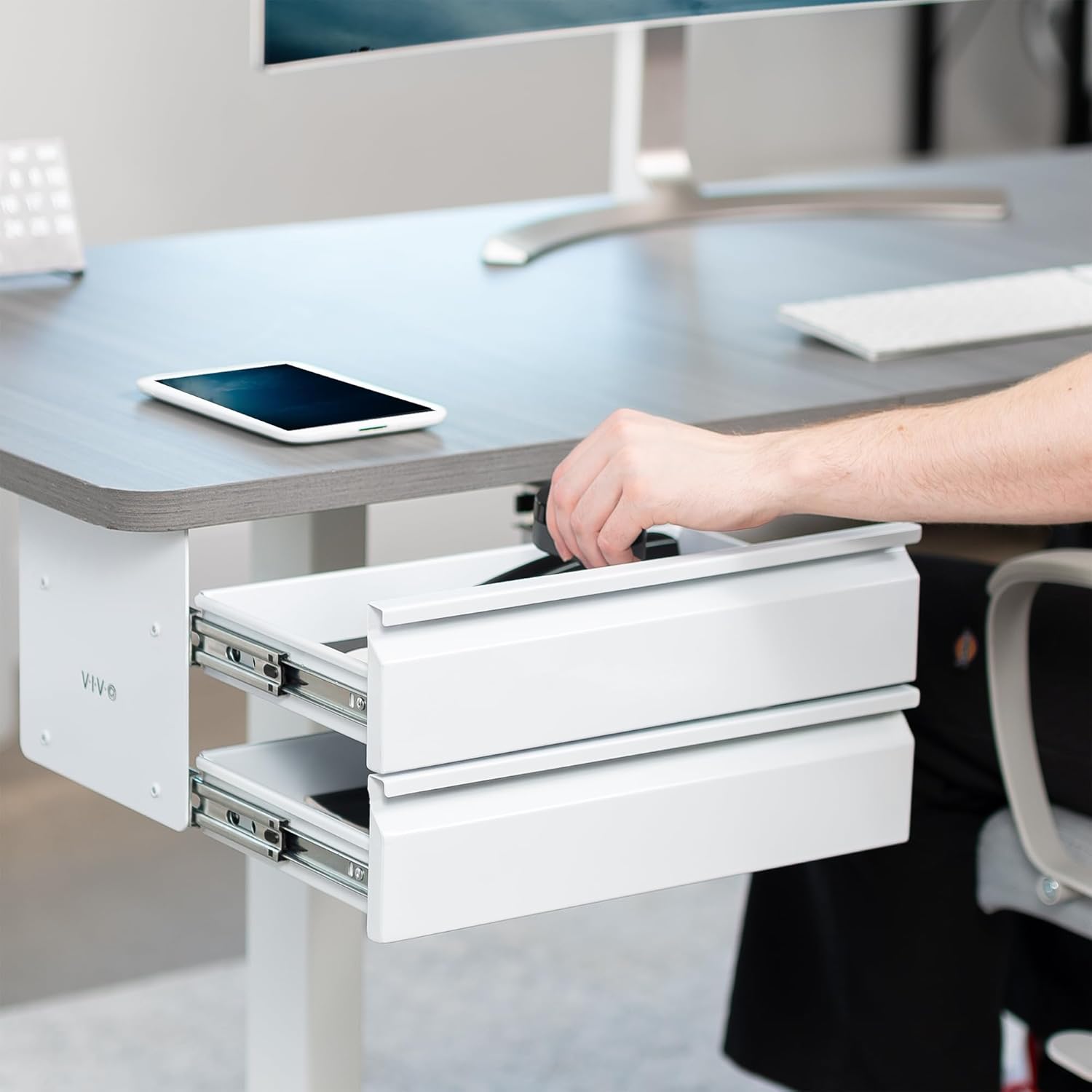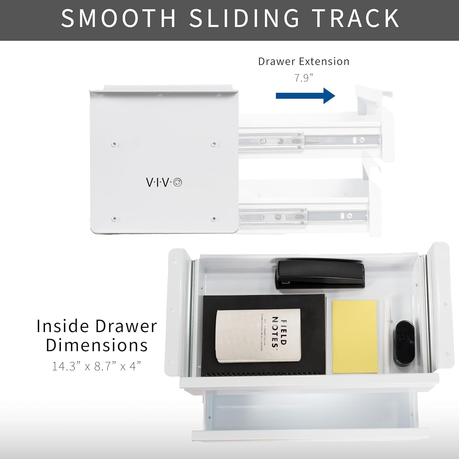 VIVO 16 inch Slide Out Dual Tier Desk Drawer, Under Desk 2 Layer Storage, White, DESK-DR02W