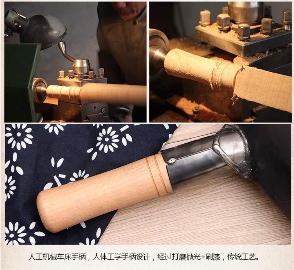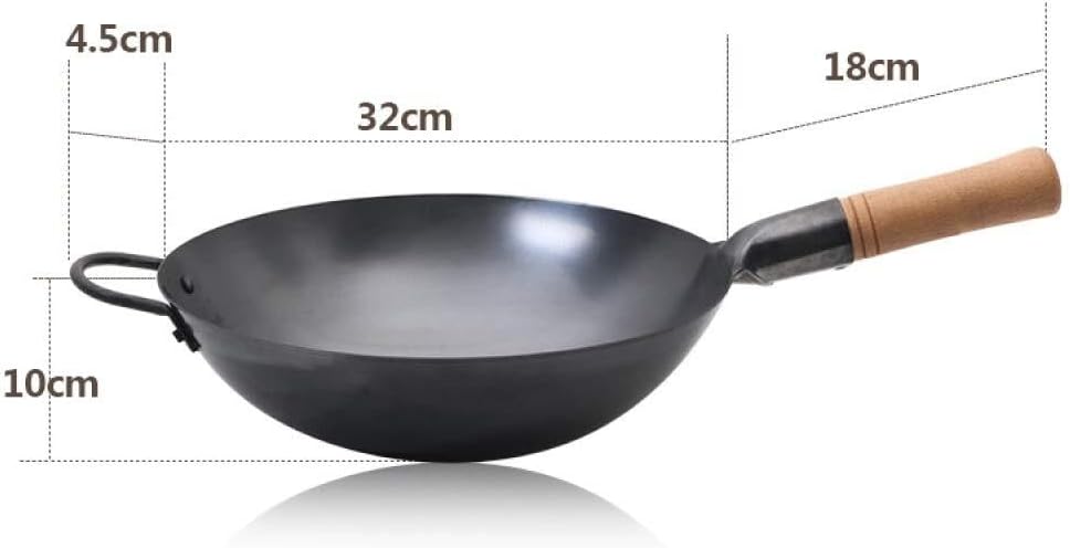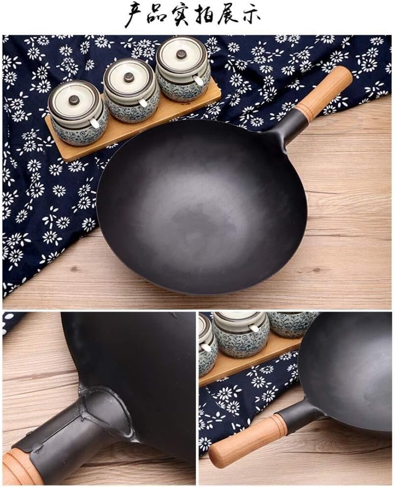 Handmade Forged Iron Wok – Traditional Round Bottom Non-Coated Frying Pan, Non-Stick Carbon Steel Wok for Gas Stoves, Wooden Handle-40cm