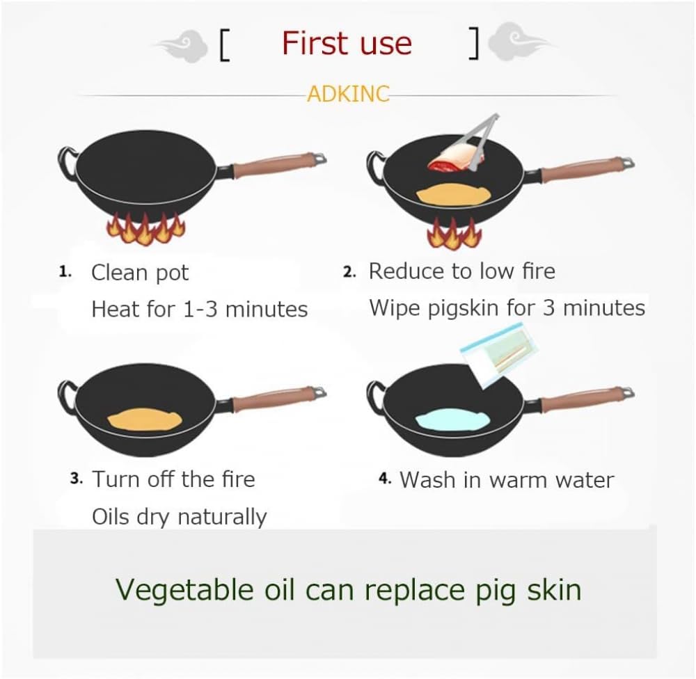 12 Inch Traditional Hand Hammered Cast Iron Wok, Chef's Pot with Cover and Wooden Shovel-30Cm-One Color-32cm