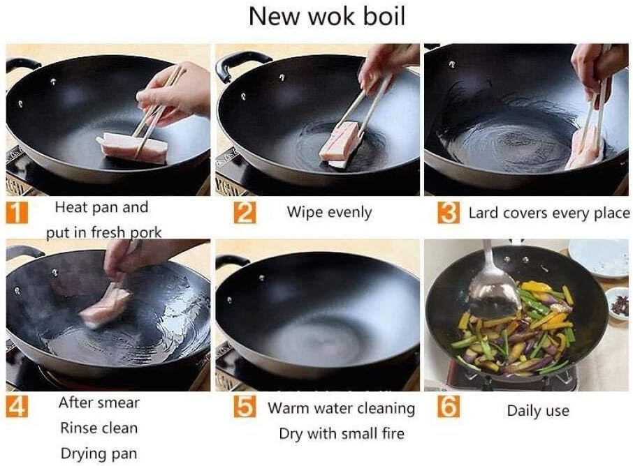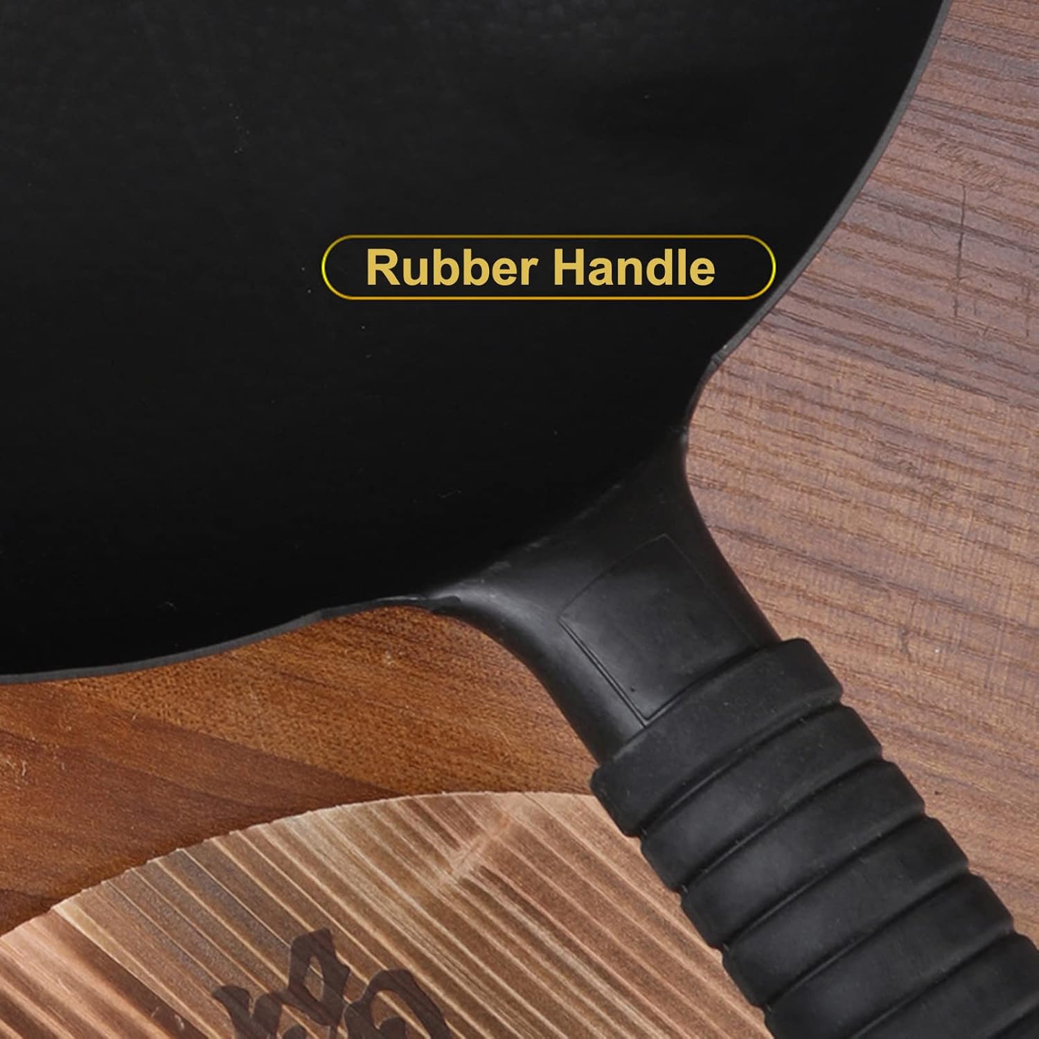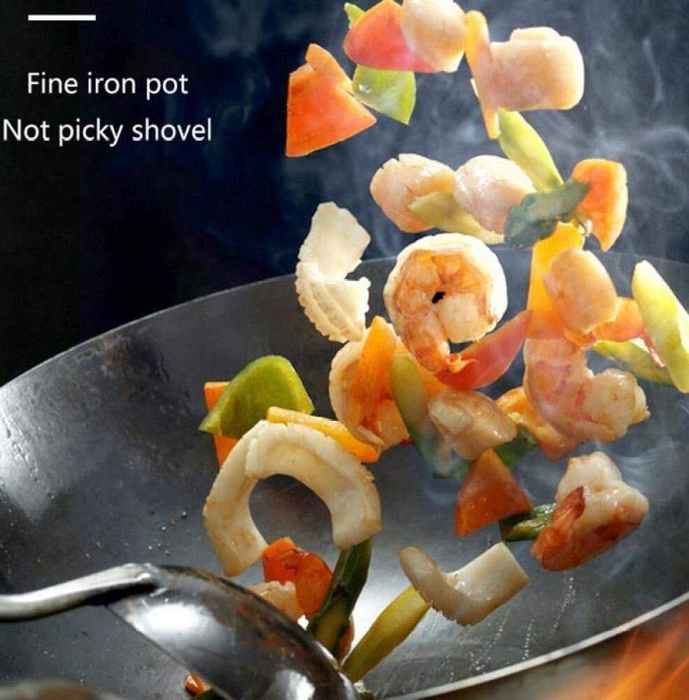 Black Cast Iron Wok Stir Fry Pans, Profession Chinese Hand Hammered Iron Woks with Round Bottom & Handle, No Coating, Less Oil, Non-Stick Pot,34Cm-Black-34cm