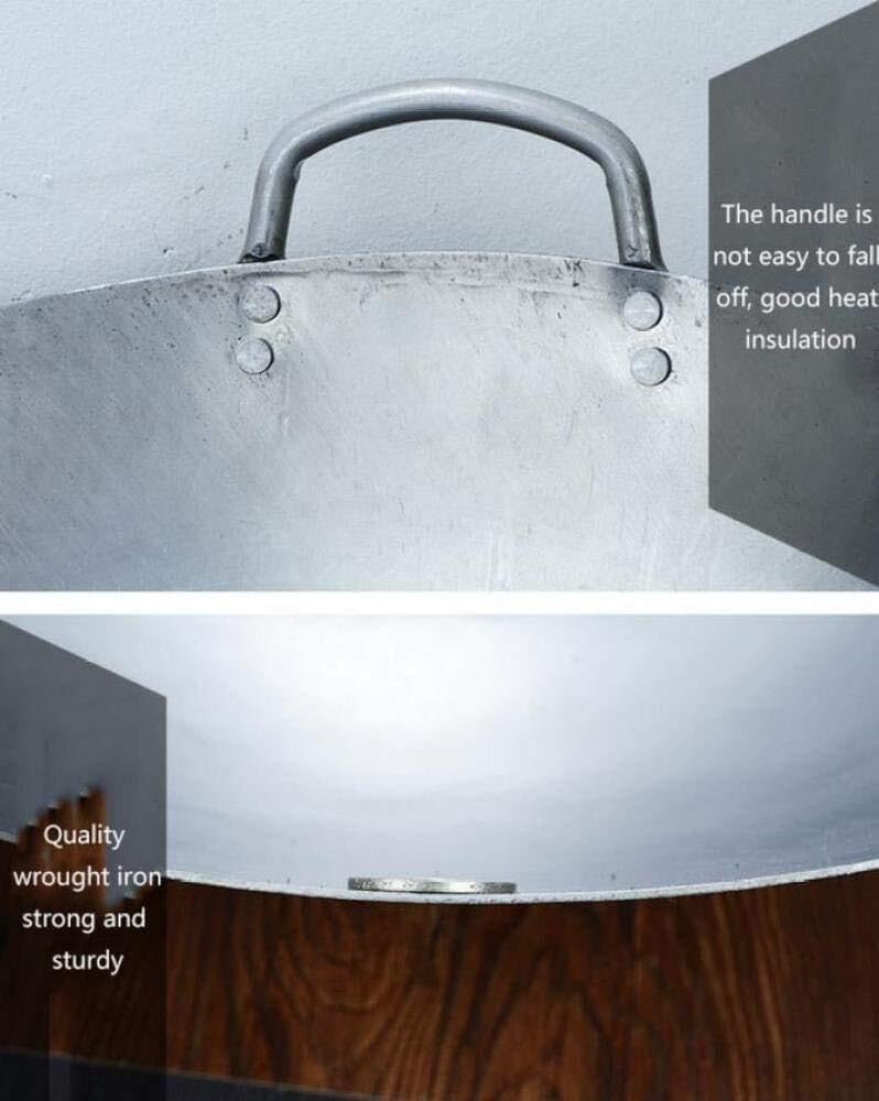 Traditional Hand-Forged Cast Iron Wok – Old-Fashioned Binaural Frying Pan, Non-Coated Chef's Wok for Home & Restaurant Cooking, Riveted Handles-One Color-50cm