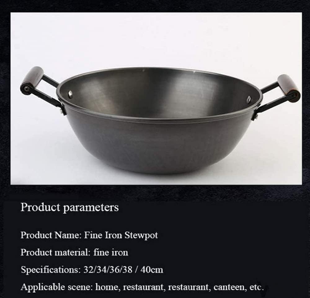 Cast Iron Wok Pan Fine Iron Stew Non-Stick Wok Uncoated Household Large Iron Pan Double Ear Pig Iron Stew Pan, Frying pan Pot(32cm)