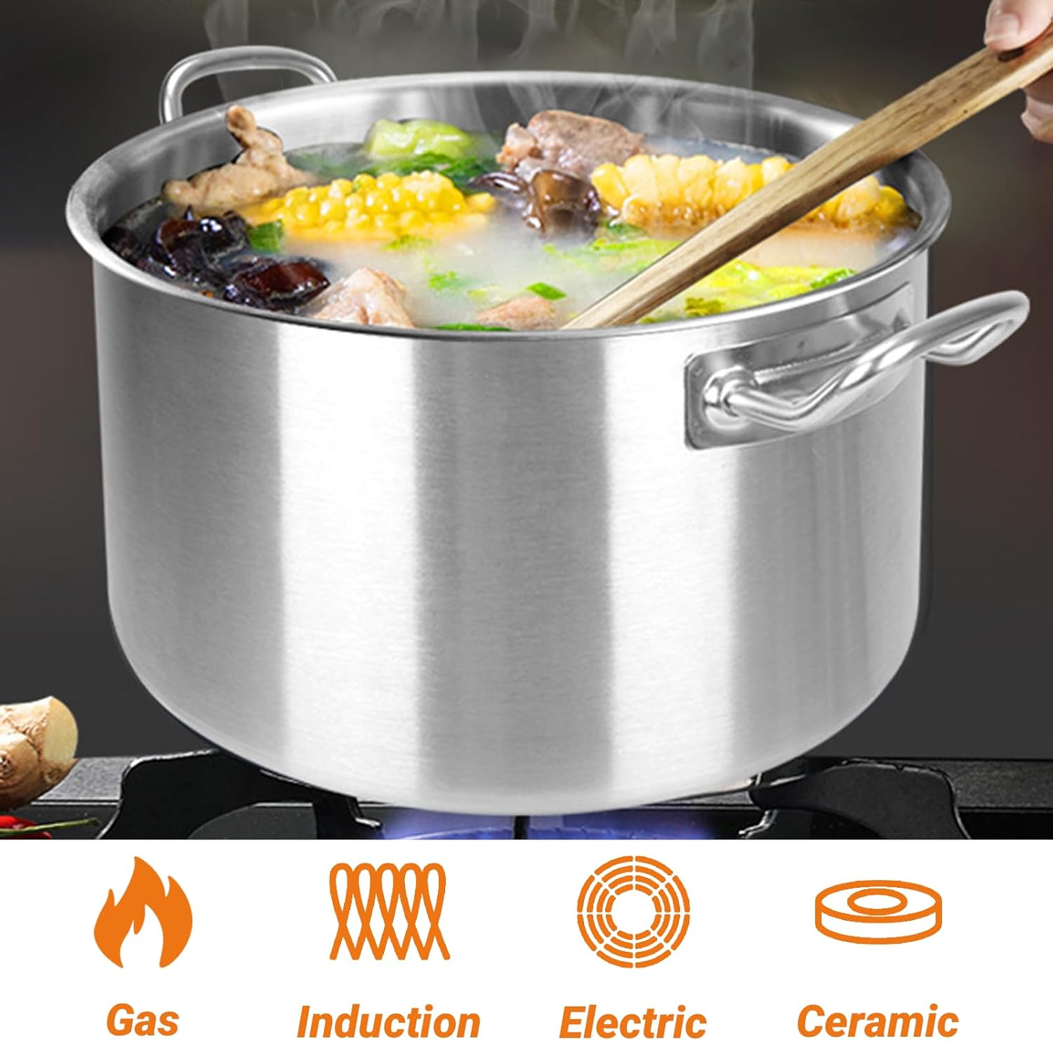 52.8Qt/50L Commercial Stainless Steel Aluminum-Clad Stockpot with Cover Composite Base, Large Capacity Cookware, Heavy Duty Soup Seafood Boil pot on Gas Induction Electric Ceramic Stove