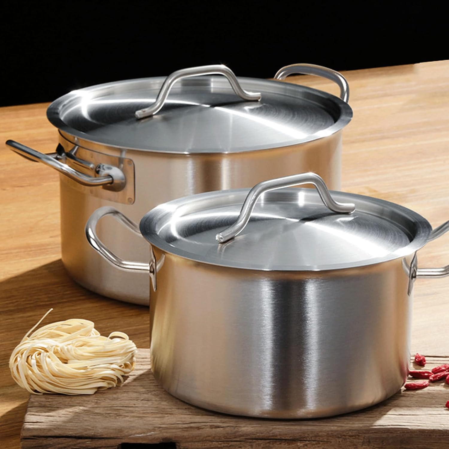 Stainless Steel Stockpot with Lid Double Handles, Flat Bottom Soup Pasta Pot for Canning Boiling Simmer, Mirror-Finish Deep Cookware for Gas Induction Electric Ceramic Stoves,12.7Qt/12L