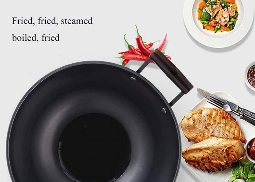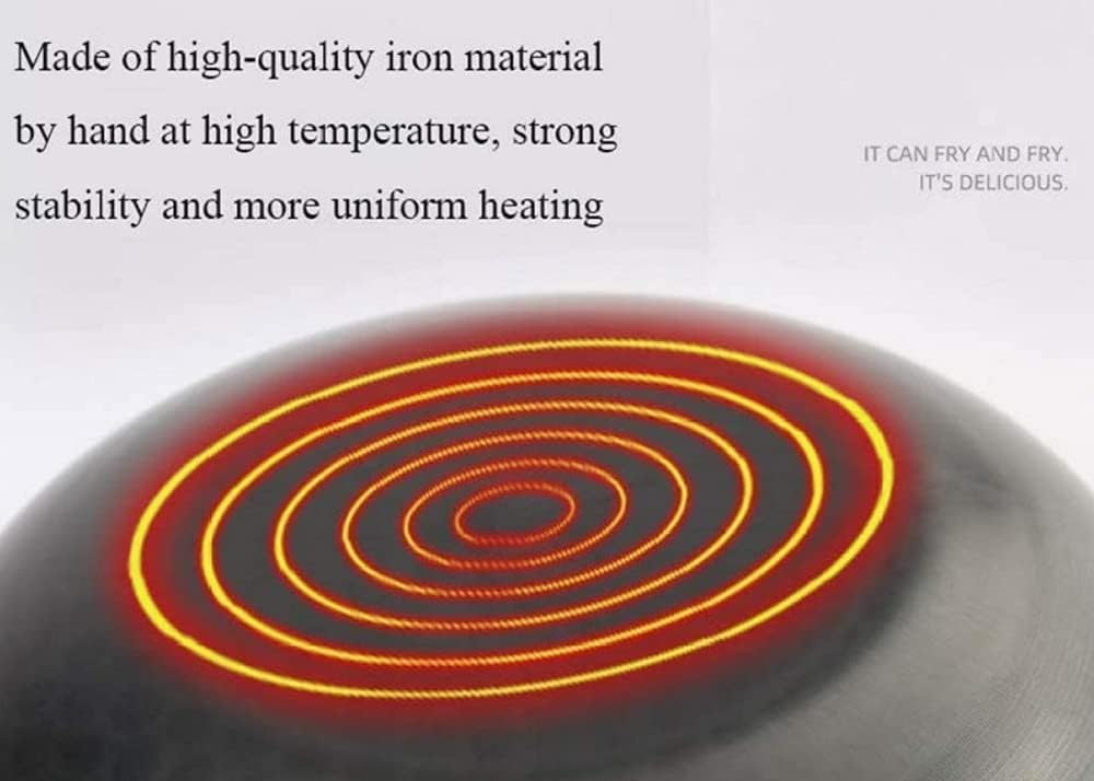 Handmade Iron Omelet Stir Fry Pan, Non-Stick Cast Iron Wok, Family Dining, Suitable for Gas and Induction Cookers, Uncoated