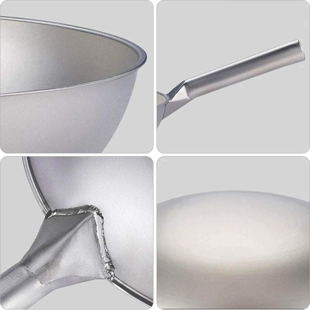 Pure Titanium Wok, Uncoated Non-Stick Pan Frying Pan Household Round Bottom Titanium Pot Gas Cooker Gift Silver(30cm)