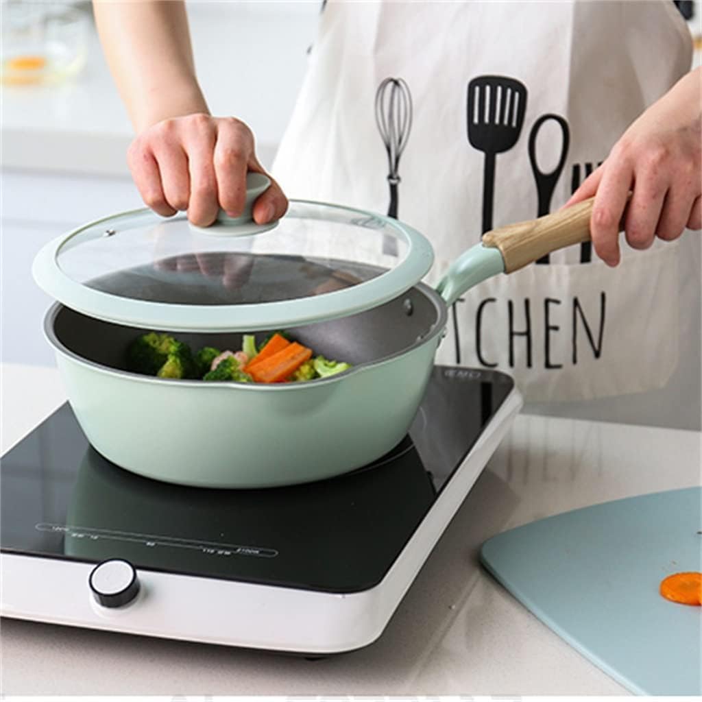 HBJWOV Aluminum Alloy Nonstick Pot Green Square Single Handle Stew Home Kitchen