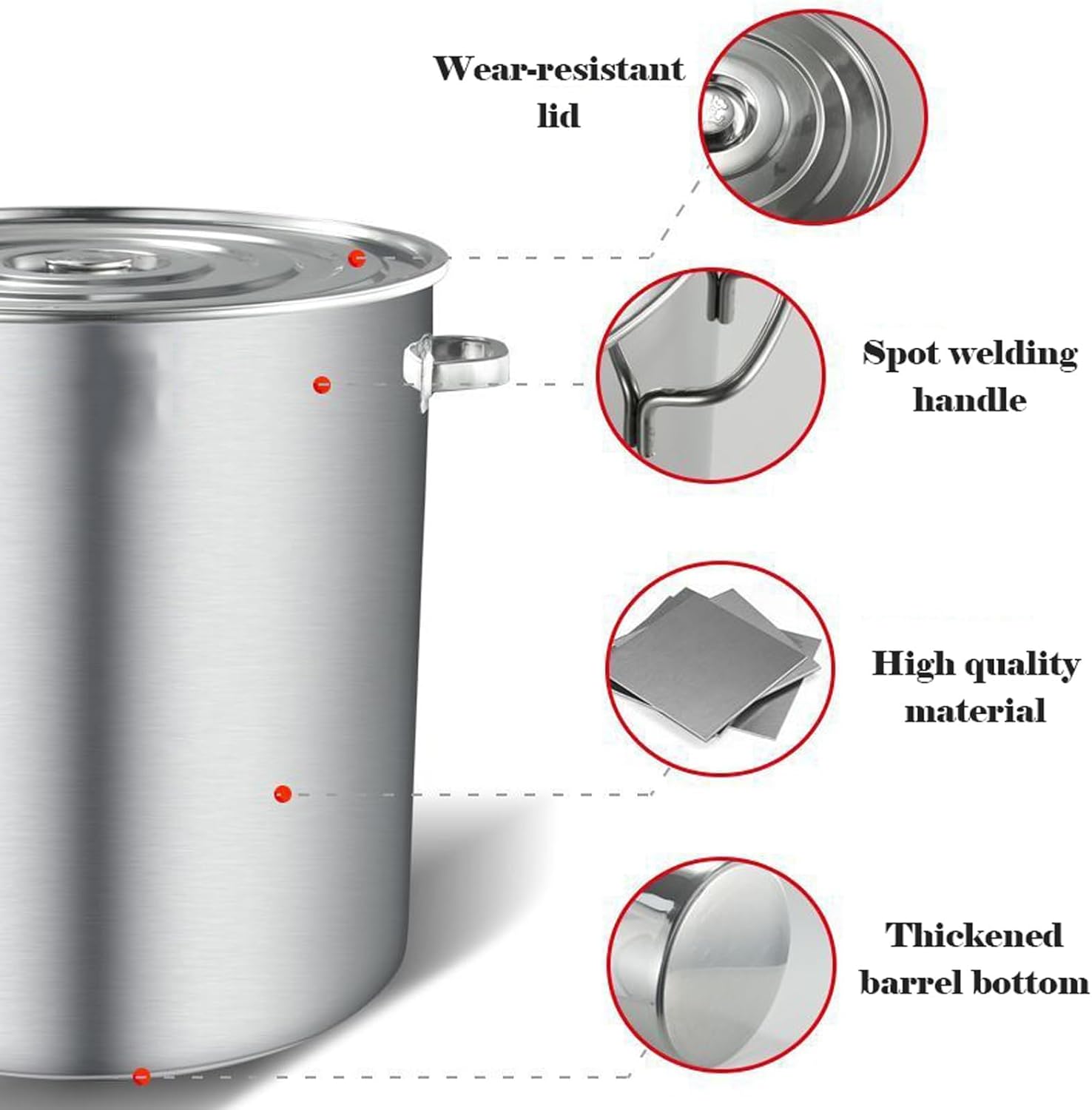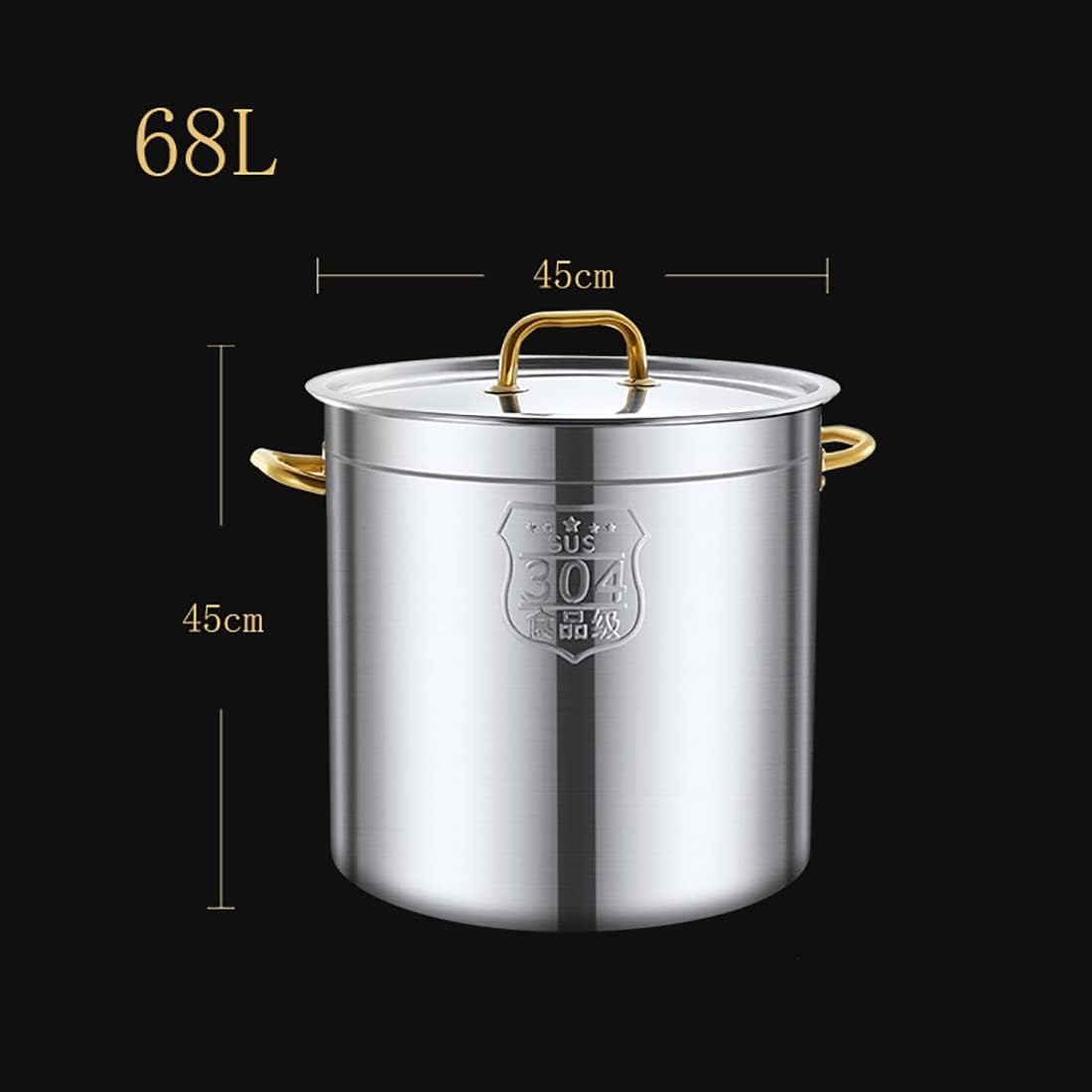Stockpots Thickened Food Grade 304 Stainless Steel Soup Bucket Soup Pot, Commercial Soup Barrel with Lid, High-Capacity, Fast Heat Conduction(45 * 45cm(68L)