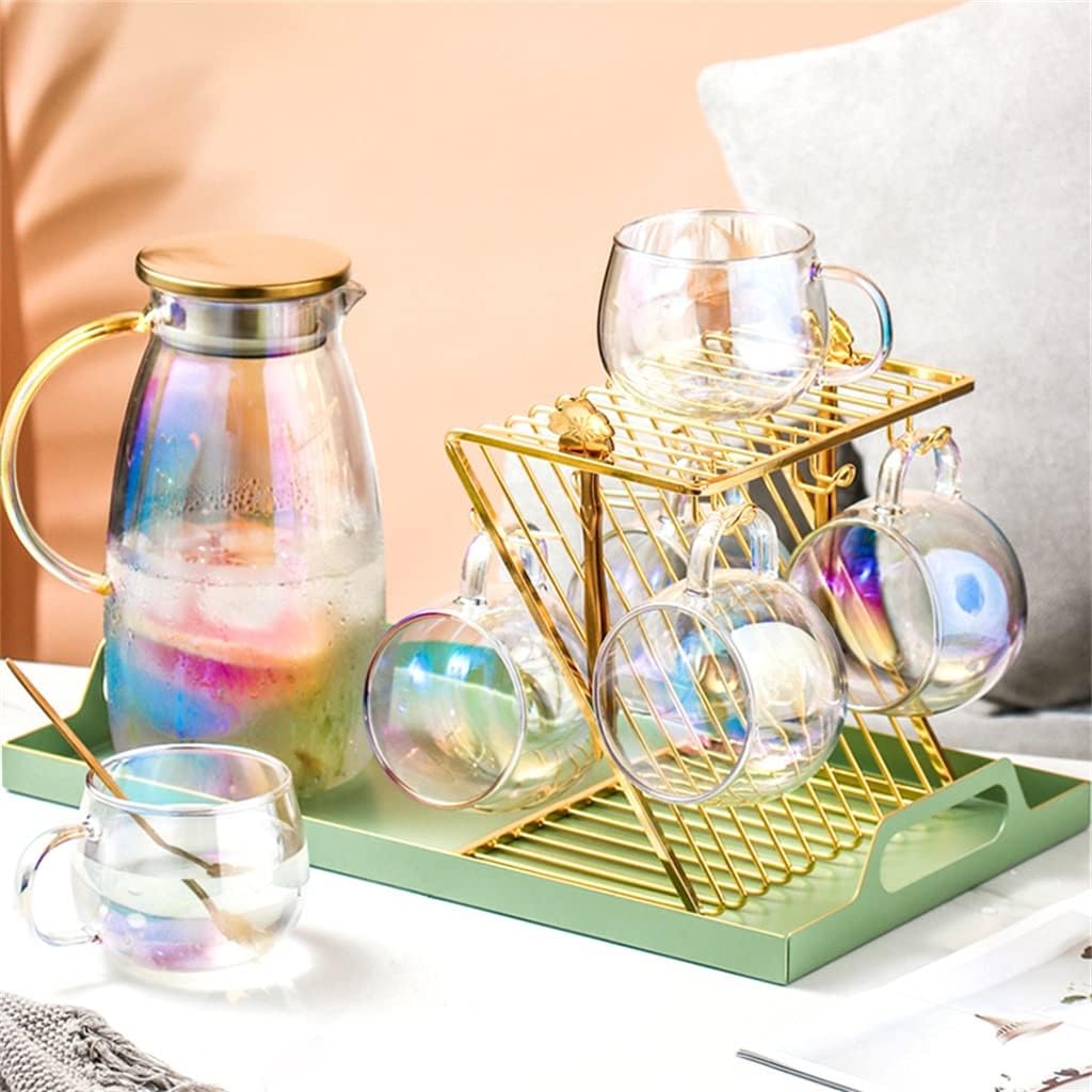 Ordic Round Mouth Kettle Set Cup Home Set Water Appliance Living Room Hospitality Glass Flower Teapot Complete Set : 4-Cup Kit,A-4cup kit