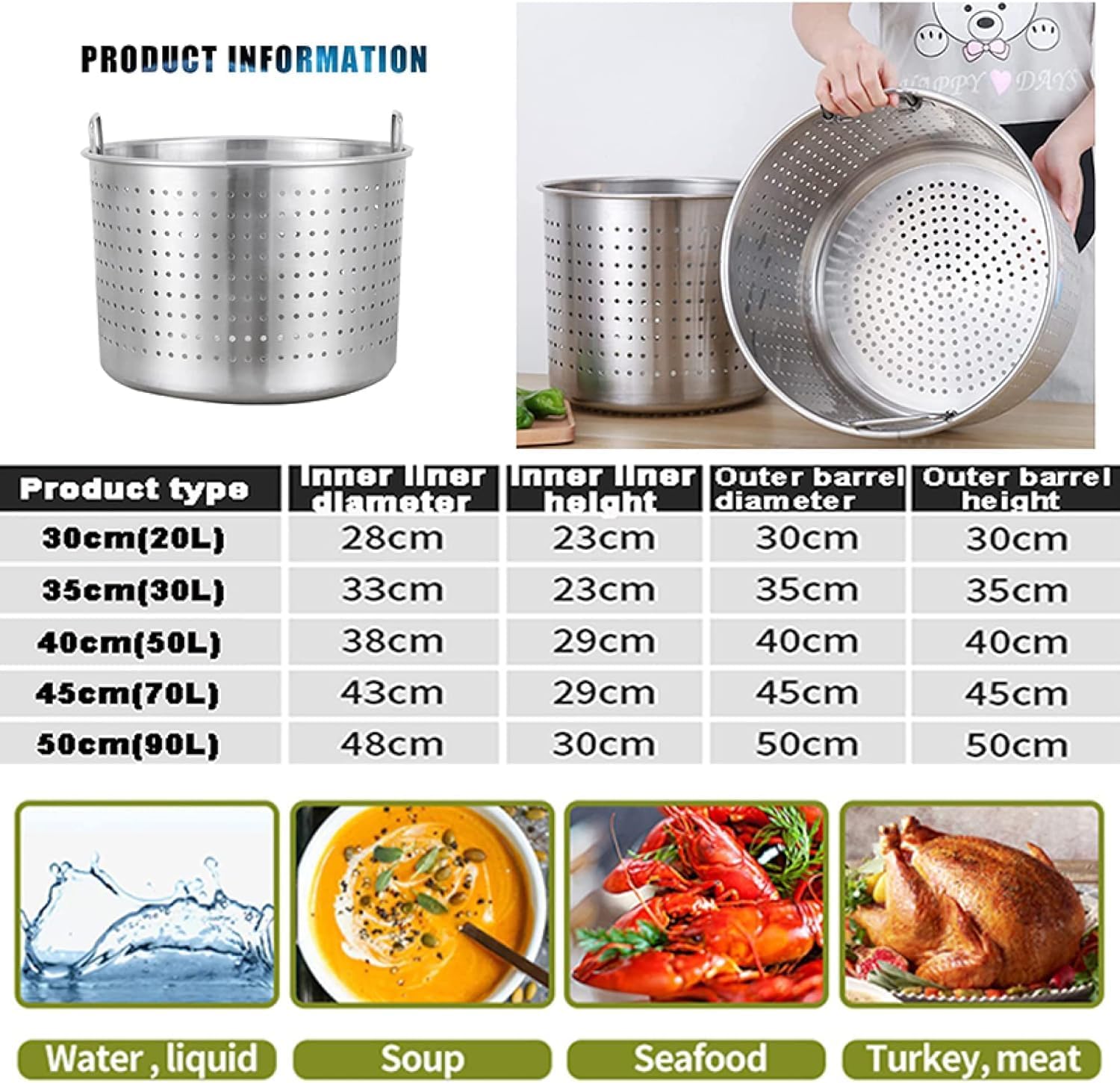 Stainless Steel Thick Stock Pot Large Capacity Multipurpose Rice Bucket Porridge Pot with Basket and Lid Kitchen Cookware for for Water Bath Canning, Lobster Shrimp Boiling,45x45cm(35x35cm)