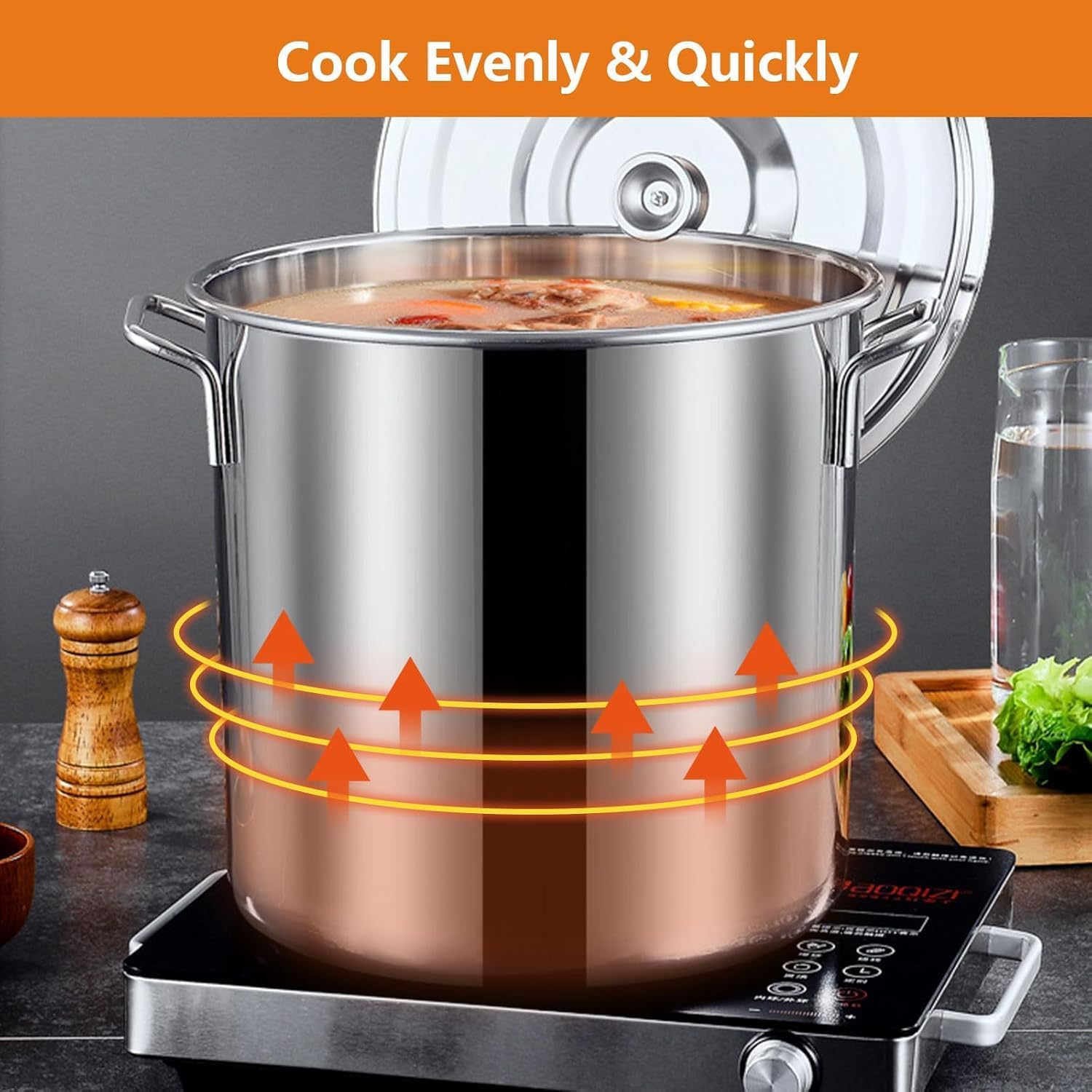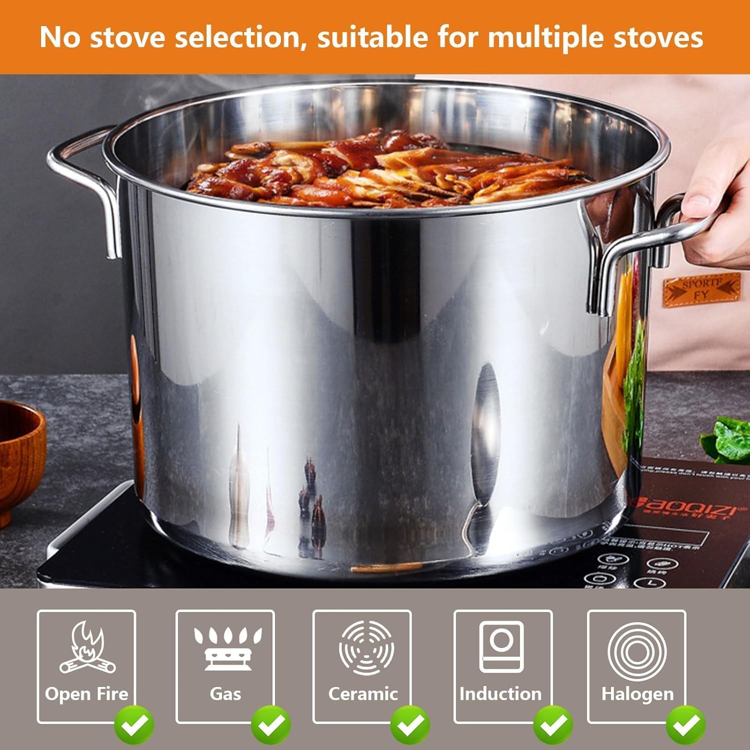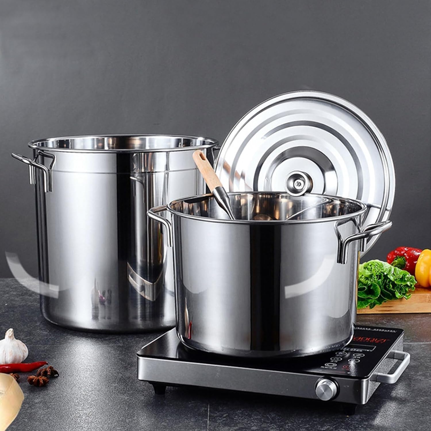 Large Stock Pot with Lid - 304 Stainless Steel Sealed Stock Pot - Double-Layer Thickened Bucket with Lid for 24-Hour Heat Preservation - Large Capacity Kitchen Jar