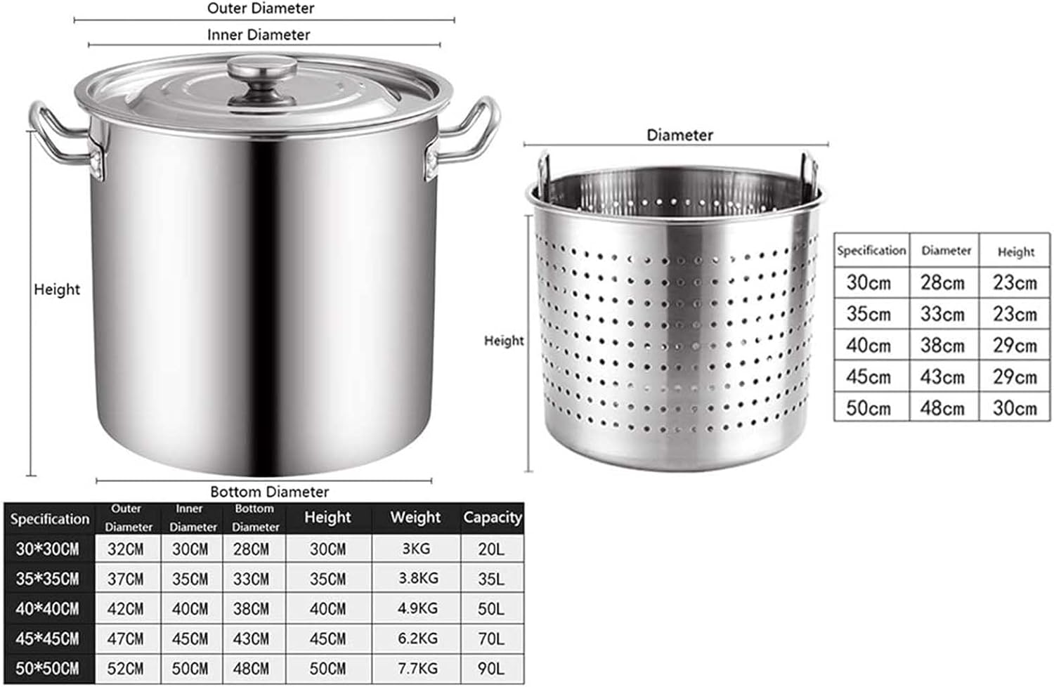 Stockpots Stockpots, Large Deep Stainless Steel Induction Stock Pot, Casserole, Cooking Stockpot, Diameter 25cm, Height 25cm(50 * 50cm(90L)