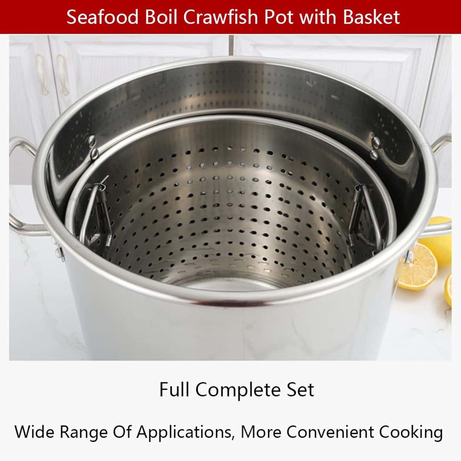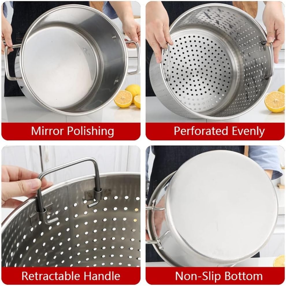 20-70L Stock Pot with Strainer Basket and Retractable Handle, Stainless Steel Seafood Boil Pot, Turkey Fryer Pot